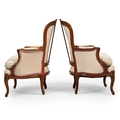 PLEASE NOTE: ALL LOTS ARE LOCATED AT SACKVILLE WEST STORAGE IN ANDOVER (SP10 3SA) AND ARE NOT AVAILABLE TO VIEW With wear, marks, knocks and scratches commensurate with age and useSome old chips, splits and lossesBoth chairs with multiple marks to the fabric, likely from water damageOne chair has glue to the exterior of all the trim, bar the pink sections, trim is also coming off in placesBoth with visible glue to the fabricOverall solid and stableADDITIONAL IMAGES: Please 'Ask a Question' to request additional images for this lot.