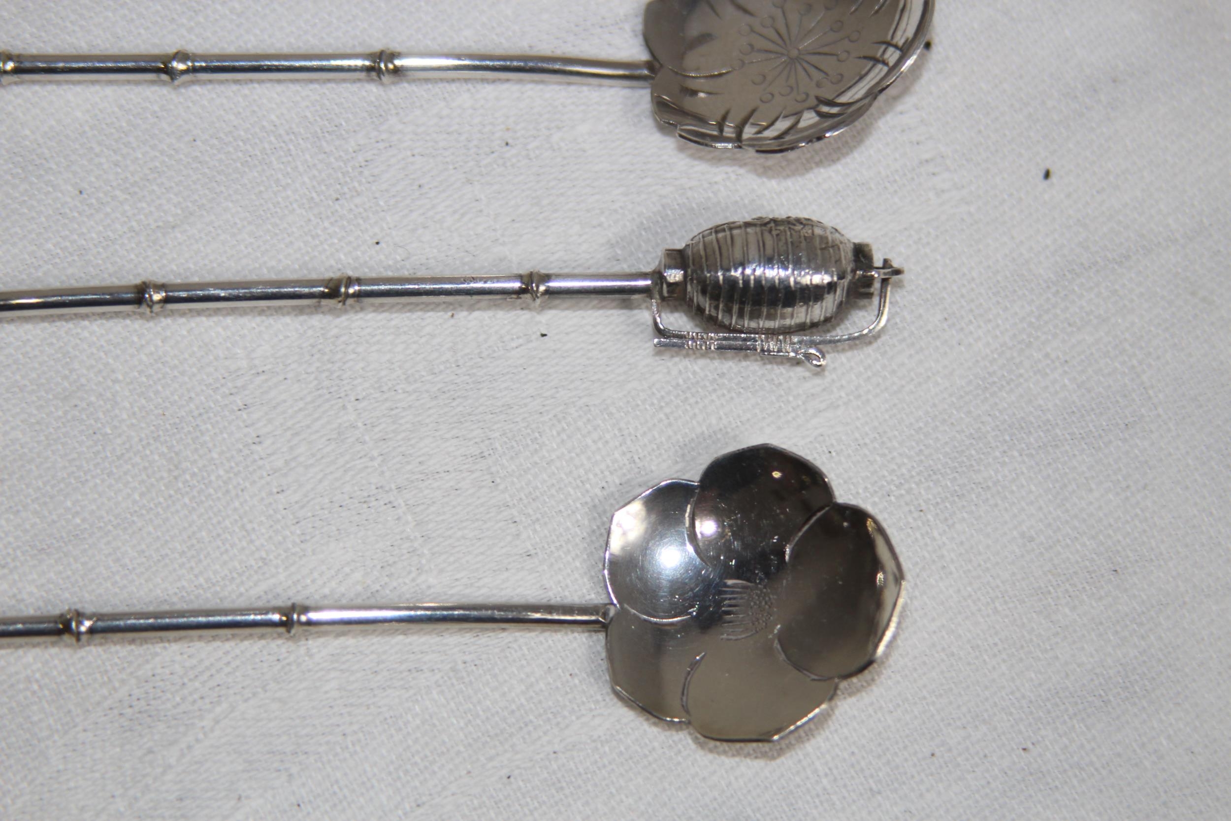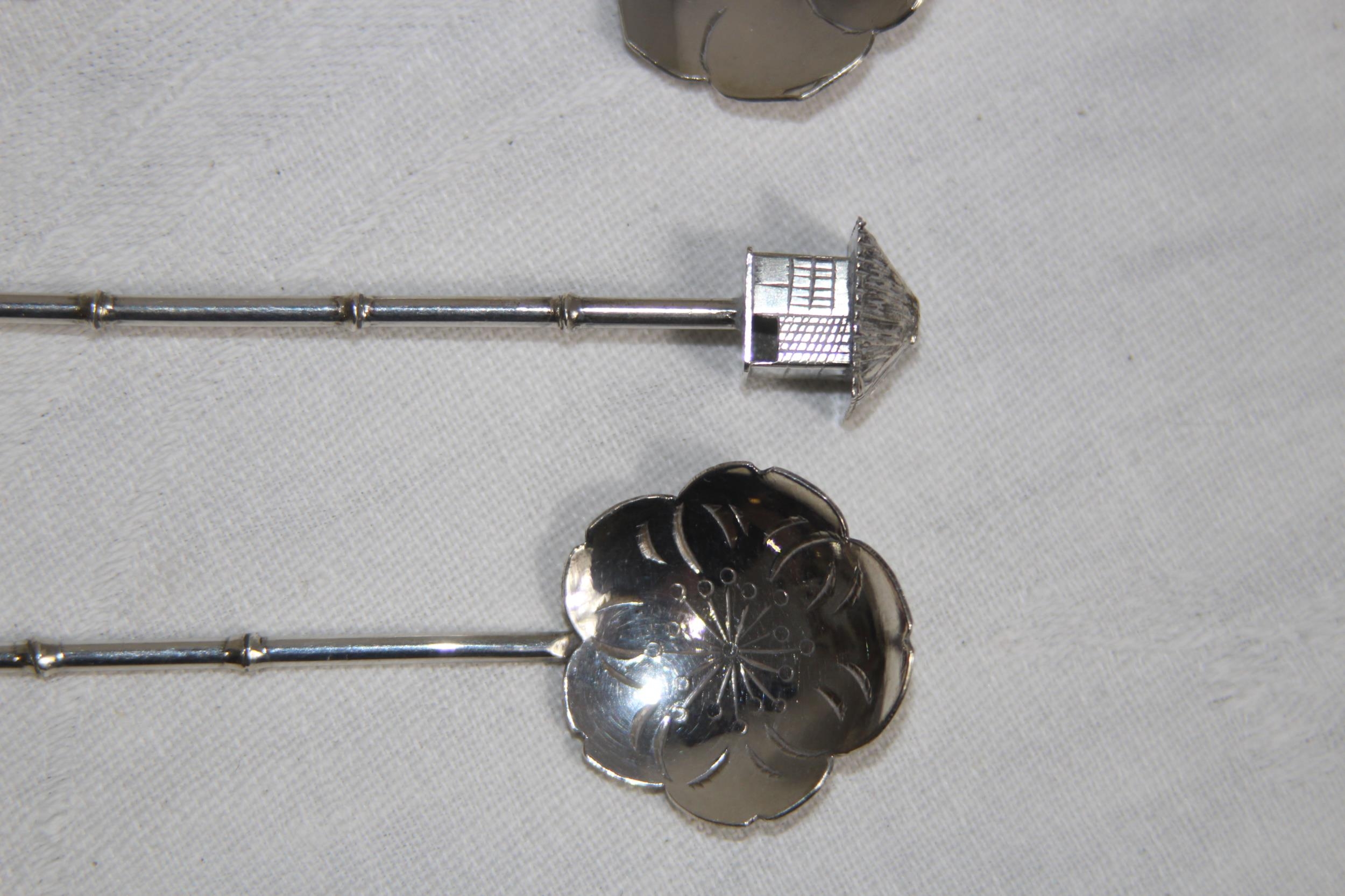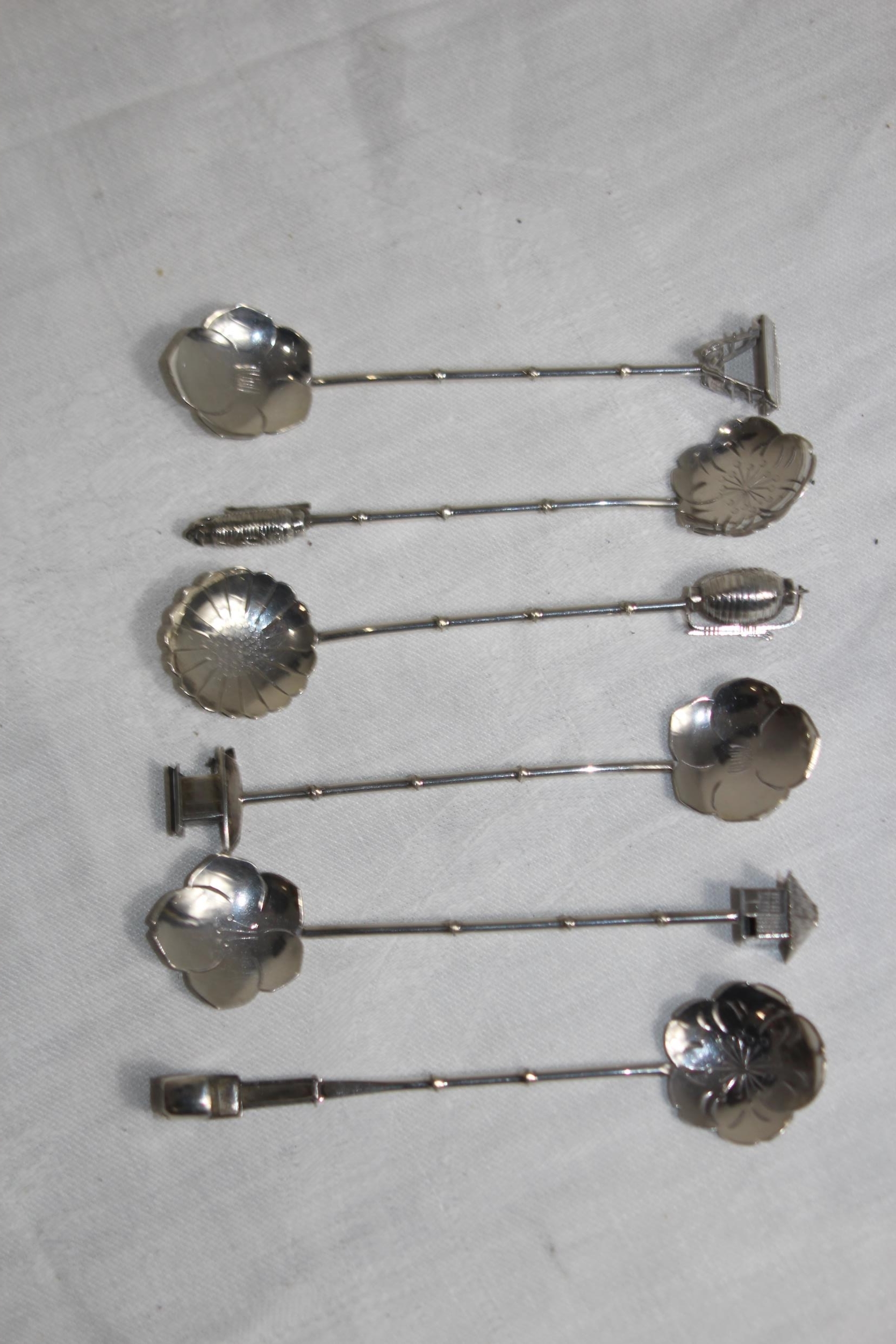 SET OF 6 JAPANESE STERLING SILVER SPOONS WITH VARIED FINIALS, 44.6 GRAMS