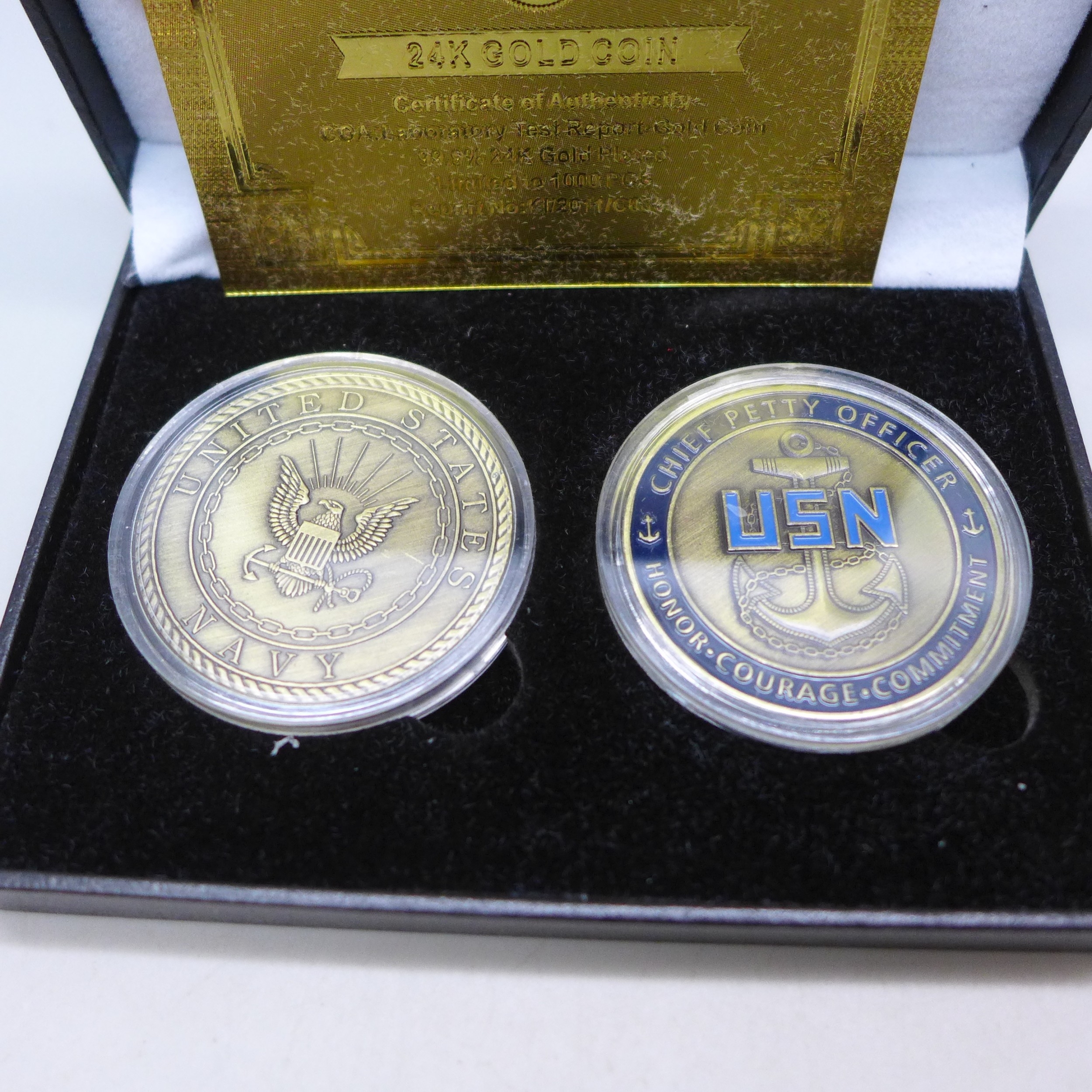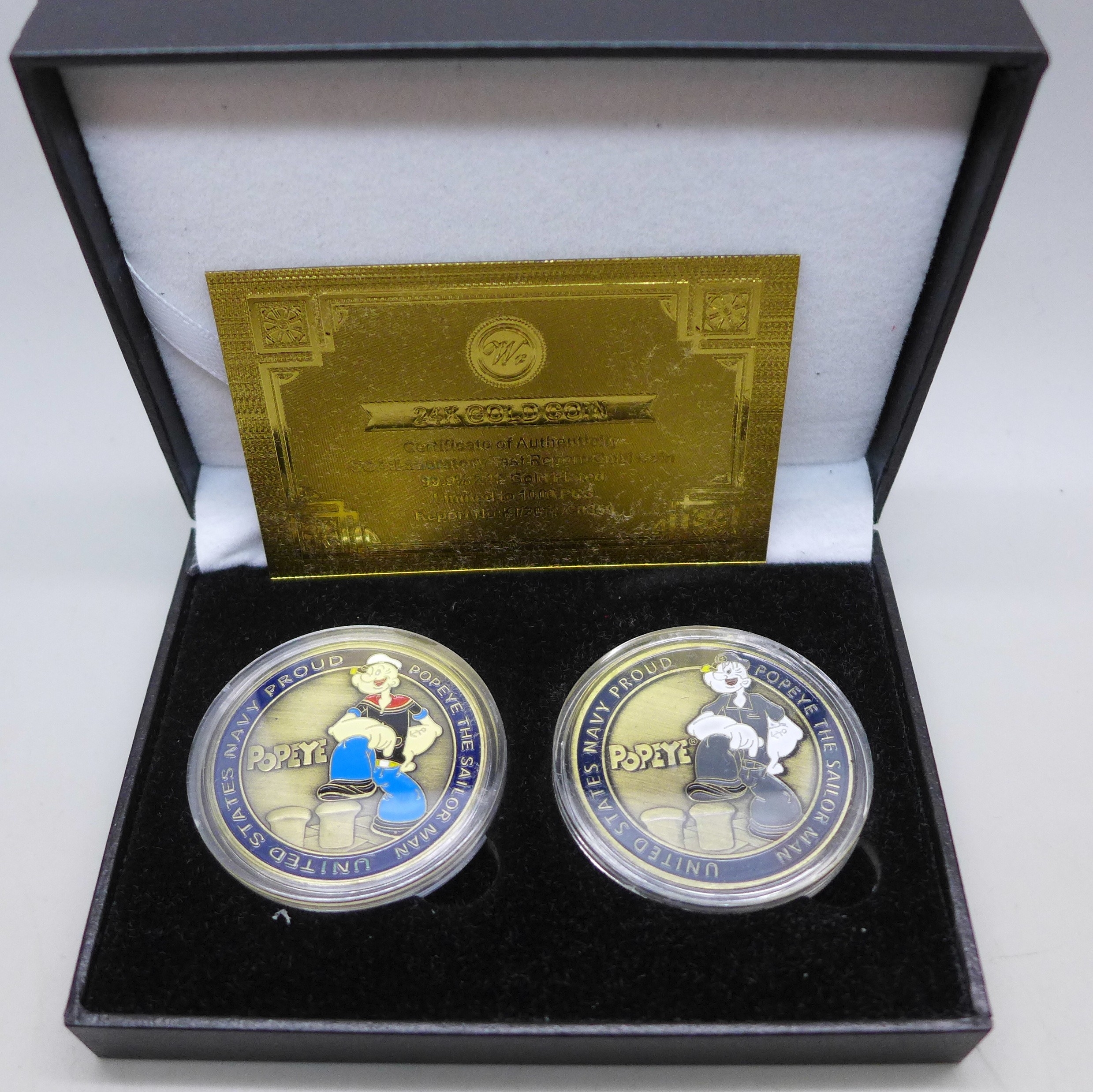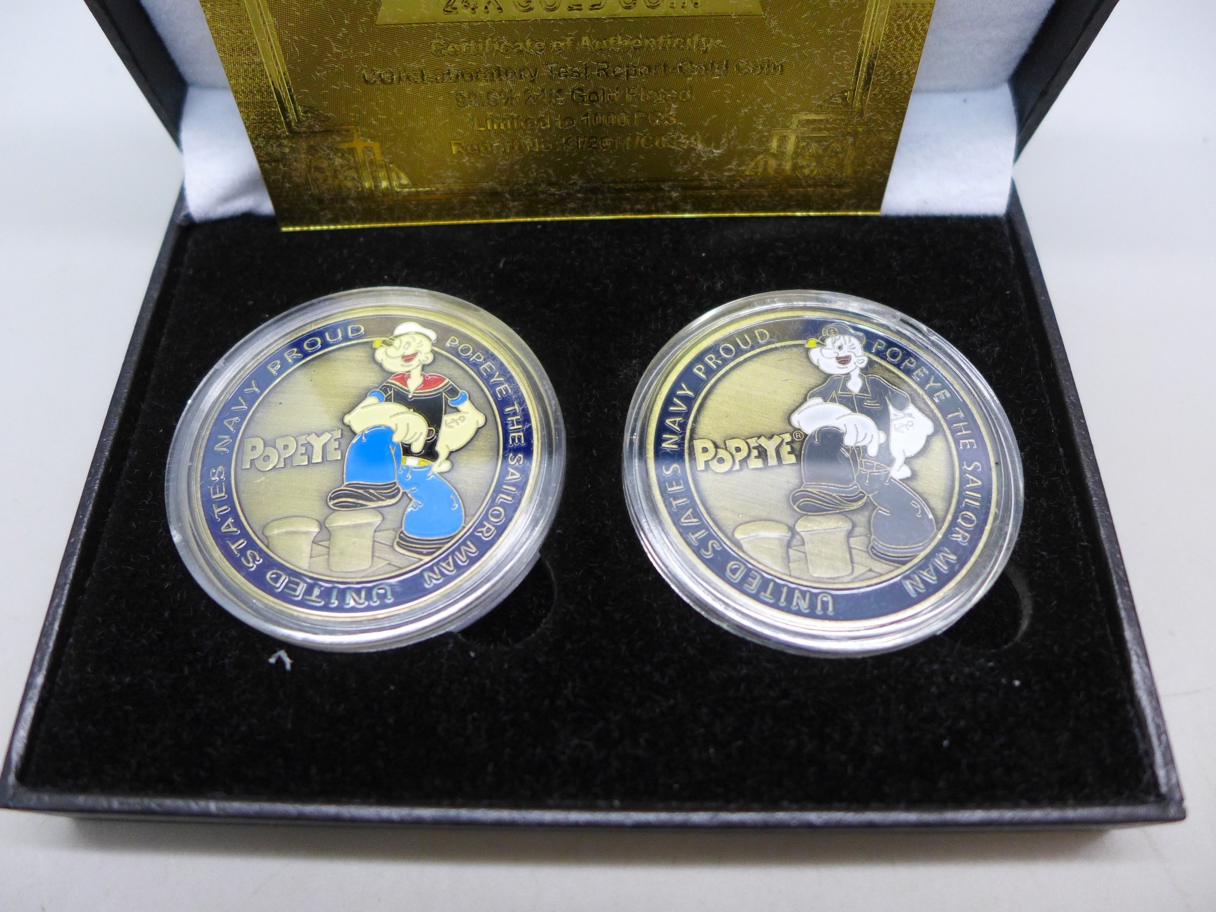 Popeye The Sailor Man - a set of two medallions, cased
