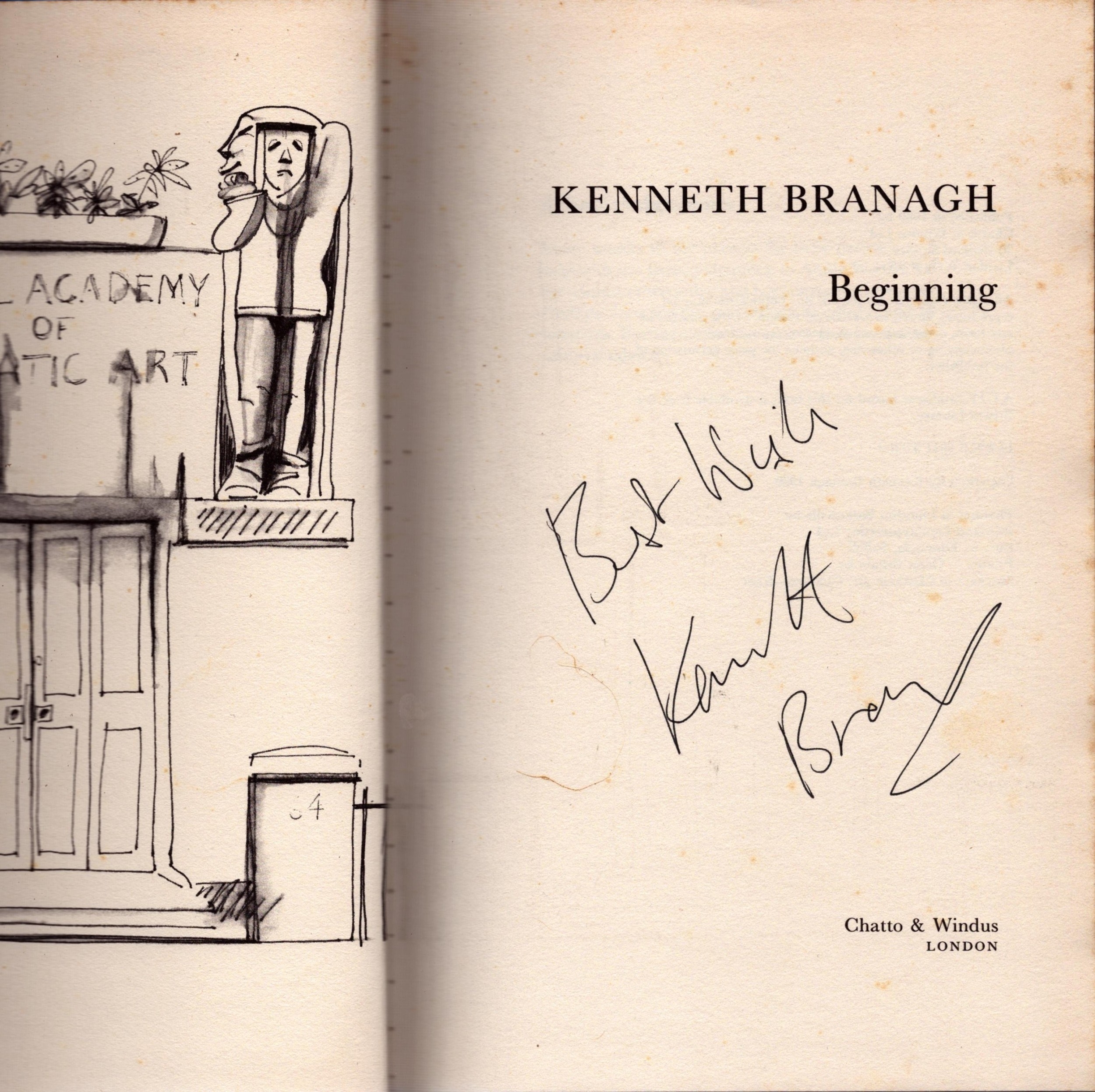 Kenneth Branagh signed Beginning hardback book.