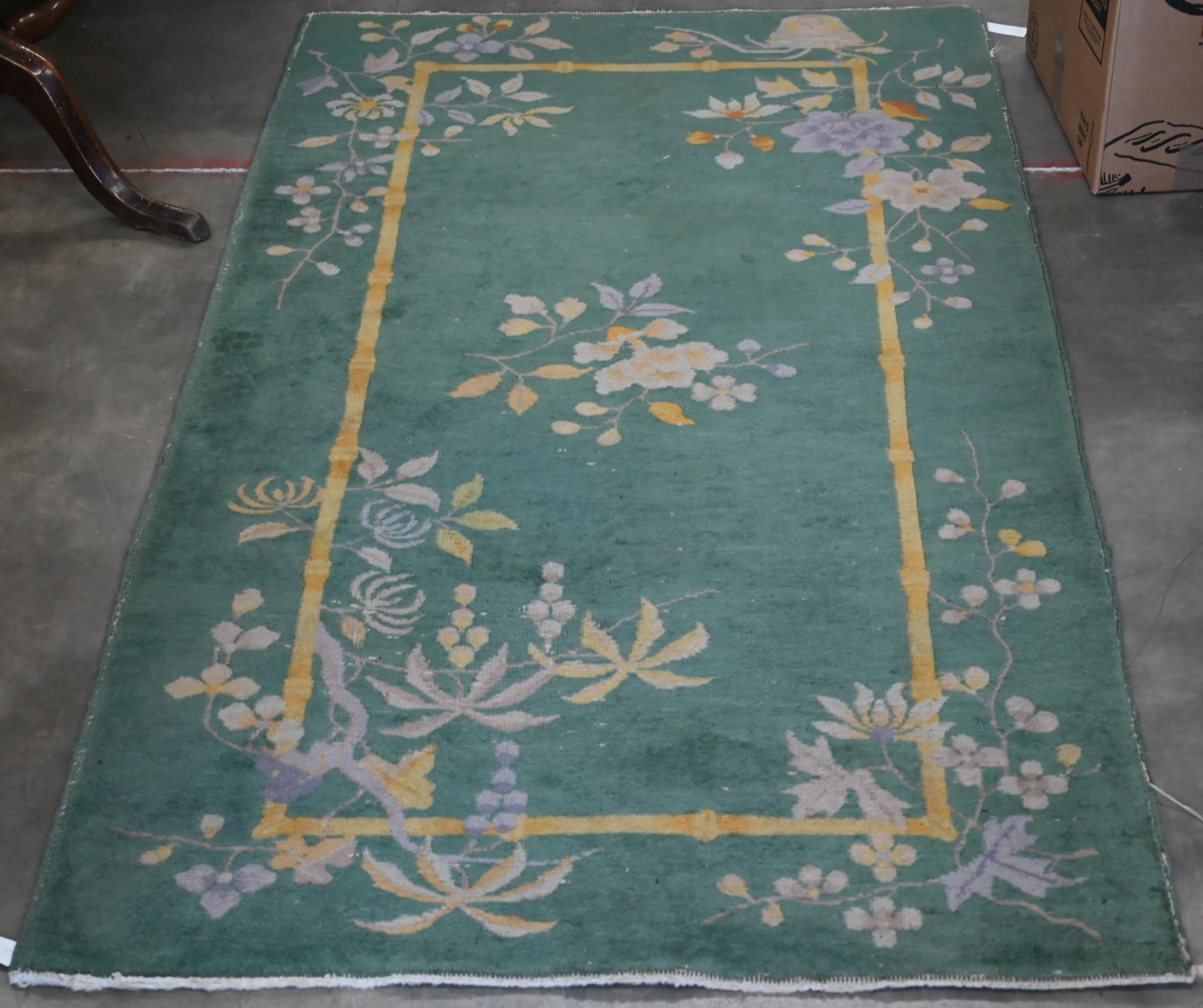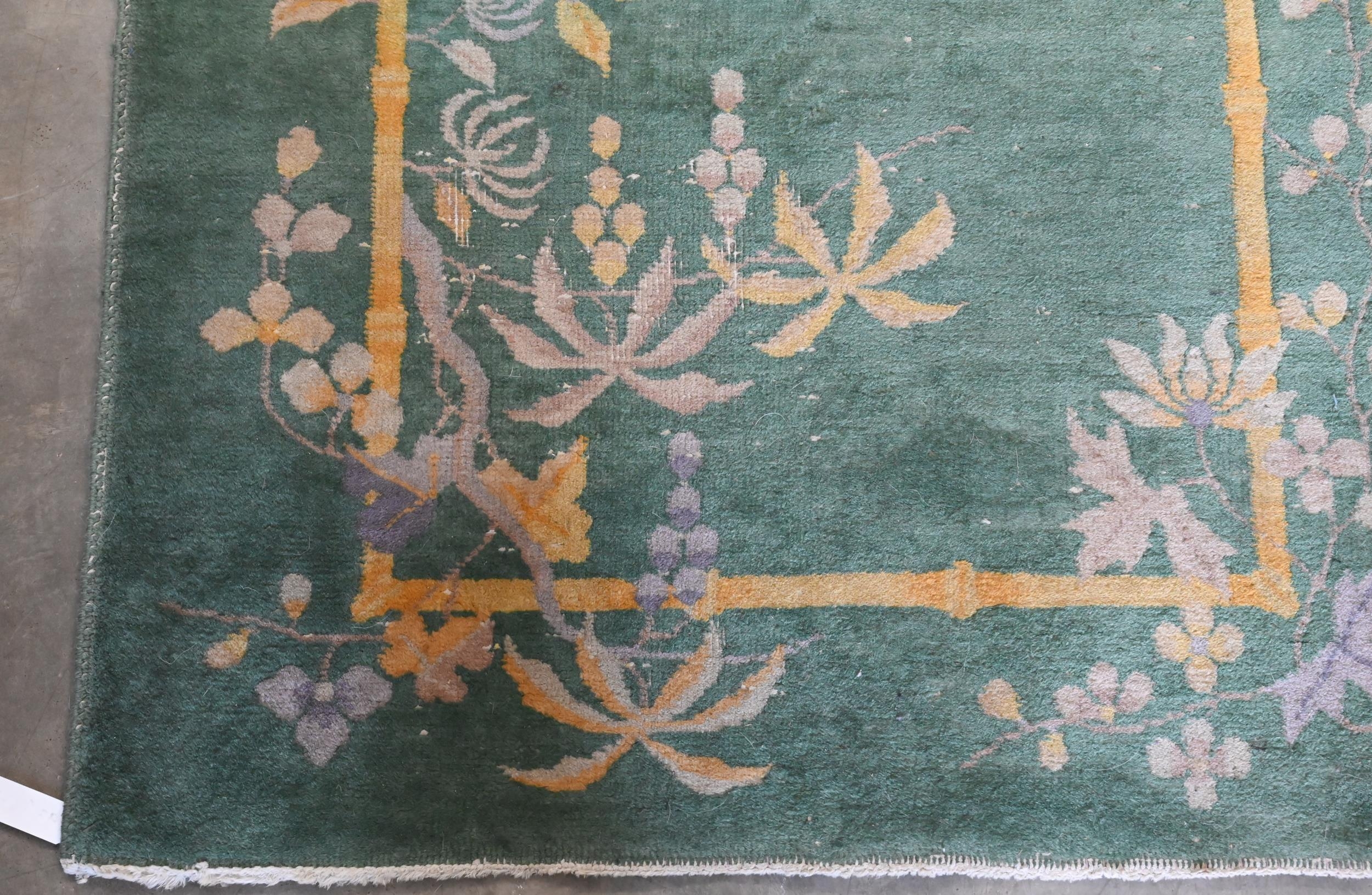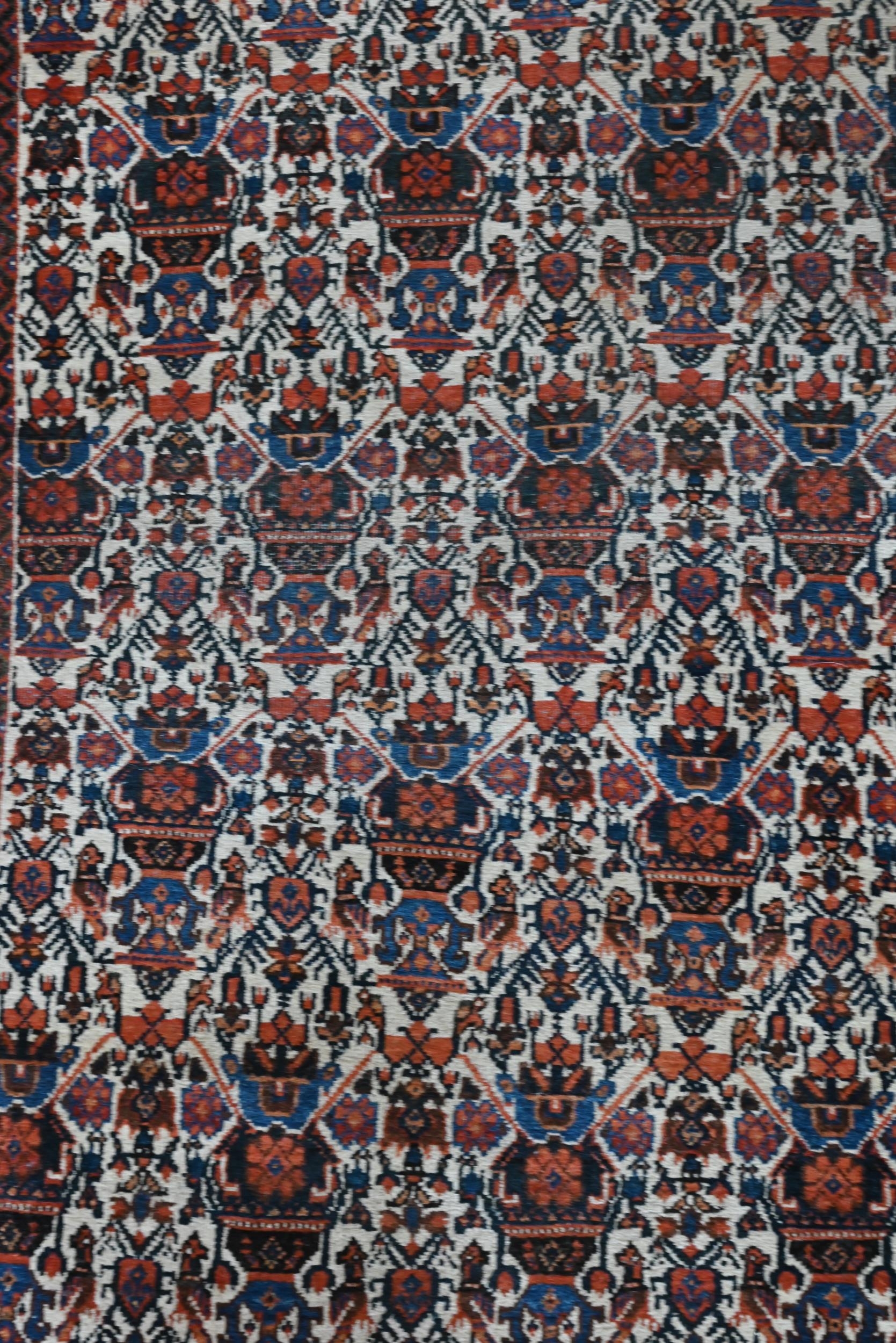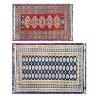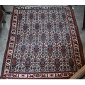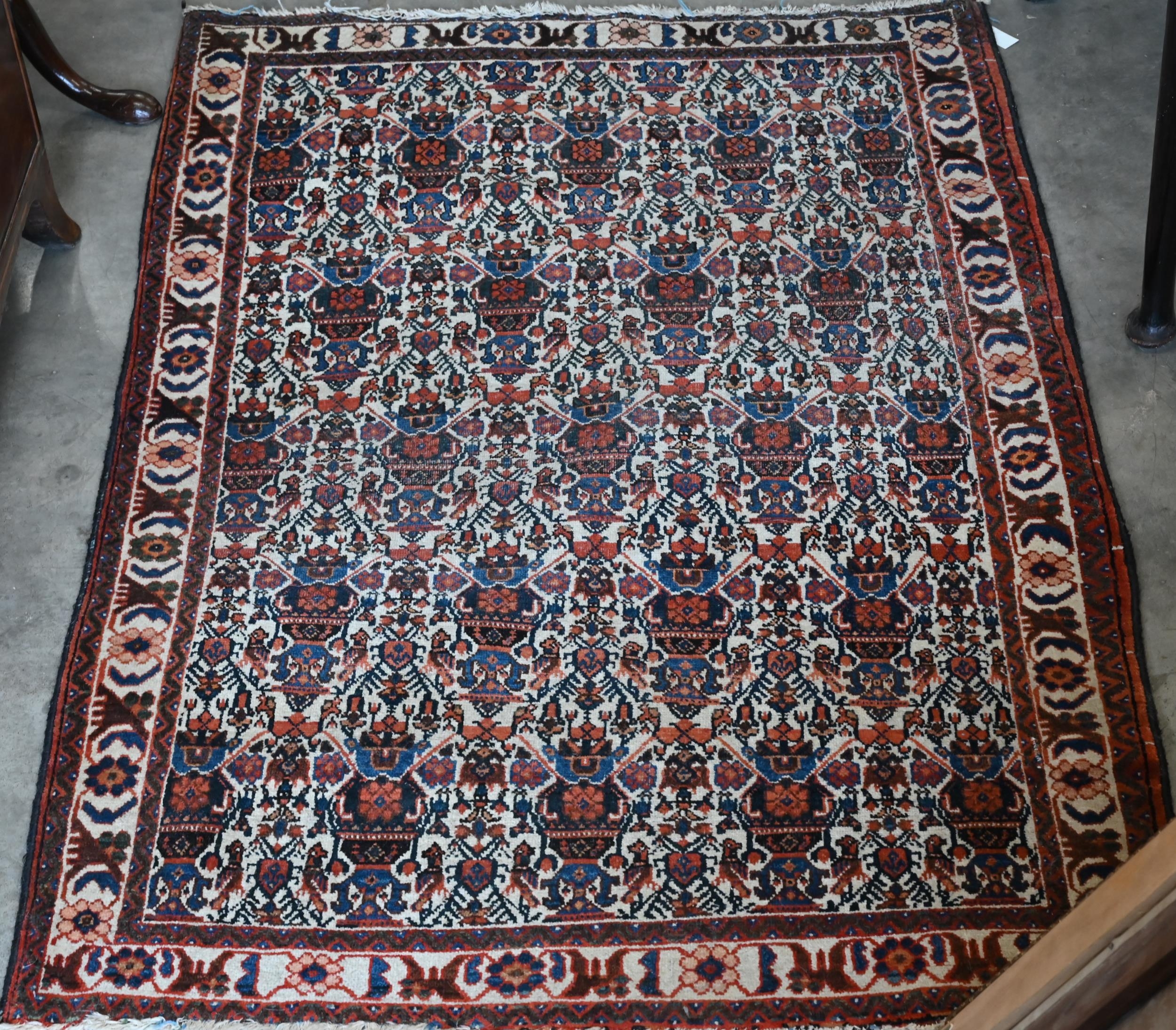 A vintage Persian Balouch rug with tessalating octagonal motif on red ground, 176 x 96 cm to/w a Persian Abedeh beige ground floral rug, 148 x 104 cm and another floral green wool rug (3)