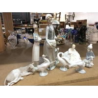 A collection of Zsolnay Pecs lustre glazed pottery Figures and a jug. This lot cannot be posted