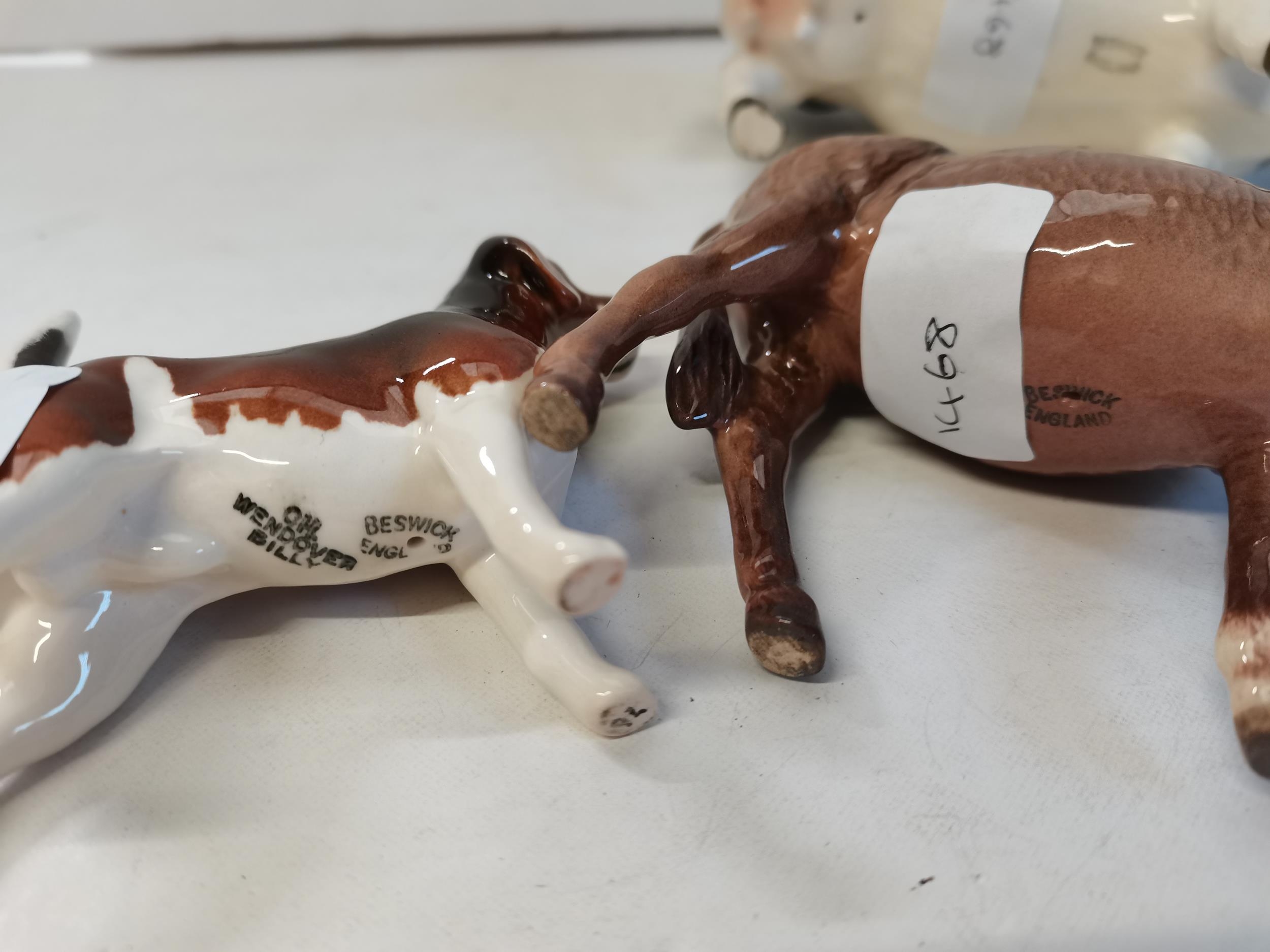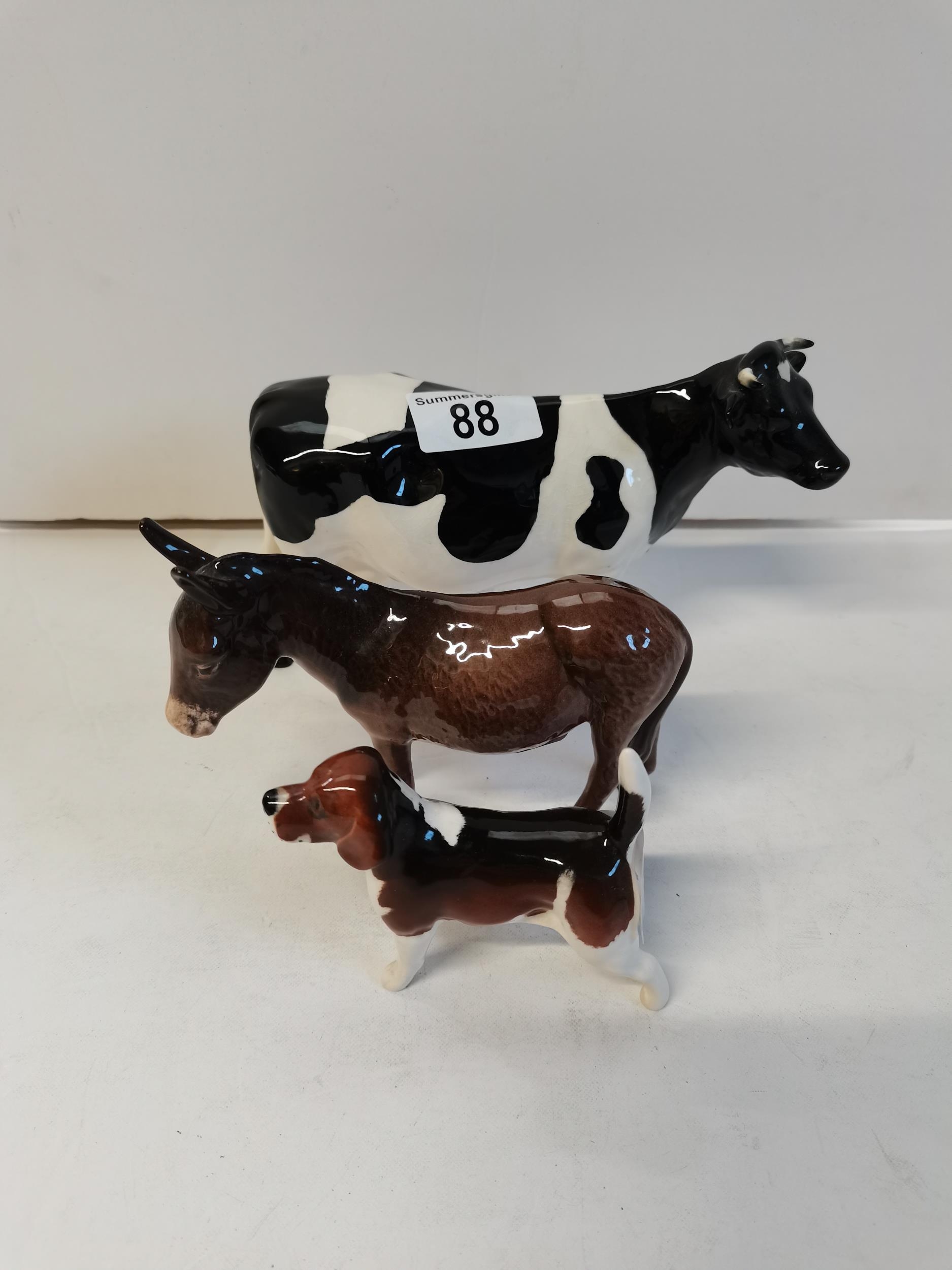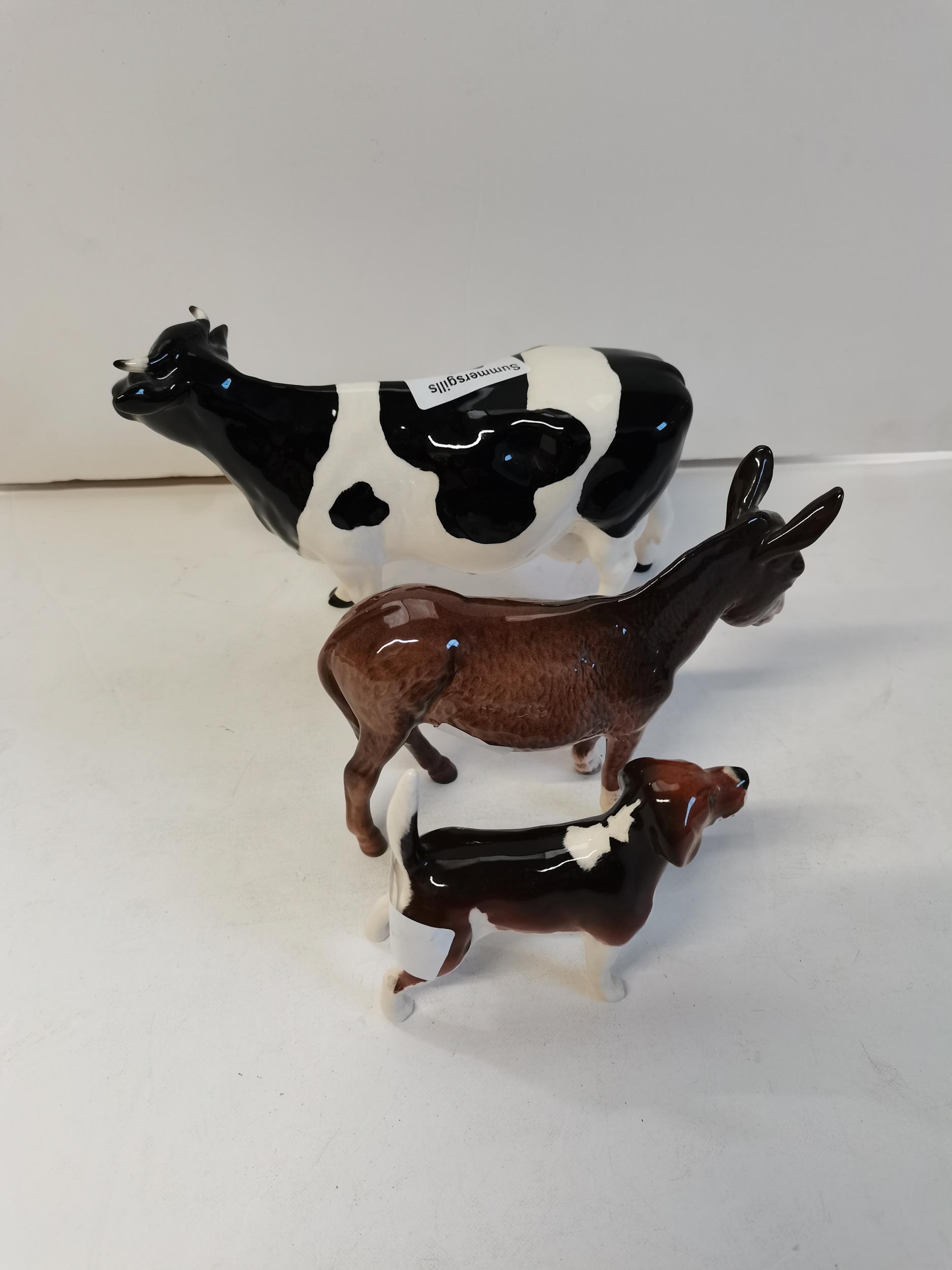 Beswick cow, donkey and beagle
