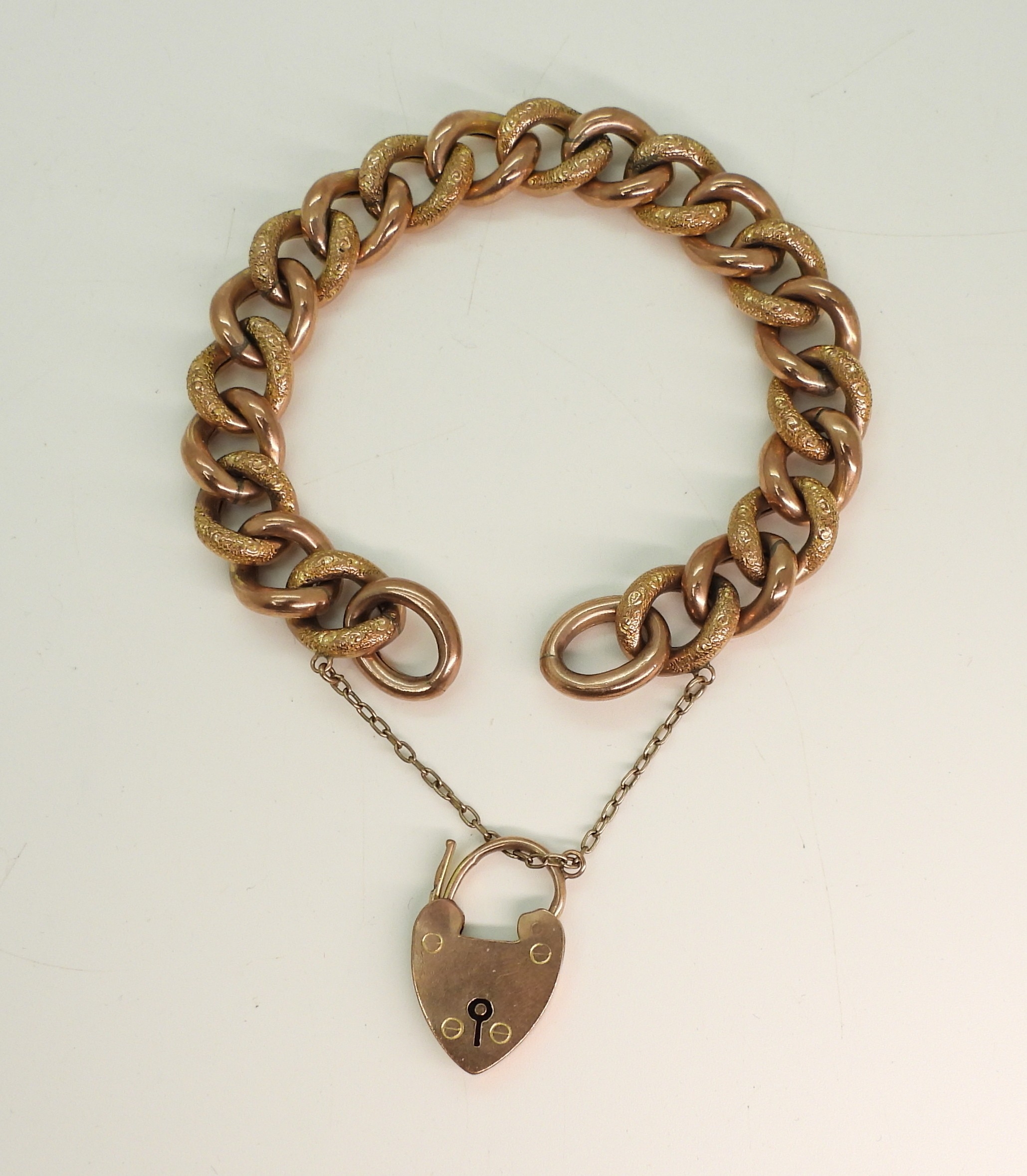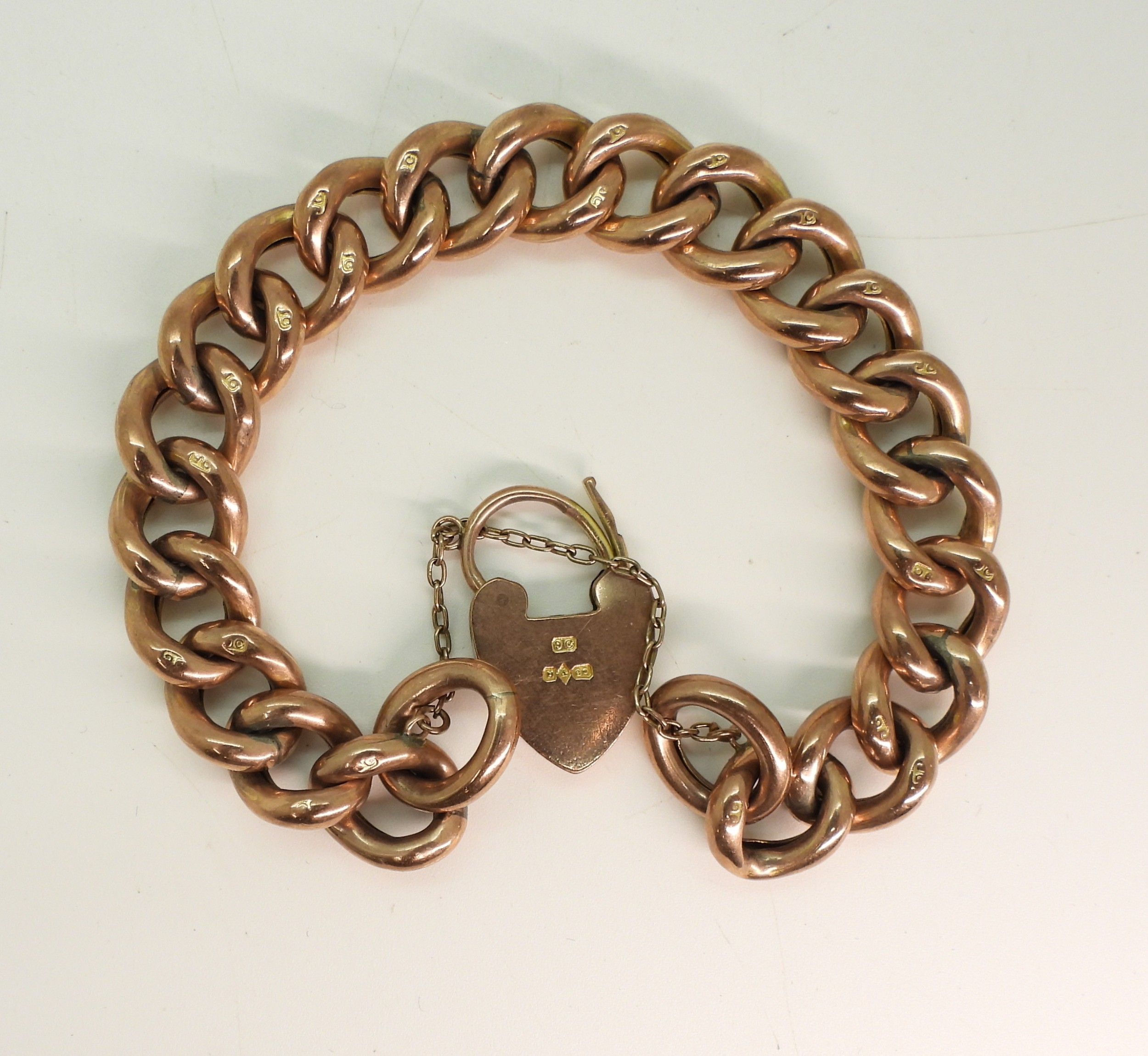 A 9ct rose gold curb chain bracelet, stamped 9c to every link length 18cm, weight 23.3gms