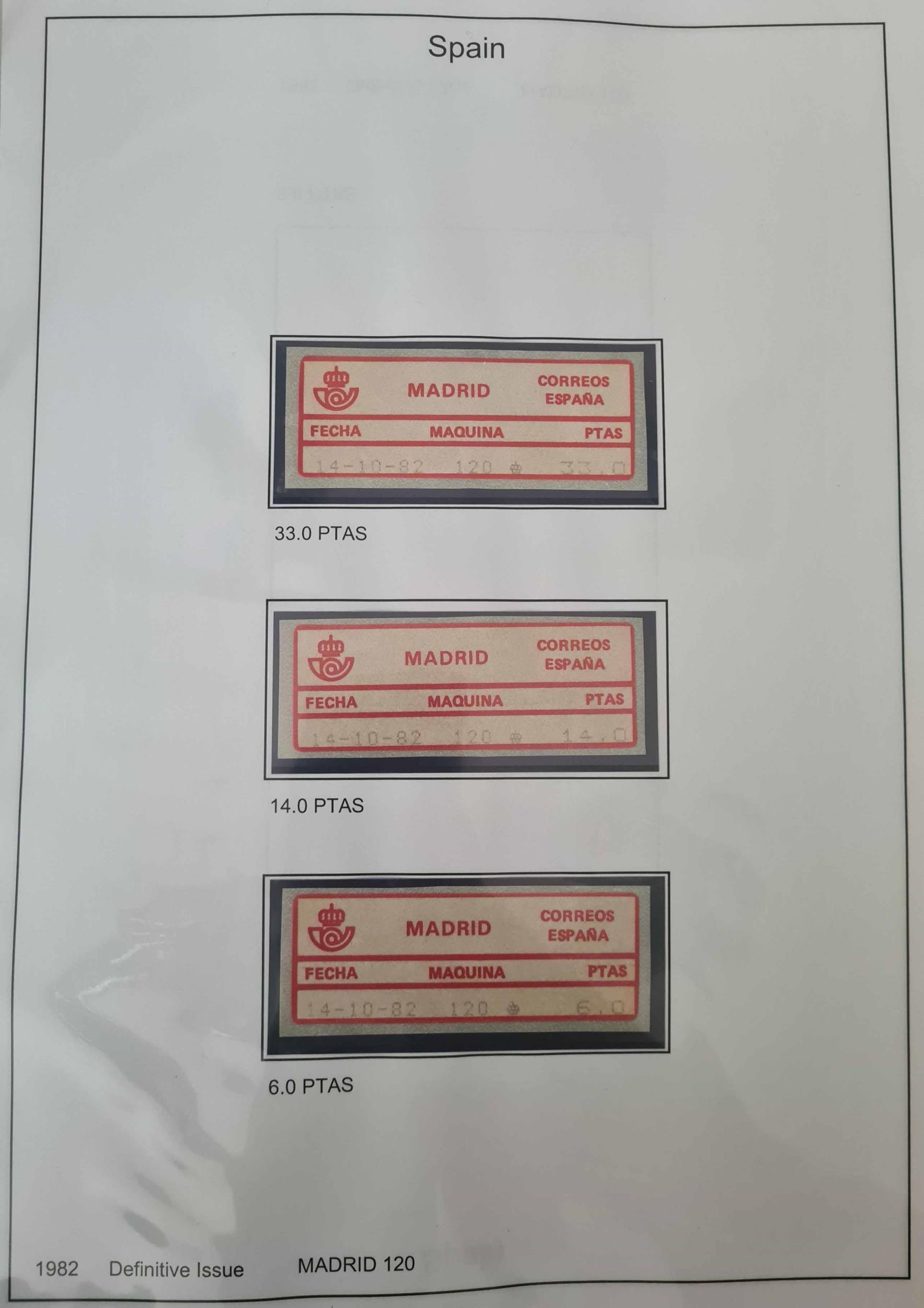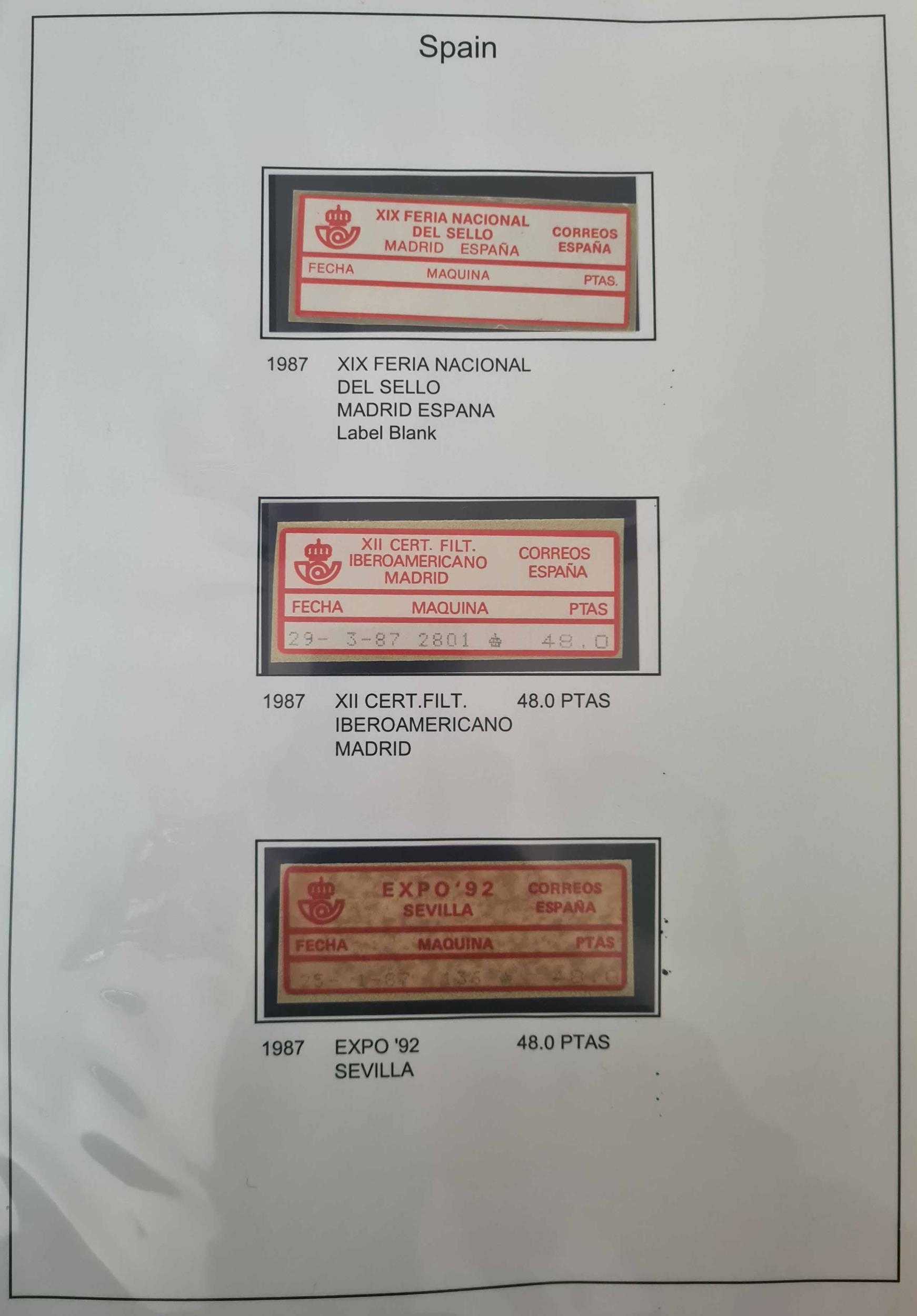 WORLDWIDE 'POST & GO' TYPE COLLECTION: Three large binders housing written-up collections of 'Post & Go' type issues for c.50 different countries (no GB or CI but inc. Scotland), some with just a single set, others, e.g. Australia running up to 37 pages. Collection spans the period from 1980s (Frama type labels) through to 2023. Presented on display pages, mostly in sets and supplemented throughout with background information and printing details. Many examples of printing errors or paper type errors, etc. throughout. A very fine assembly with scope for expansion. (many 100s)
