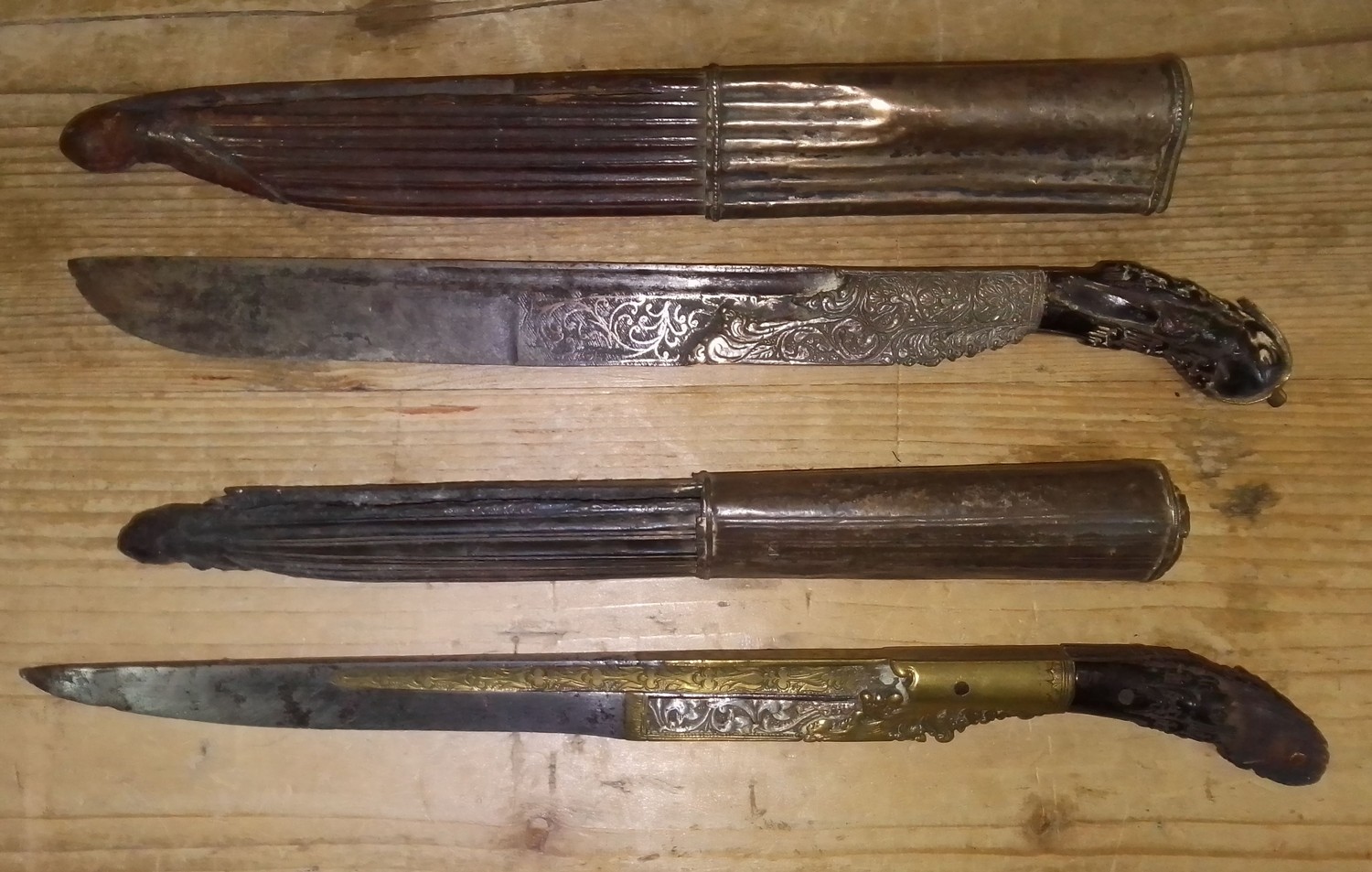 Two 19th century Chinese trousse knives with scabbards.