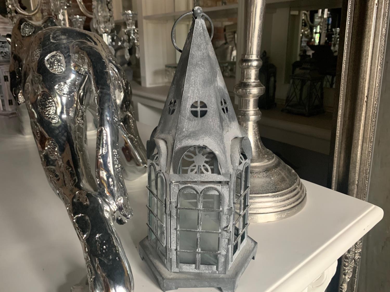 METAL GLAZED DECORATIVE CANDLE BOX IN LEAD FINISH