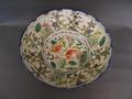 A large Chinese bowl with painted enamel decoration depicting goldfish to centre and floral panels to boarder, 6 character mark to base, 15½' diameter