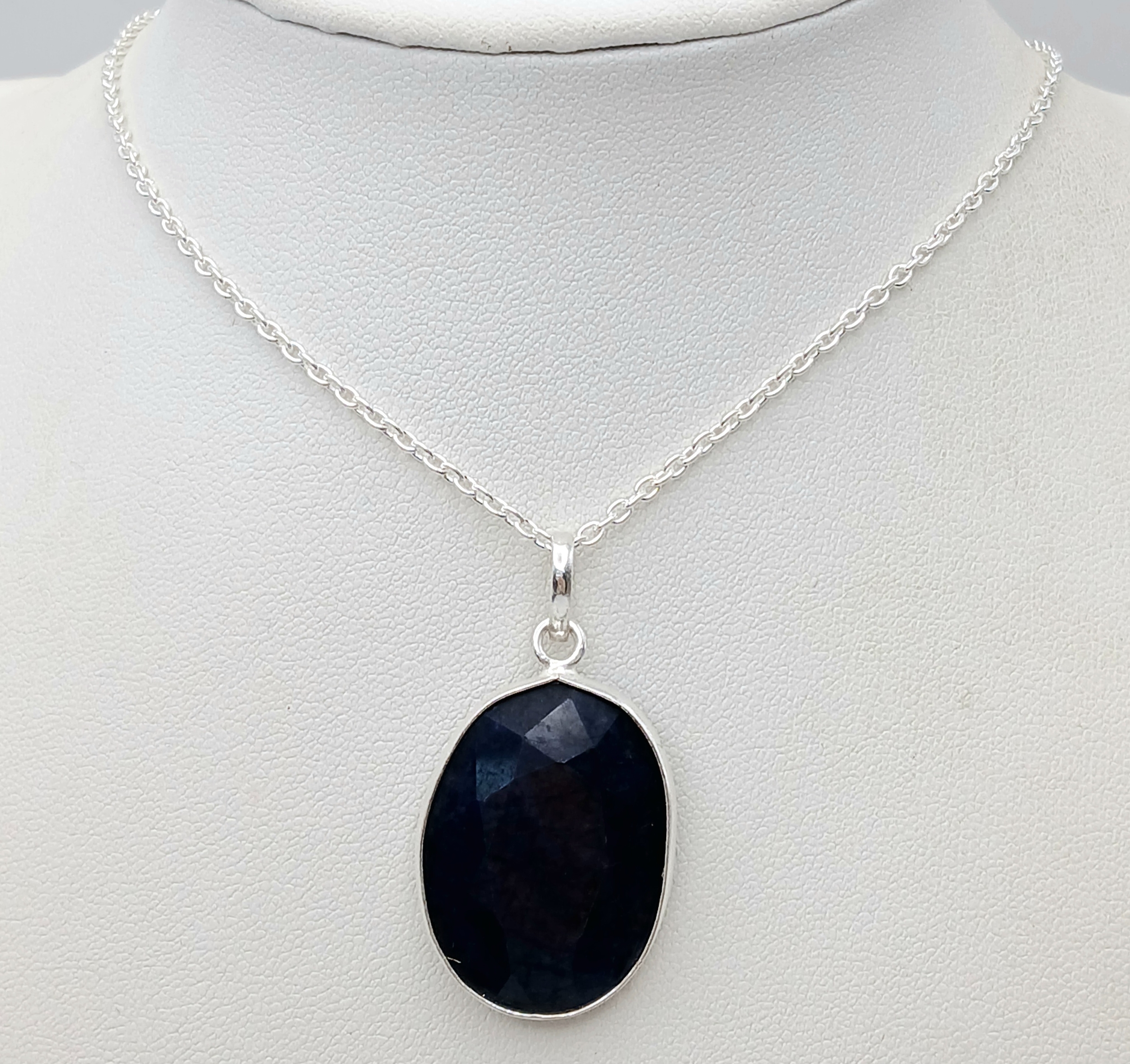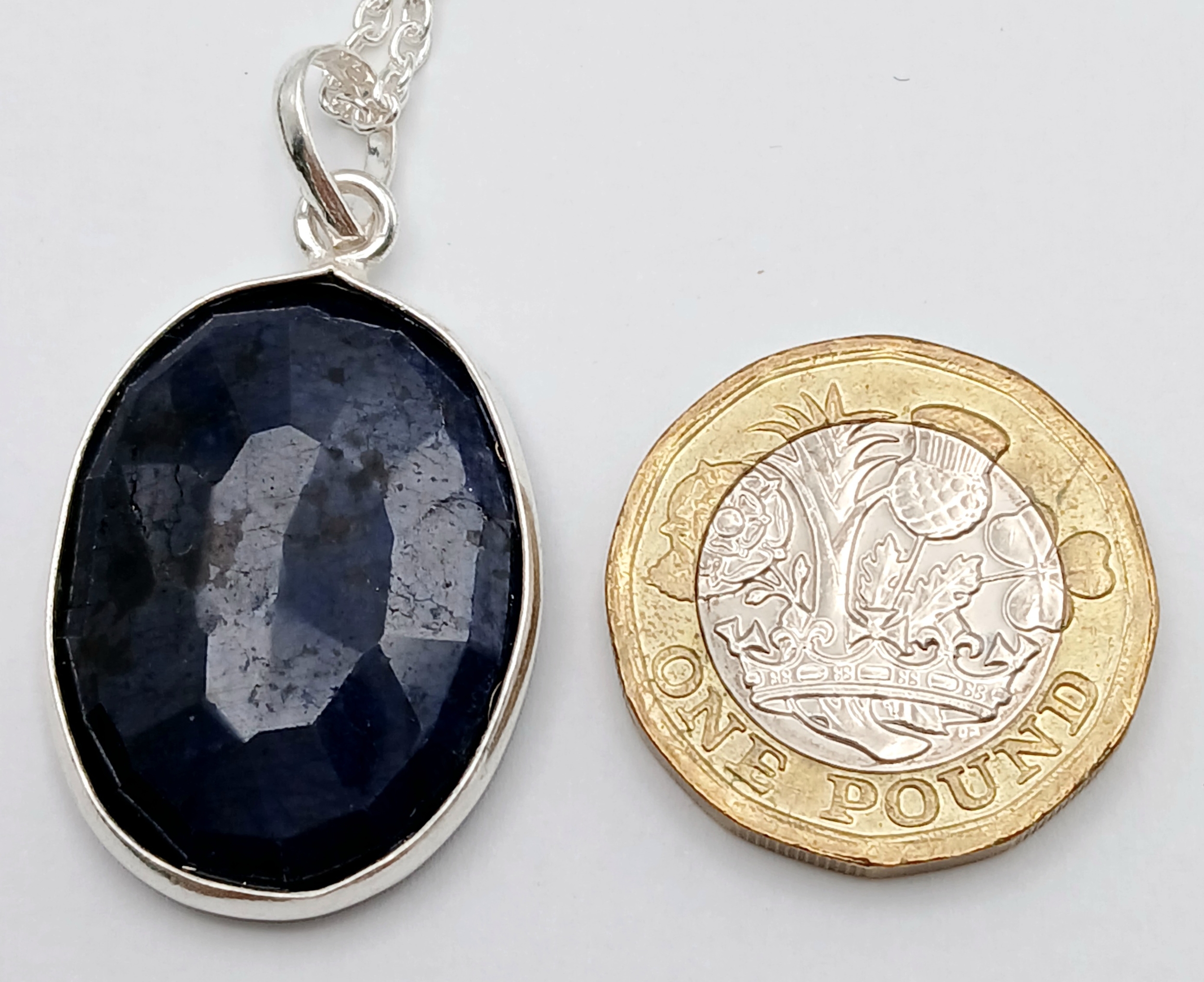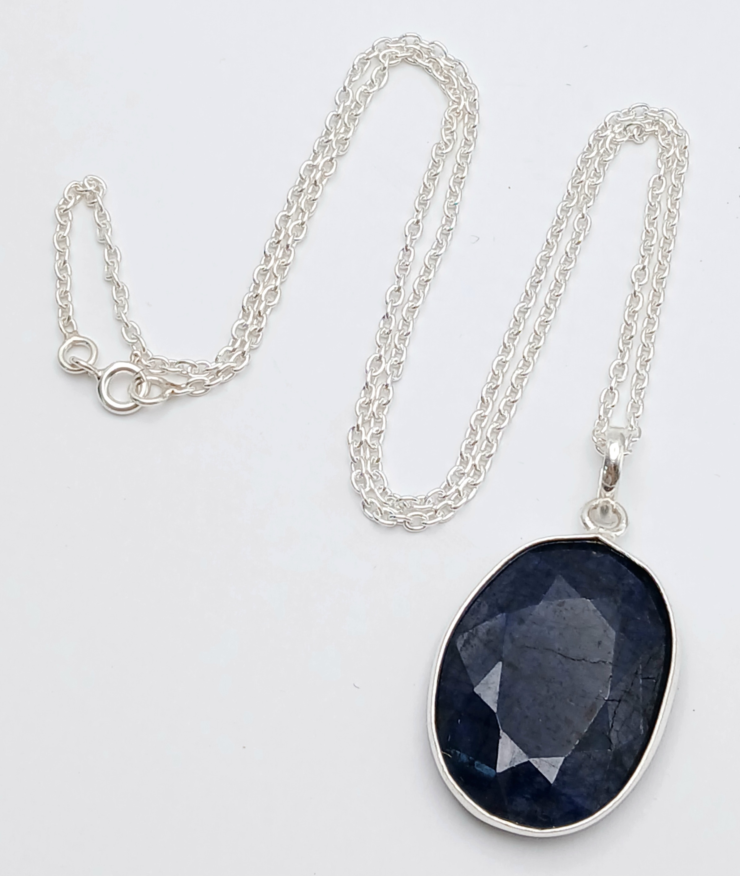 A Blue Sapphire Pendant with a 925 Silver with Chain. 3.5cm and 42cm. CD-1923