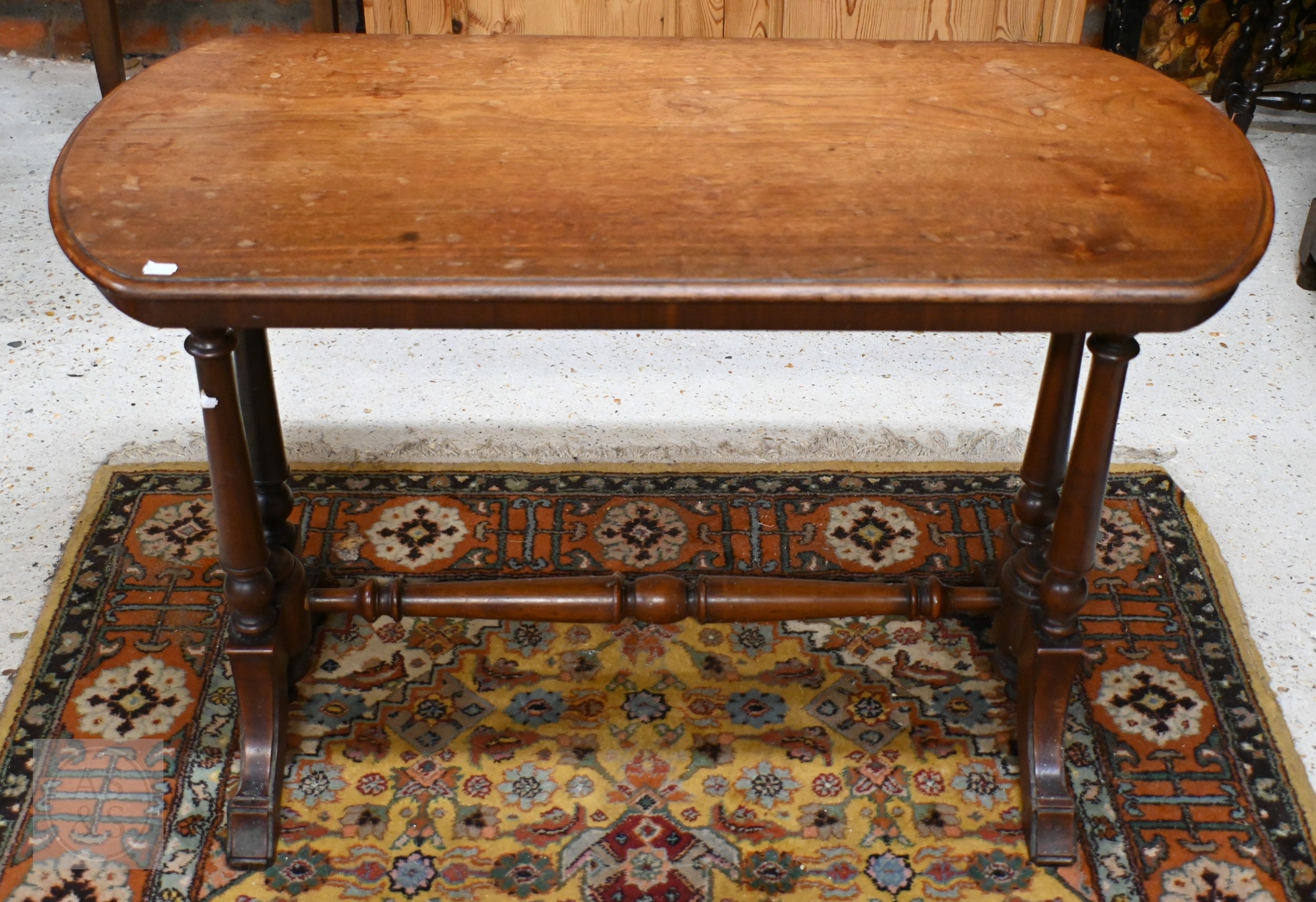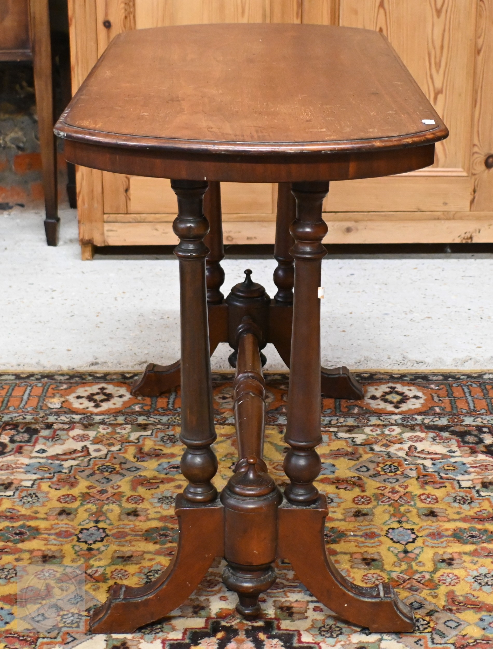 A Victorian mahogany console table with four turned pillars to outswept legs, 104 x 48 x 70 cm high
