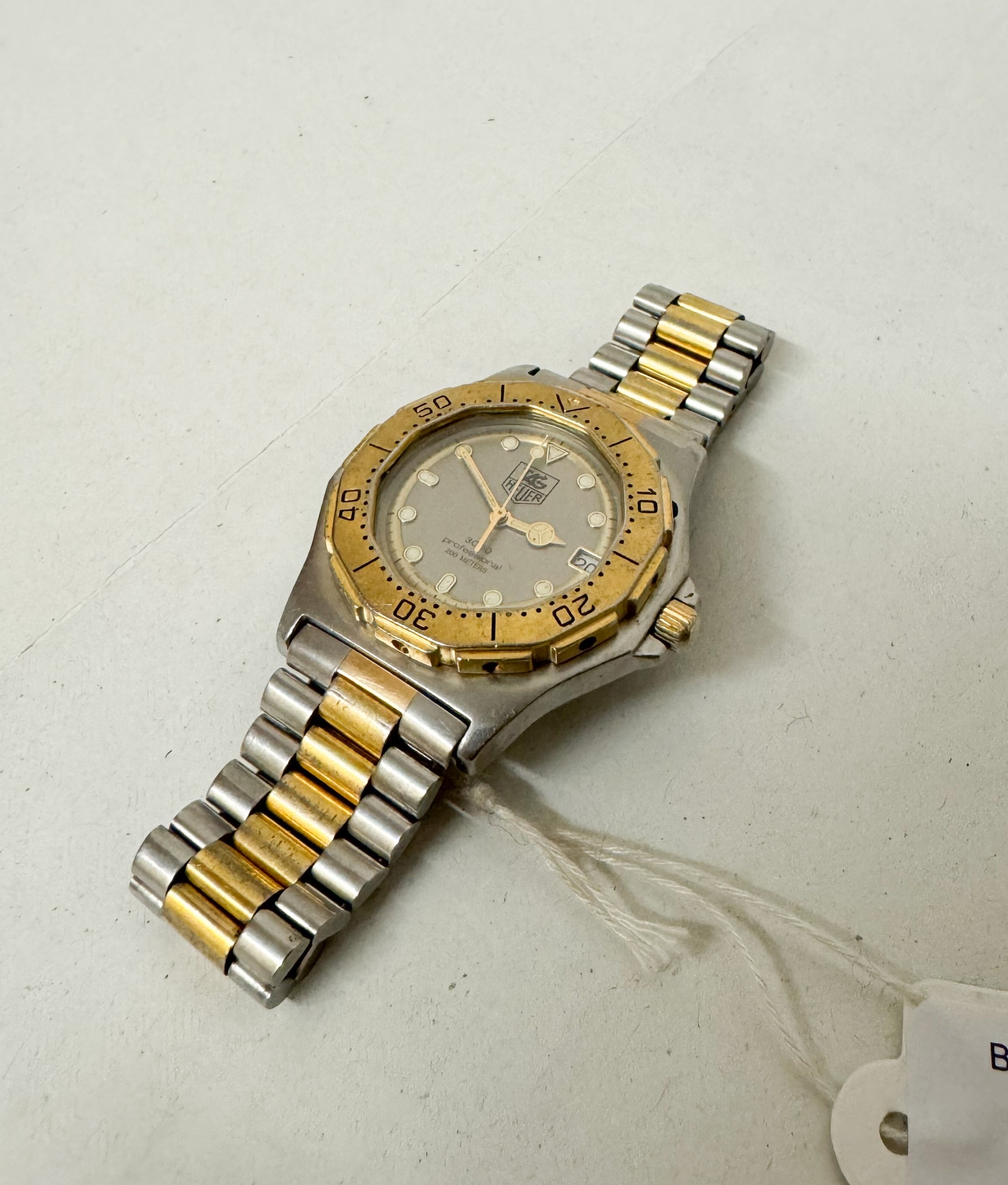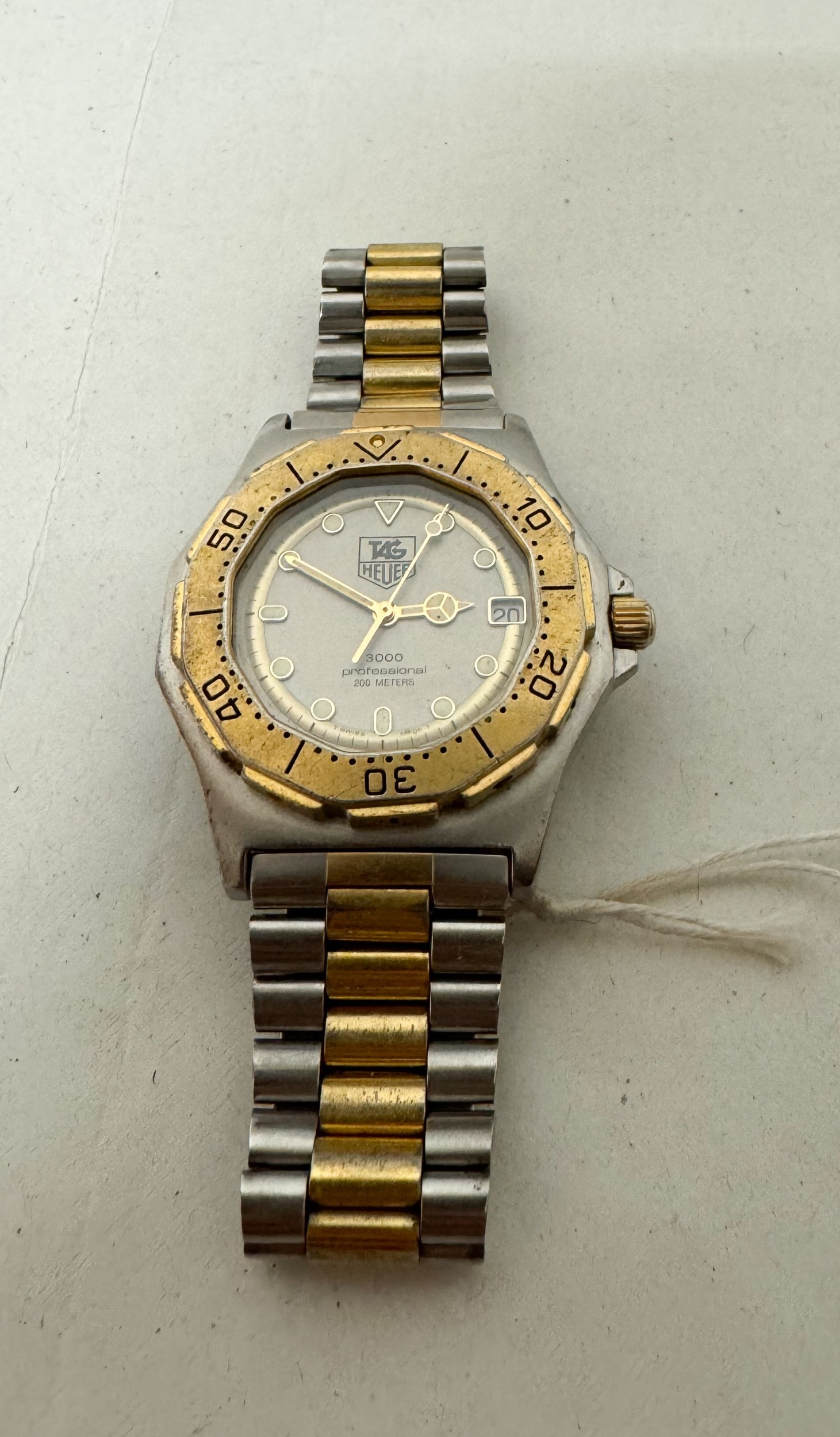 A gent's Tag Heuer 3000 Professional quartz date wrist watch on a gilt and stainless steel strap