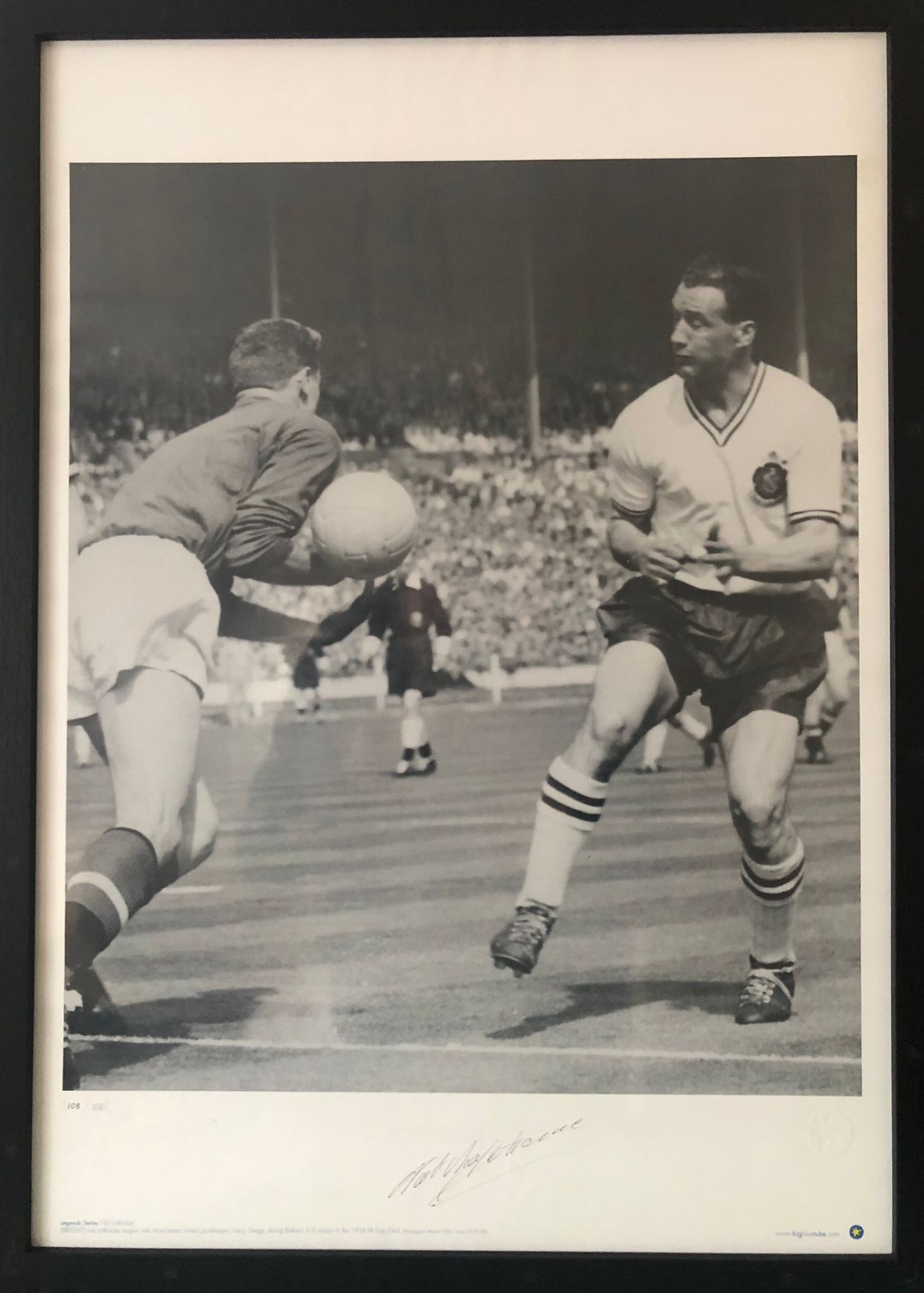 A framed signed photograph limited edition 108/500 - signed by footballer Nat Lofthouse - with certificate authenticity