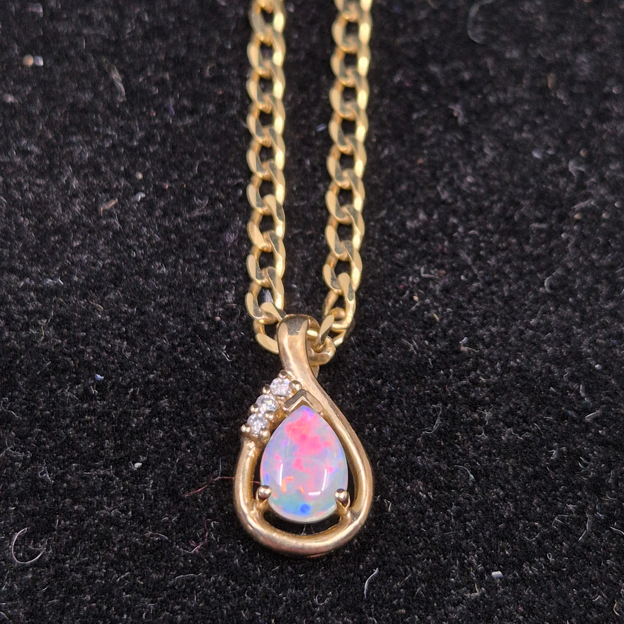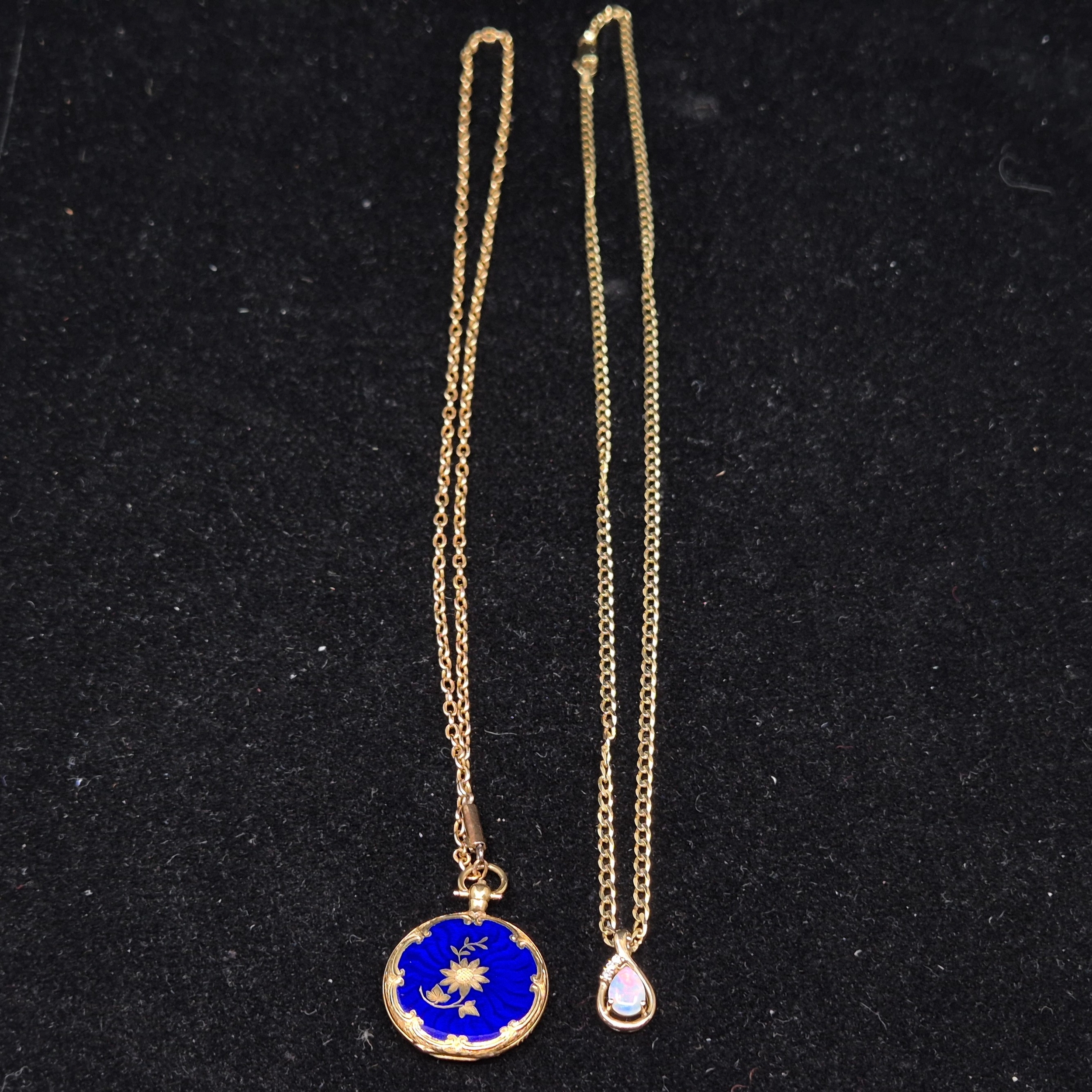 A 9ct Gold and Opal & Diamond Necklace (4.71g) together with another 15ct Gold Chain with 15ct Gold Enamelled Locket (12.24g)