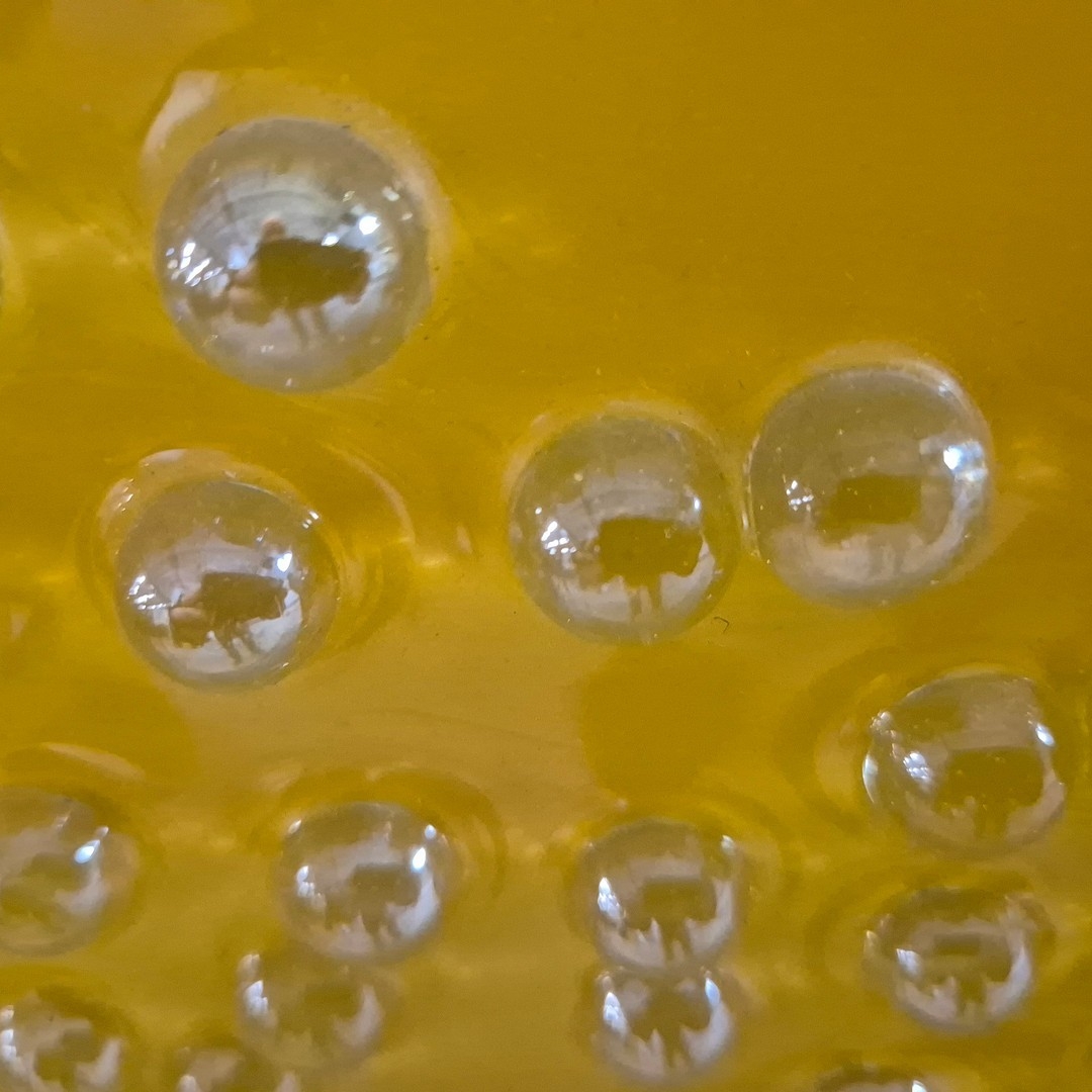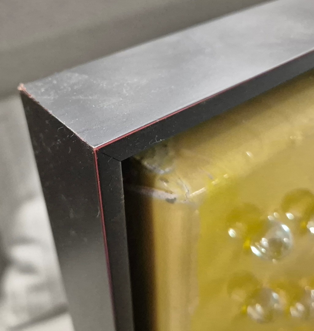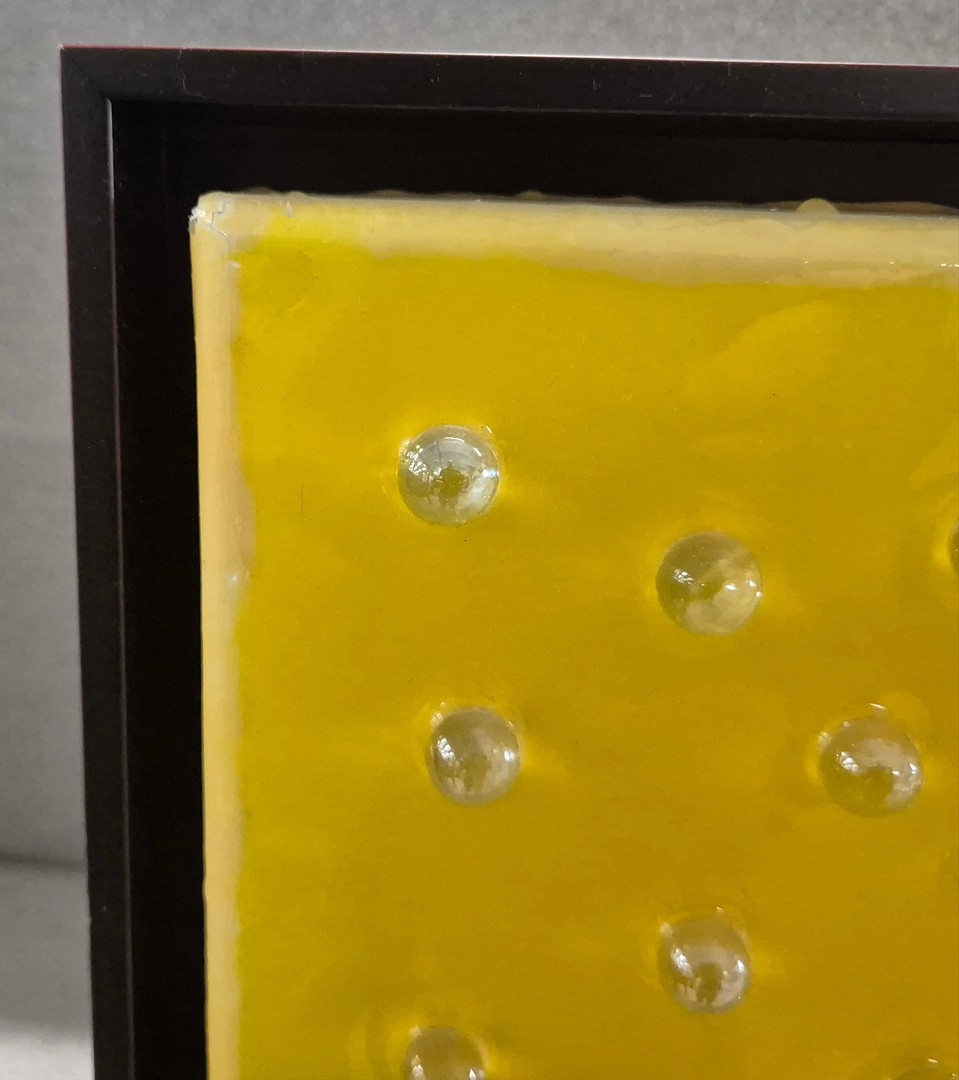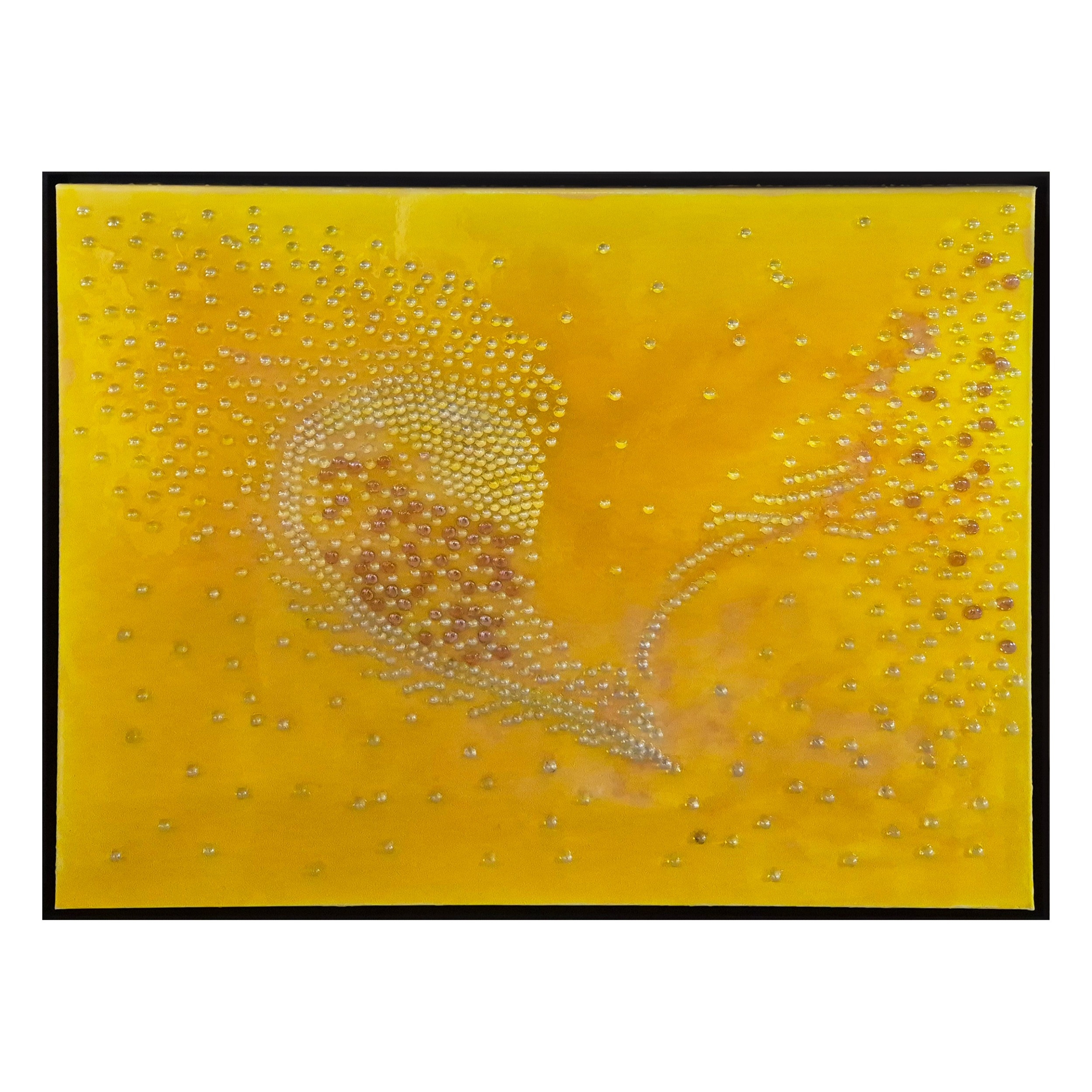 ABSTRACT NATURE STUDY. oil lacquer and glass droplets on canvas, framed, 100 x 120 cm.