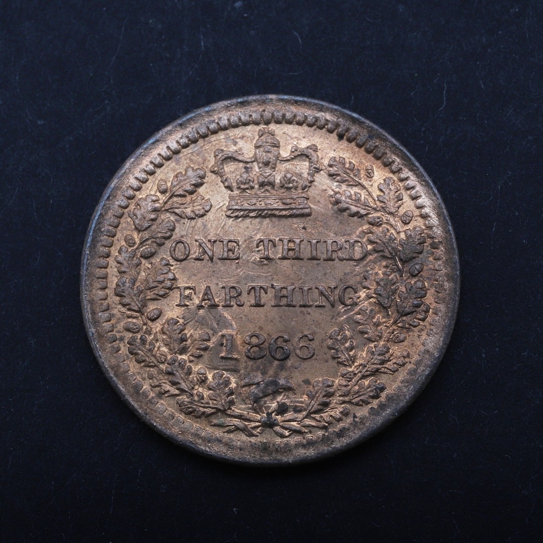 A QUEEN VICTORIA THIRD FARTHING, 1866. A Queen Victoria third farthing, laureate head l. Reverse with crowned date and value. Dated 1866. Made for use in Malta.