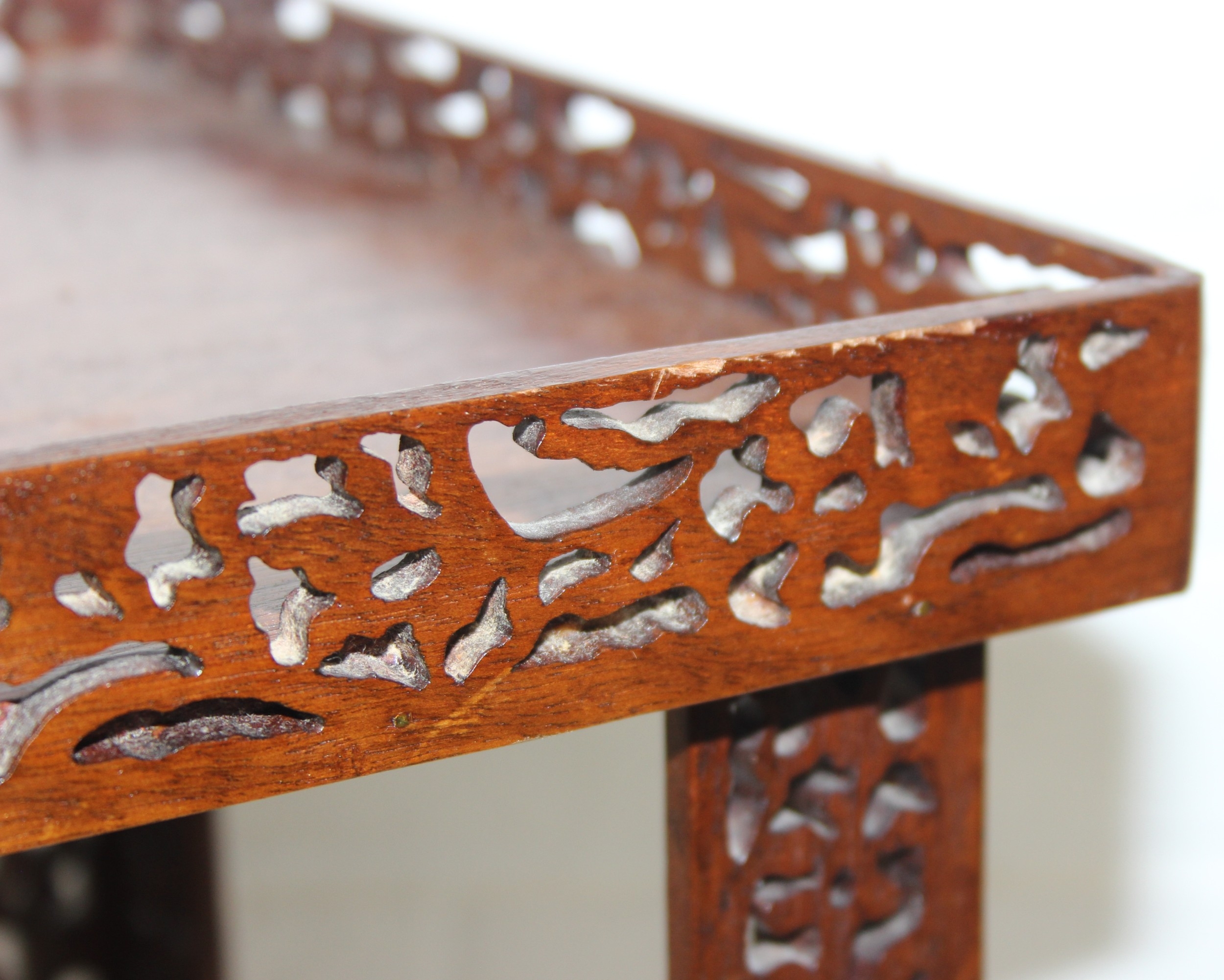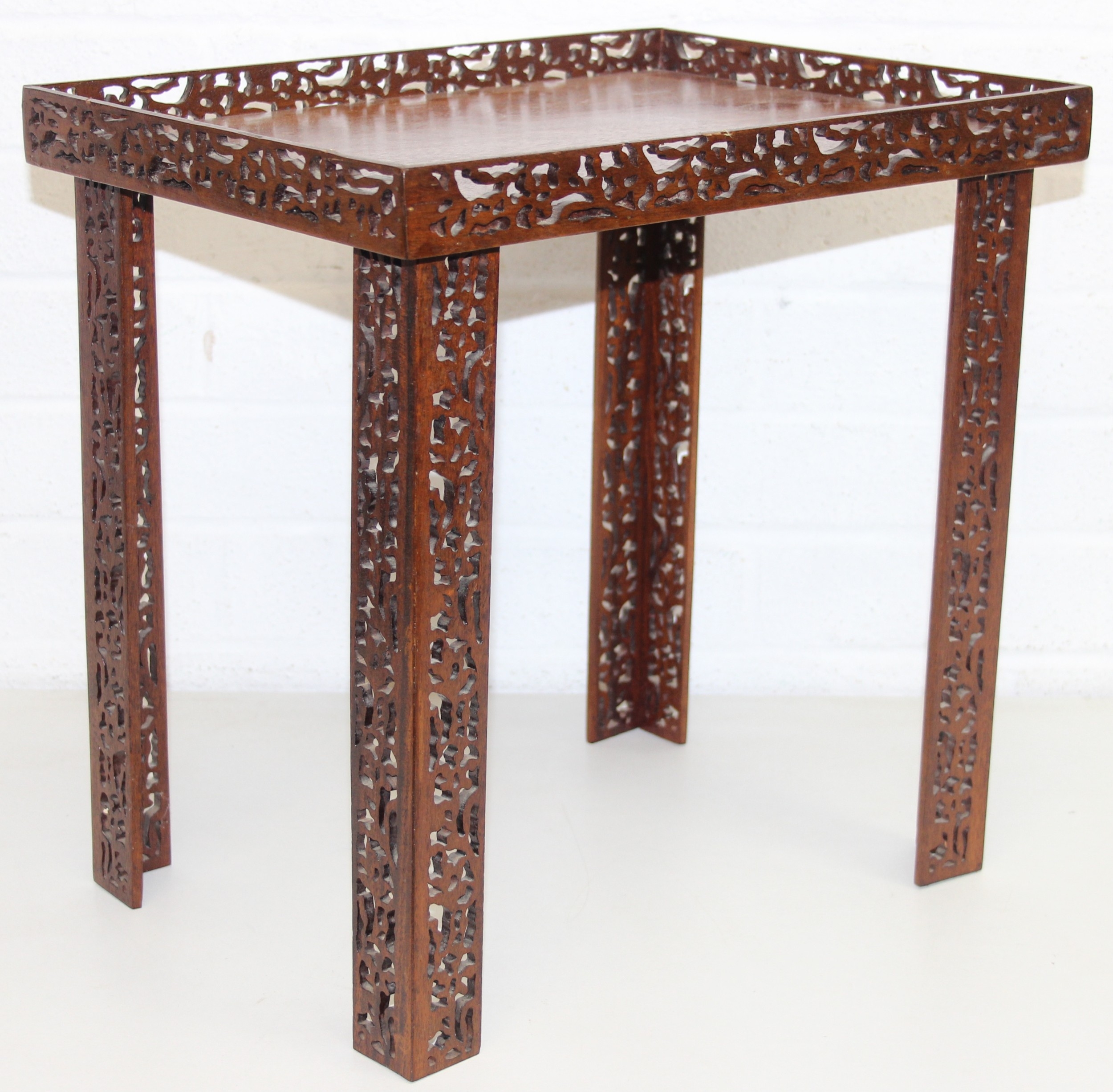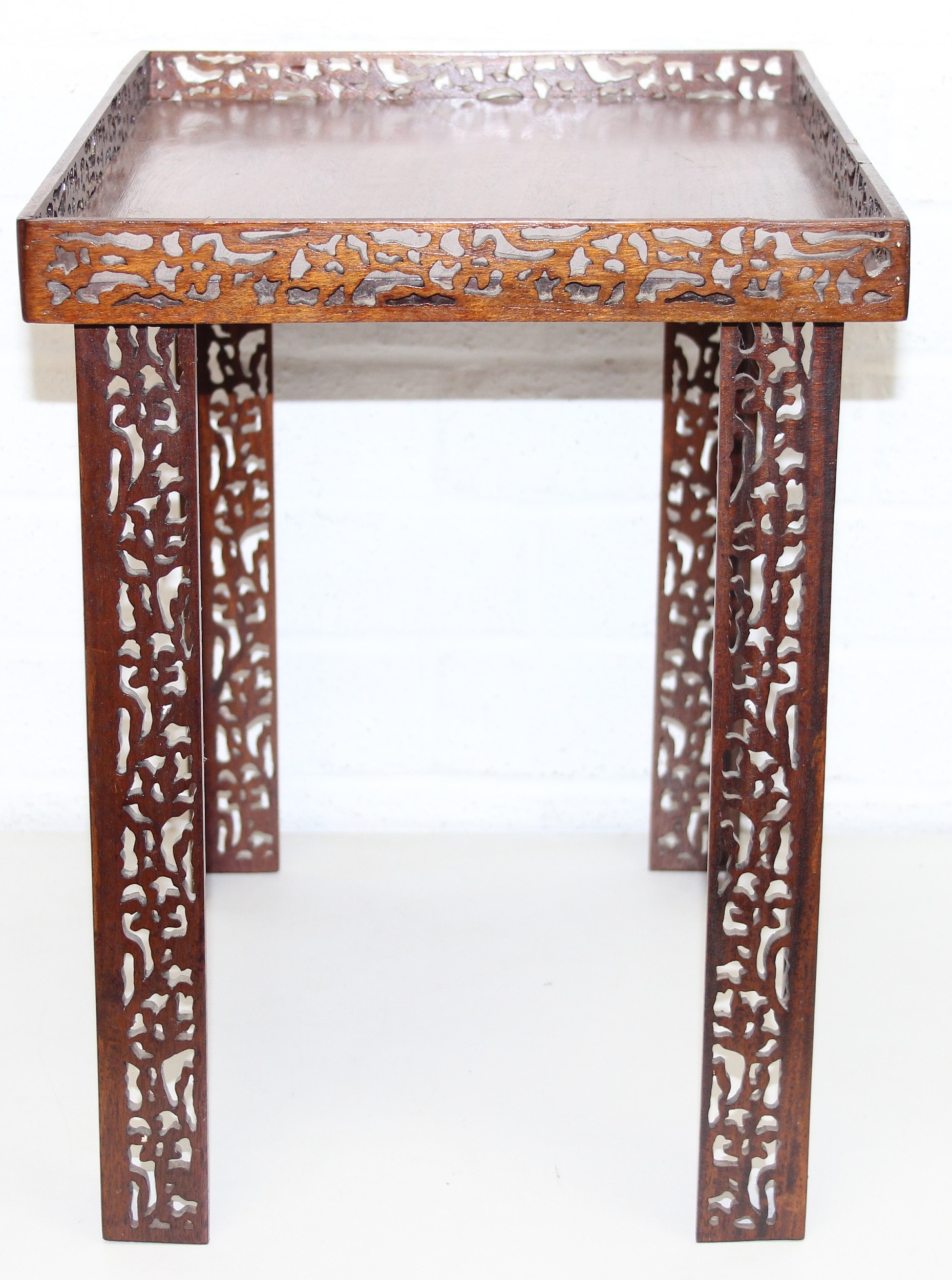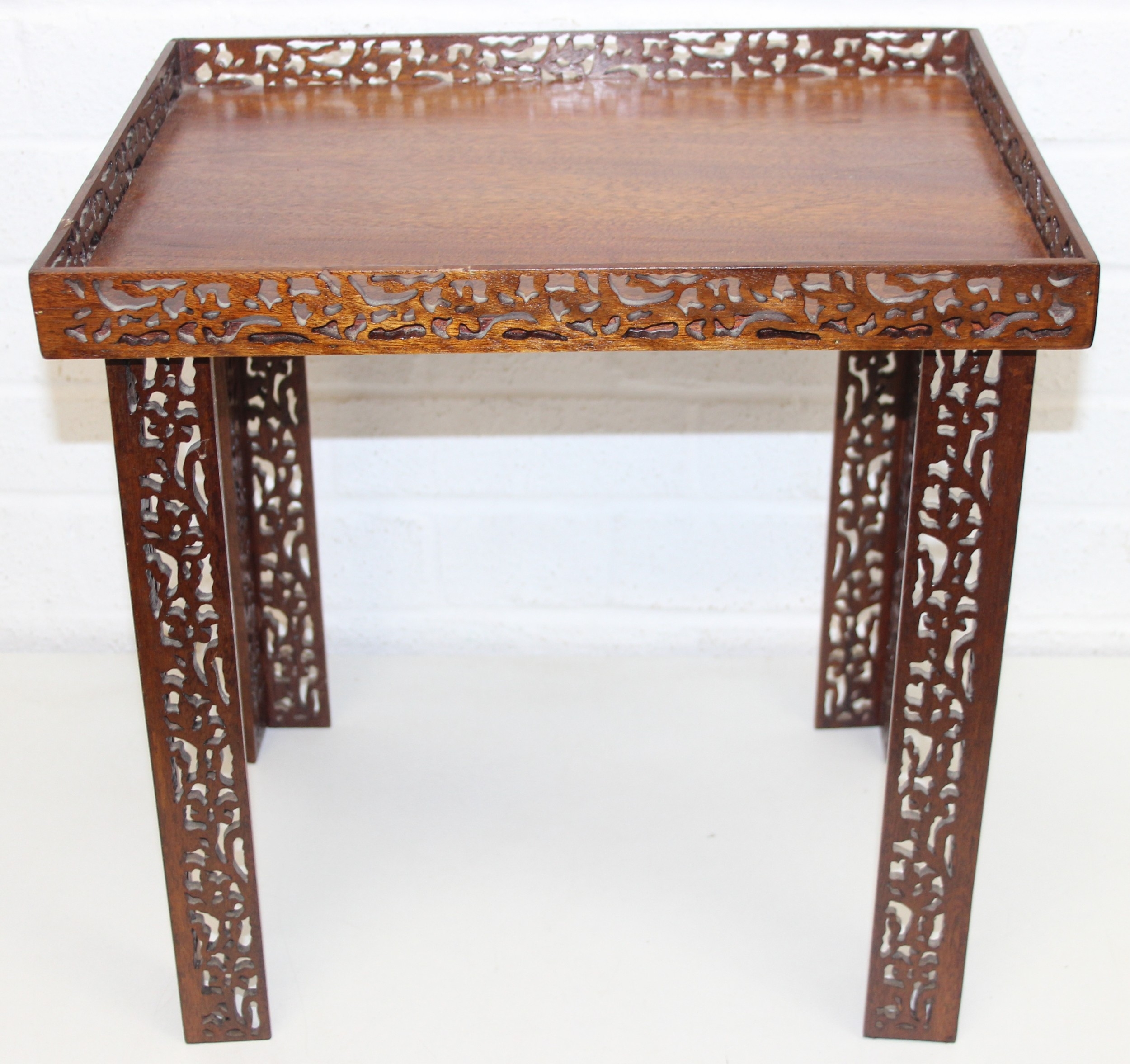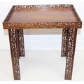 A vintage Chinese Chippendale style mahogany side table with pierced gallery and supports, 20th century, 41cm x 28cm x 41cm