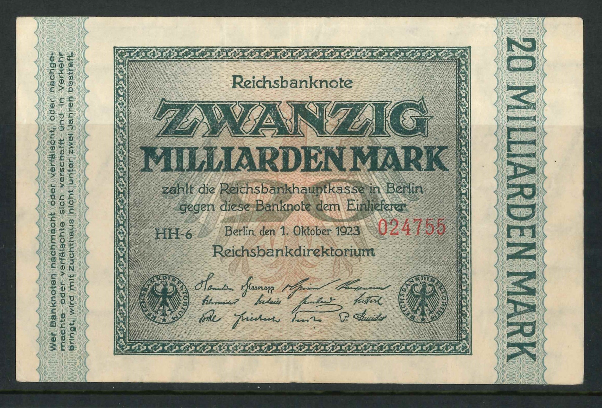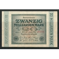 Banknotes; Germany; 1923 20,000,000,000 marks ("20 Milliard") with wattermark "G/D in stars", VF+, Krause 118a.