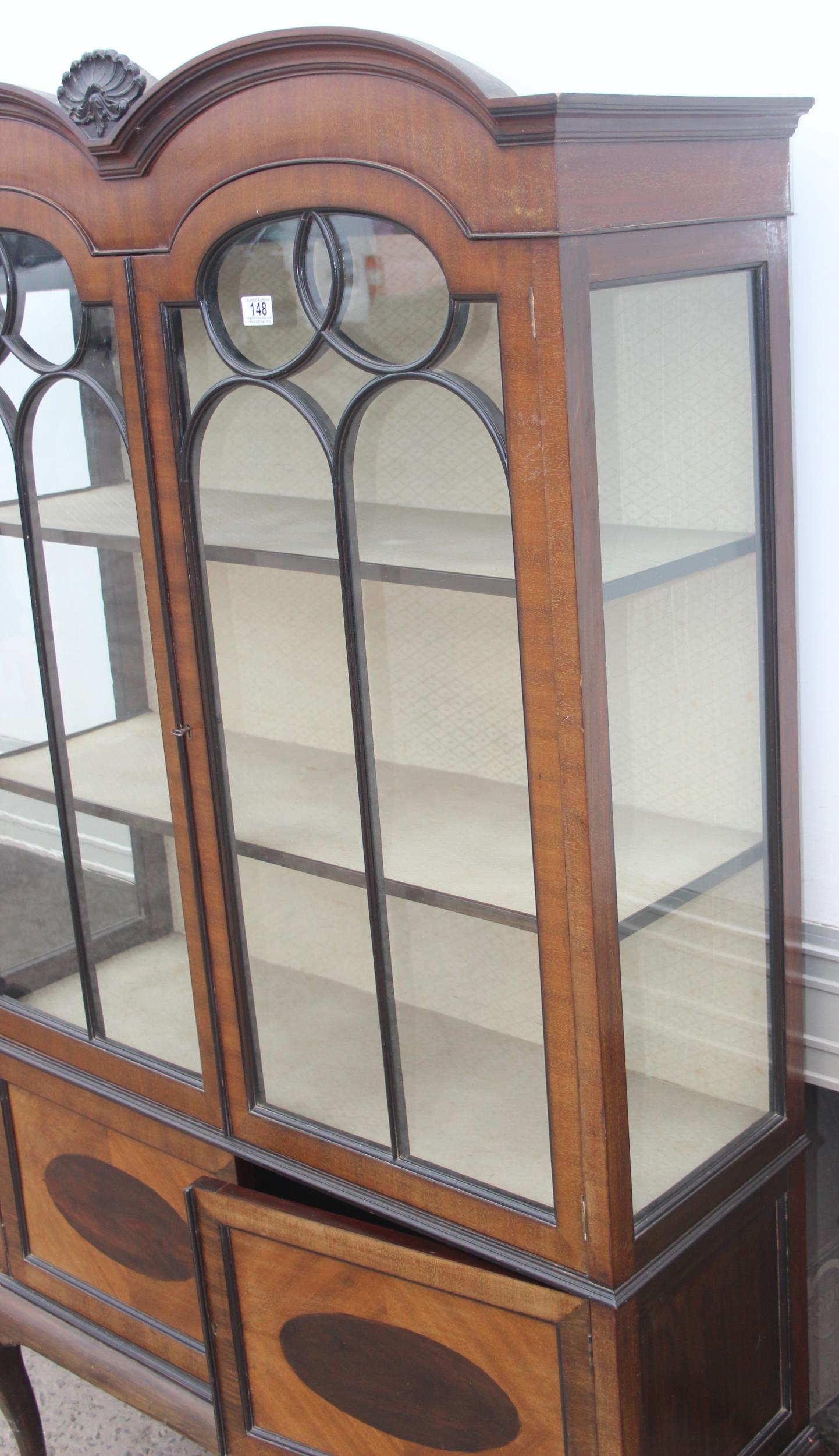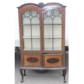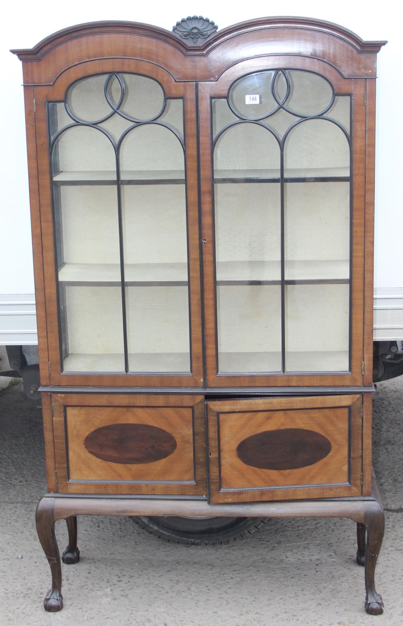 An early 20th century glazed mahogany display cabinet on cabriole legs, approx 107cm W x 36cm D x 86cm H