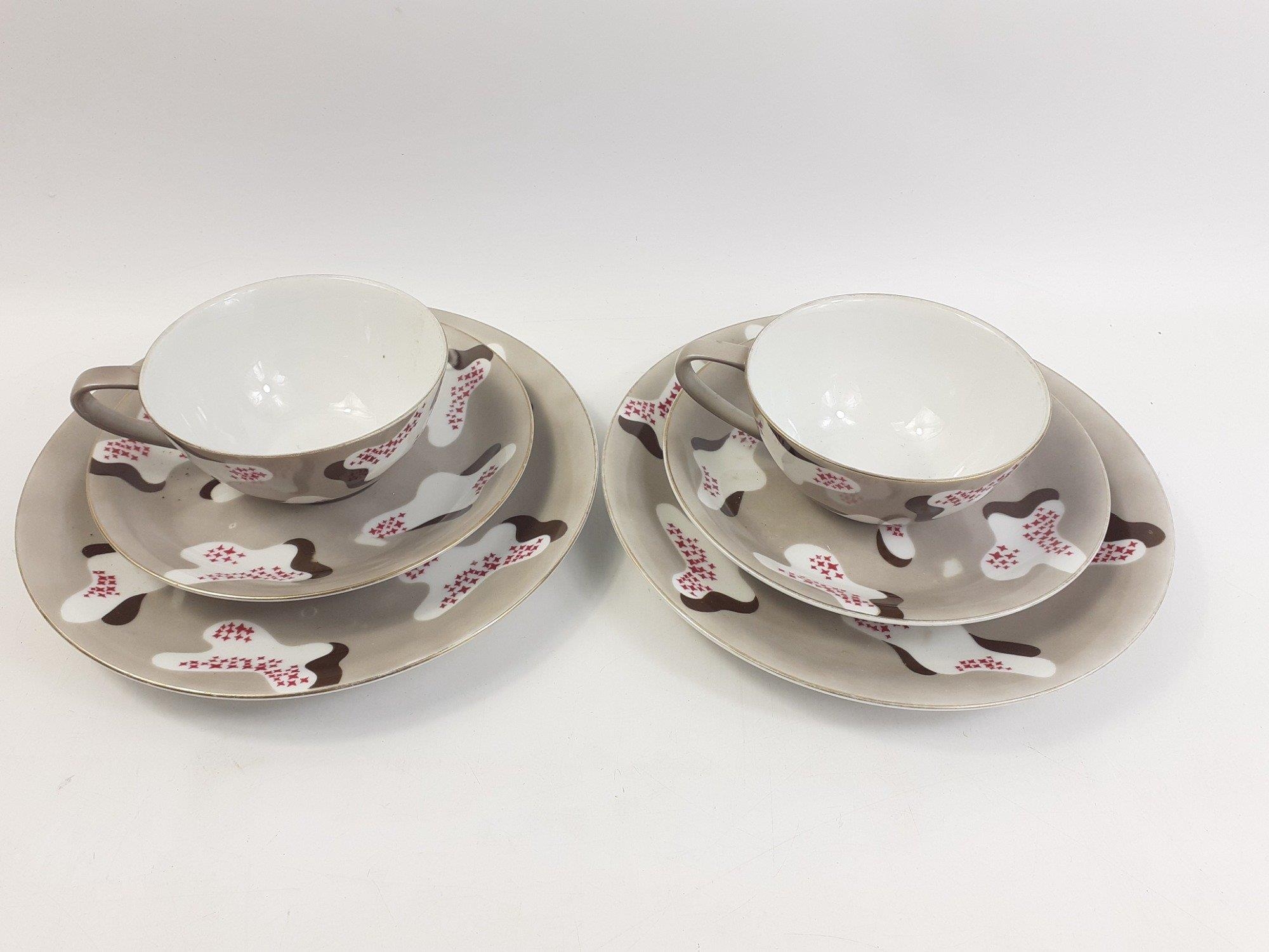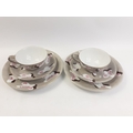 Rarer NORITAKE side plate, tea cup and saucer. A lovely pair of trios in apparently an unusual pattern.