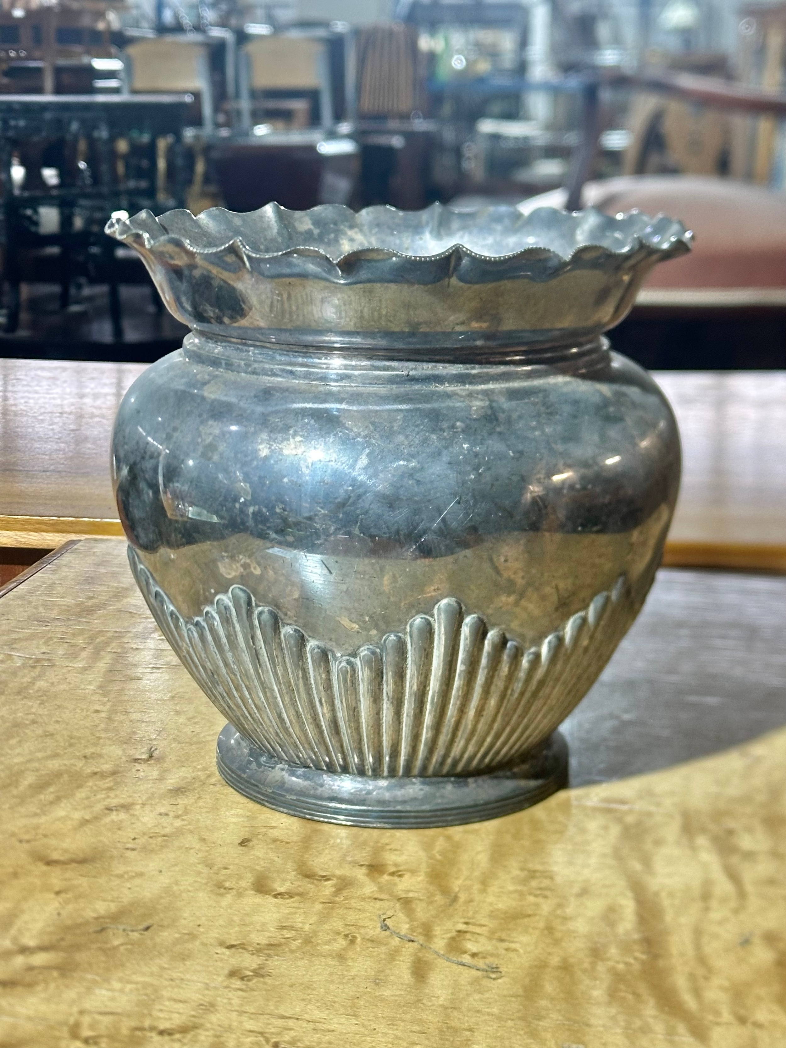 A Walker & Hall silver plated jardiniere. Early 20th century. 19x18cm.