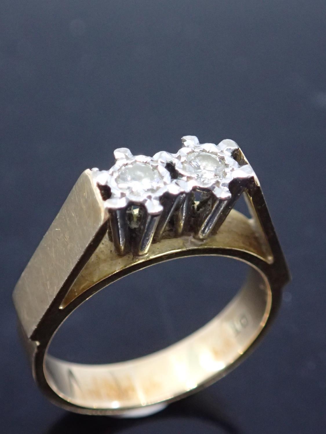 A diamond two stone ring set in 18ct gold finger size N approx. 6.1 grams