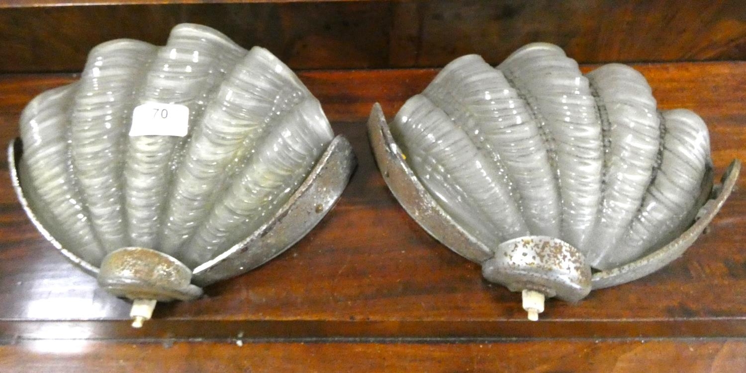 Two Art Deco glass clam shell, wall lights.