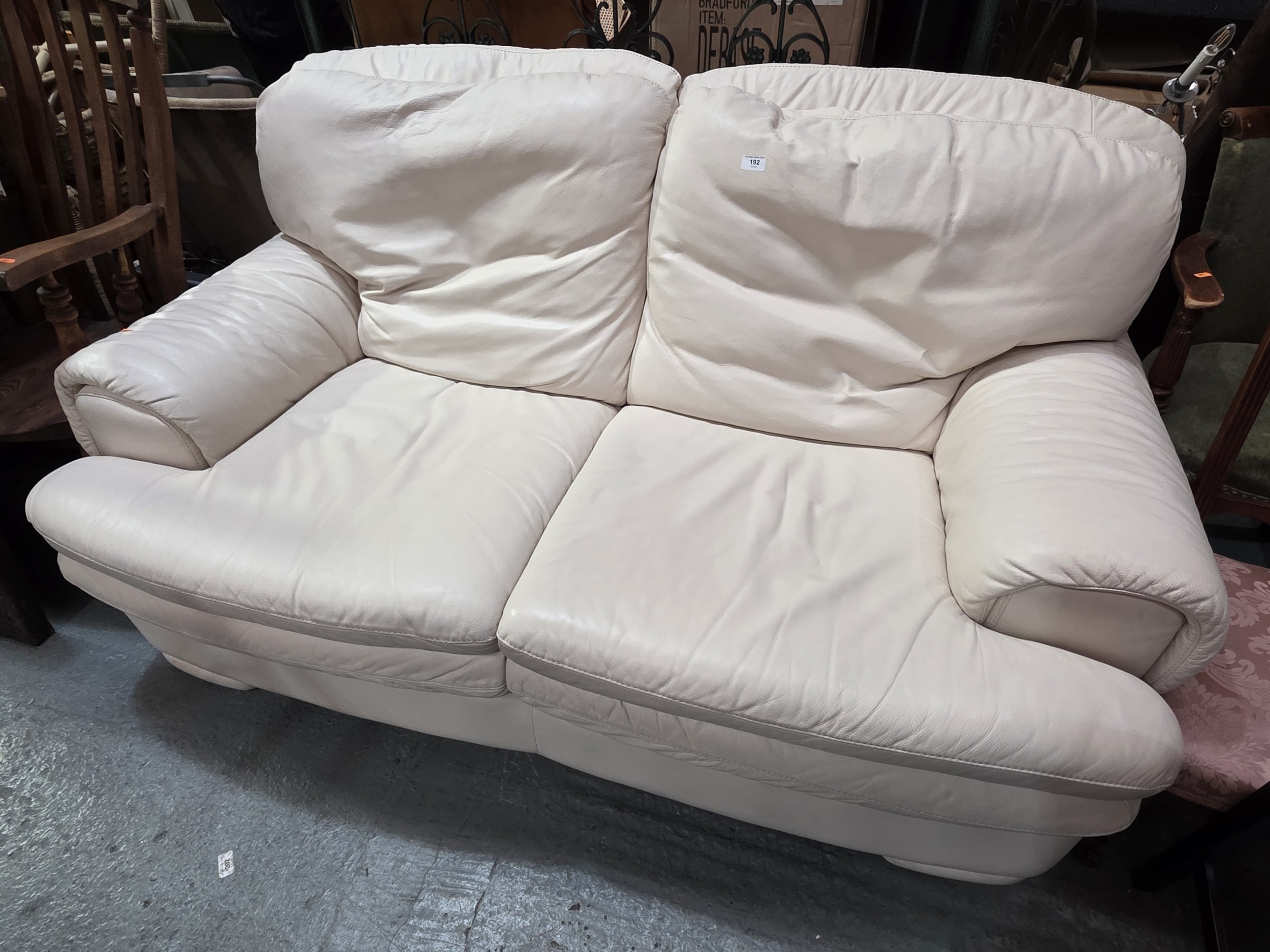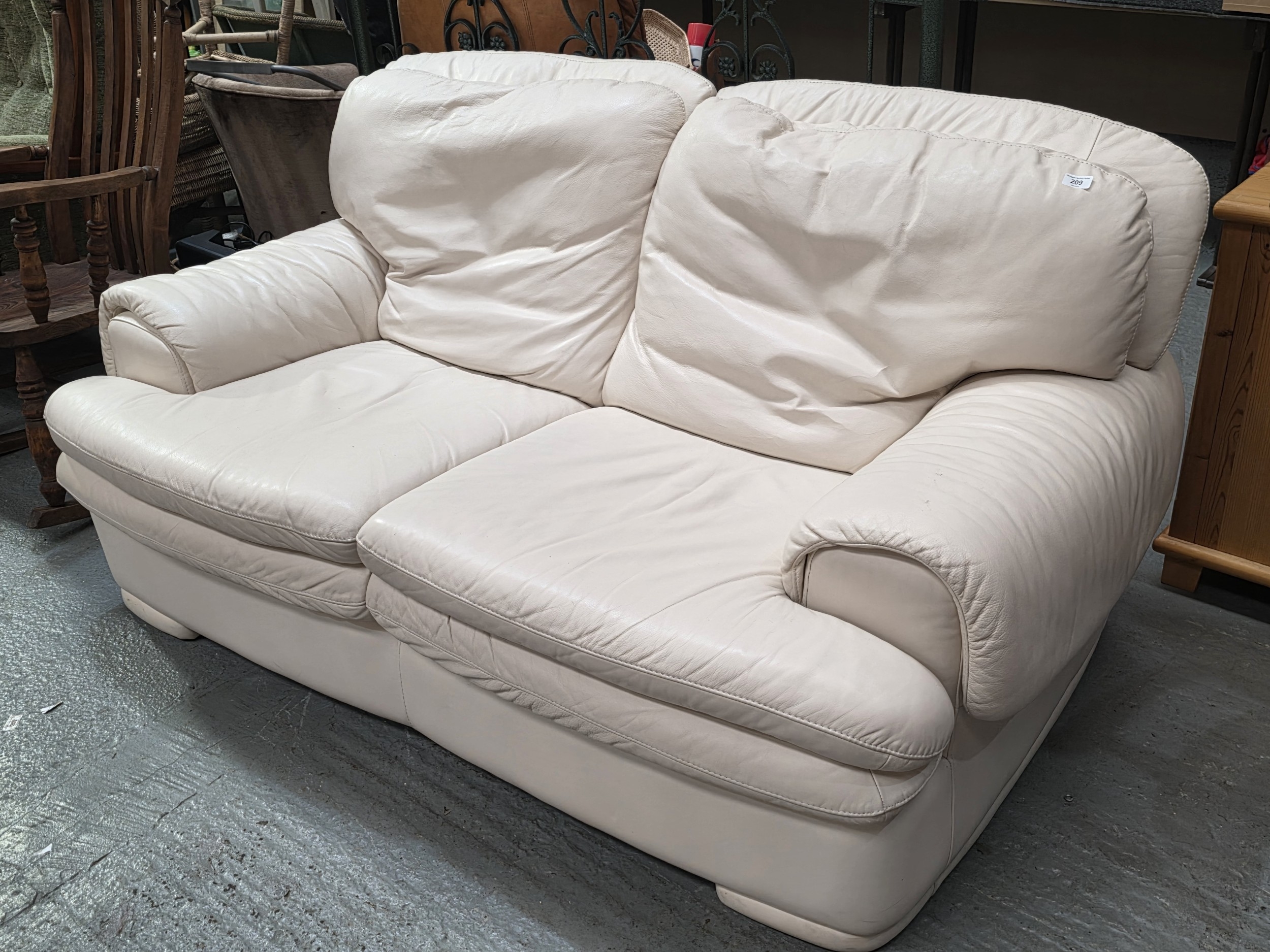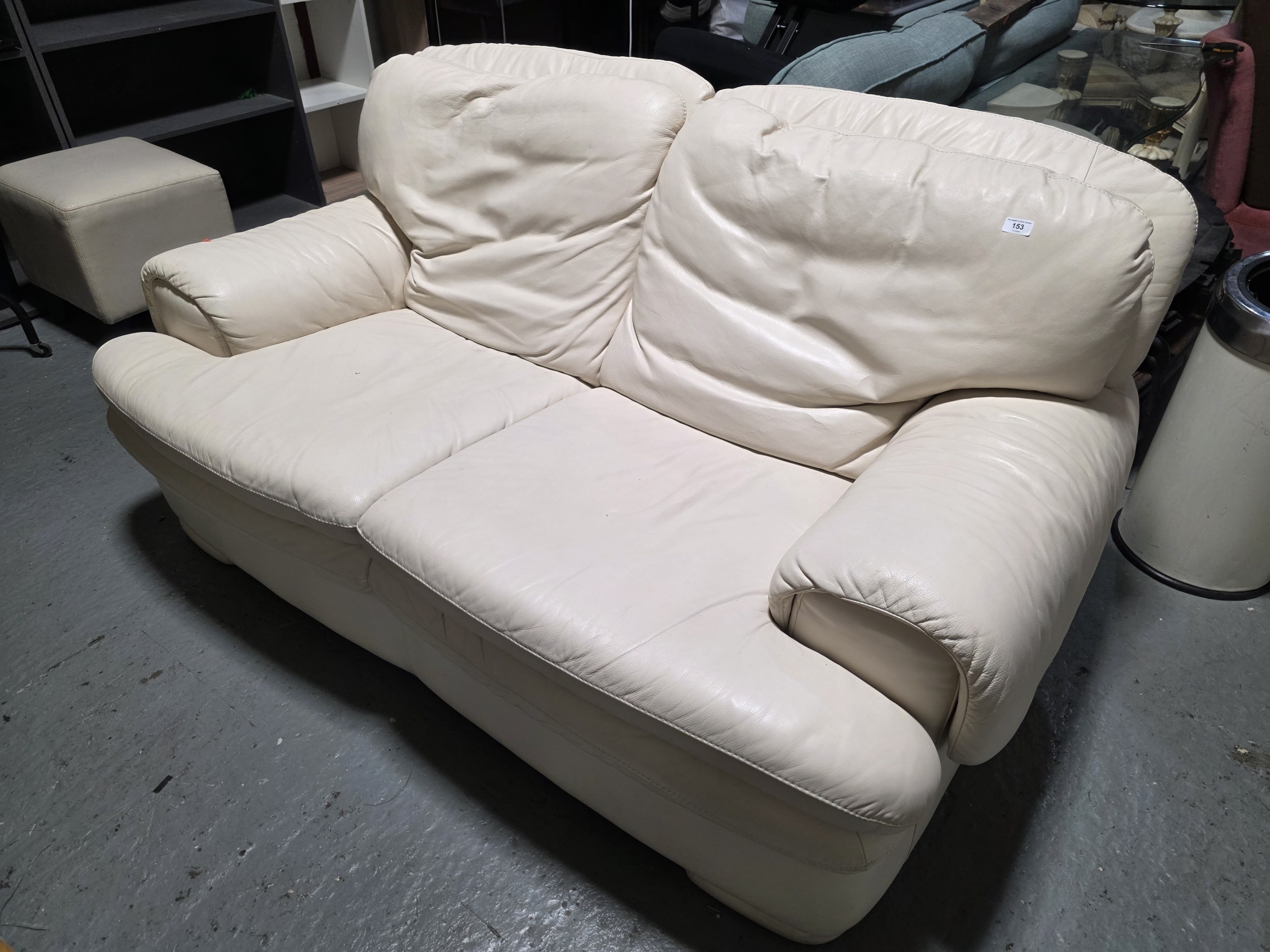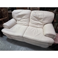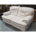 CREAM LEATHER THREE SEATER SOFA