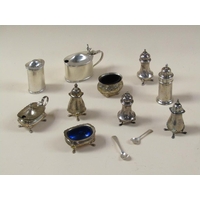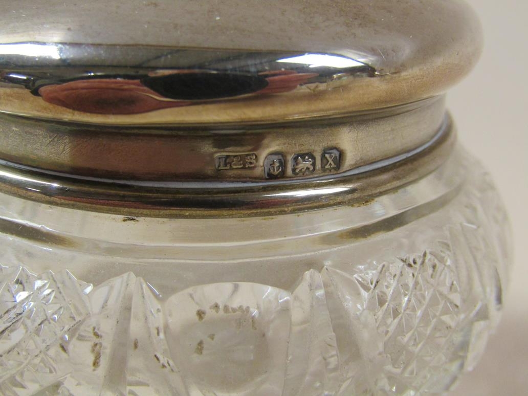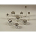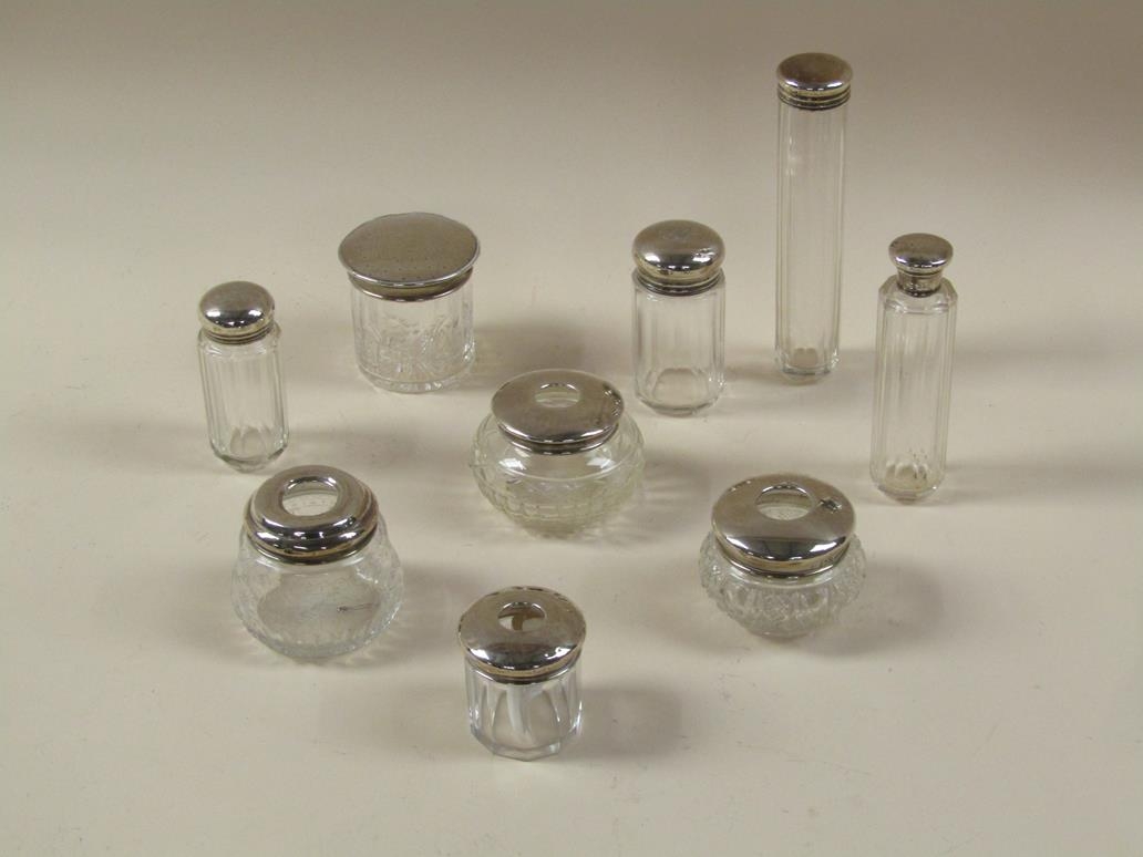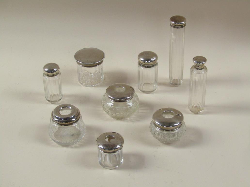 NINE COSMETIC AND PIN JARS, SILVER COVERS