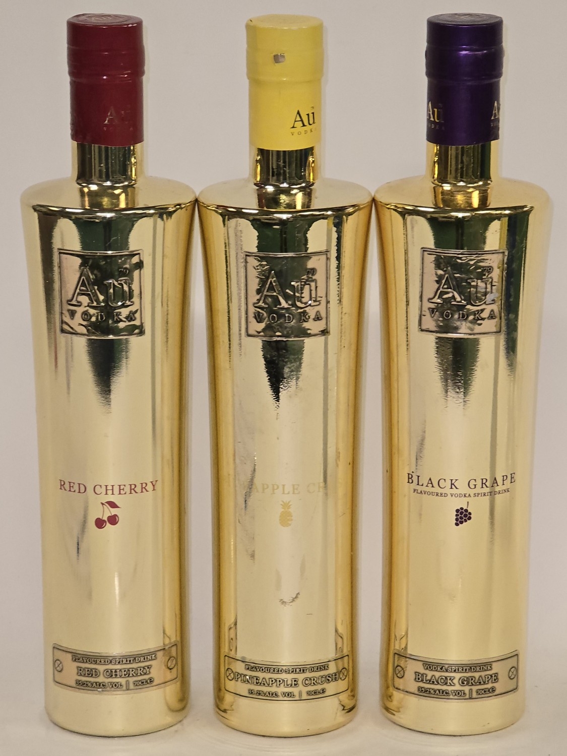 3 x Au flavoured vodka 70cl to include Red Cherry, Pineapple Crush and Black Grape (REF 30E).