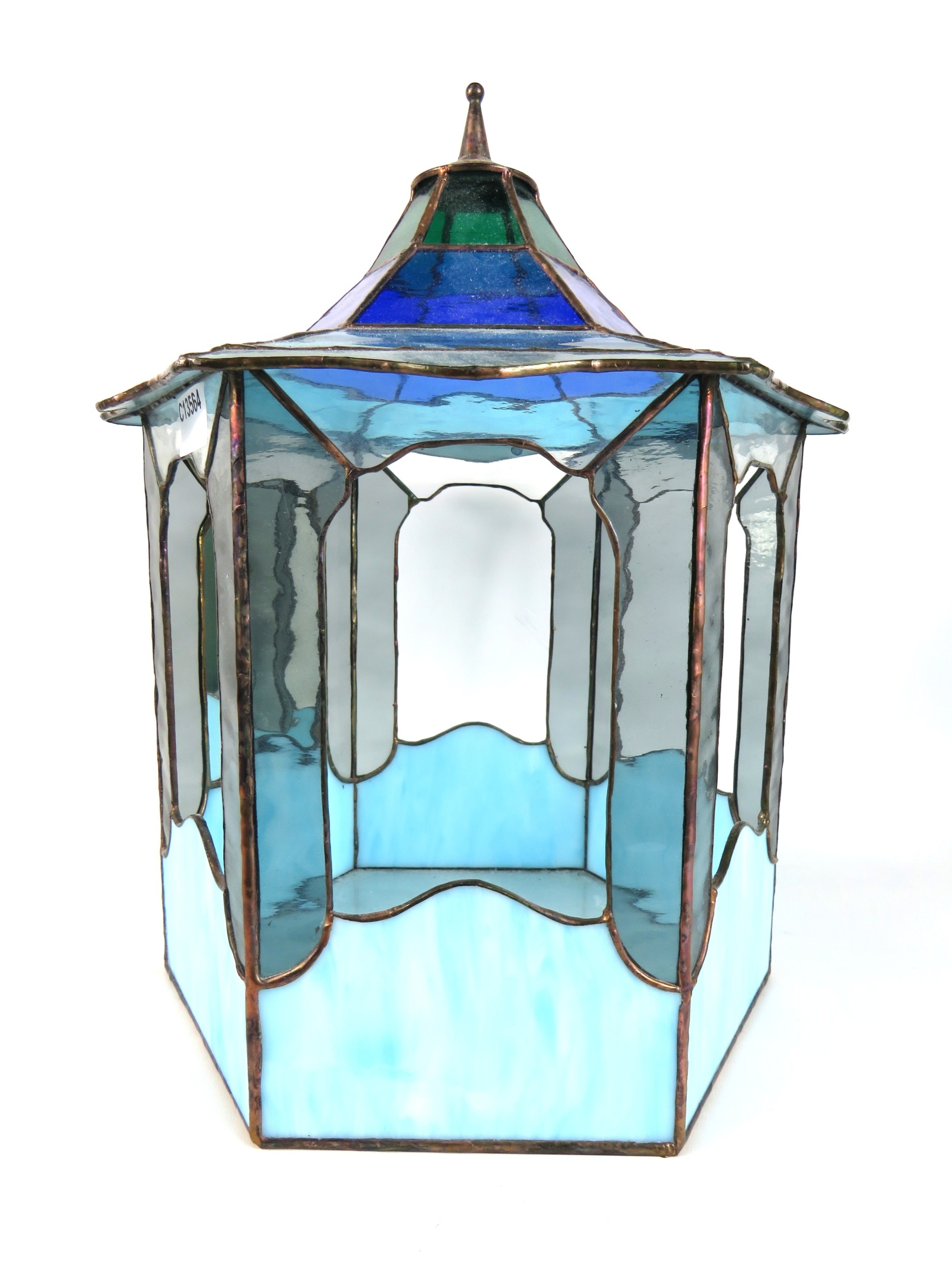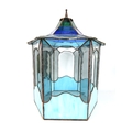 Stained glass lantern in blue and green tones - 42cm x 28cm x 25cm
