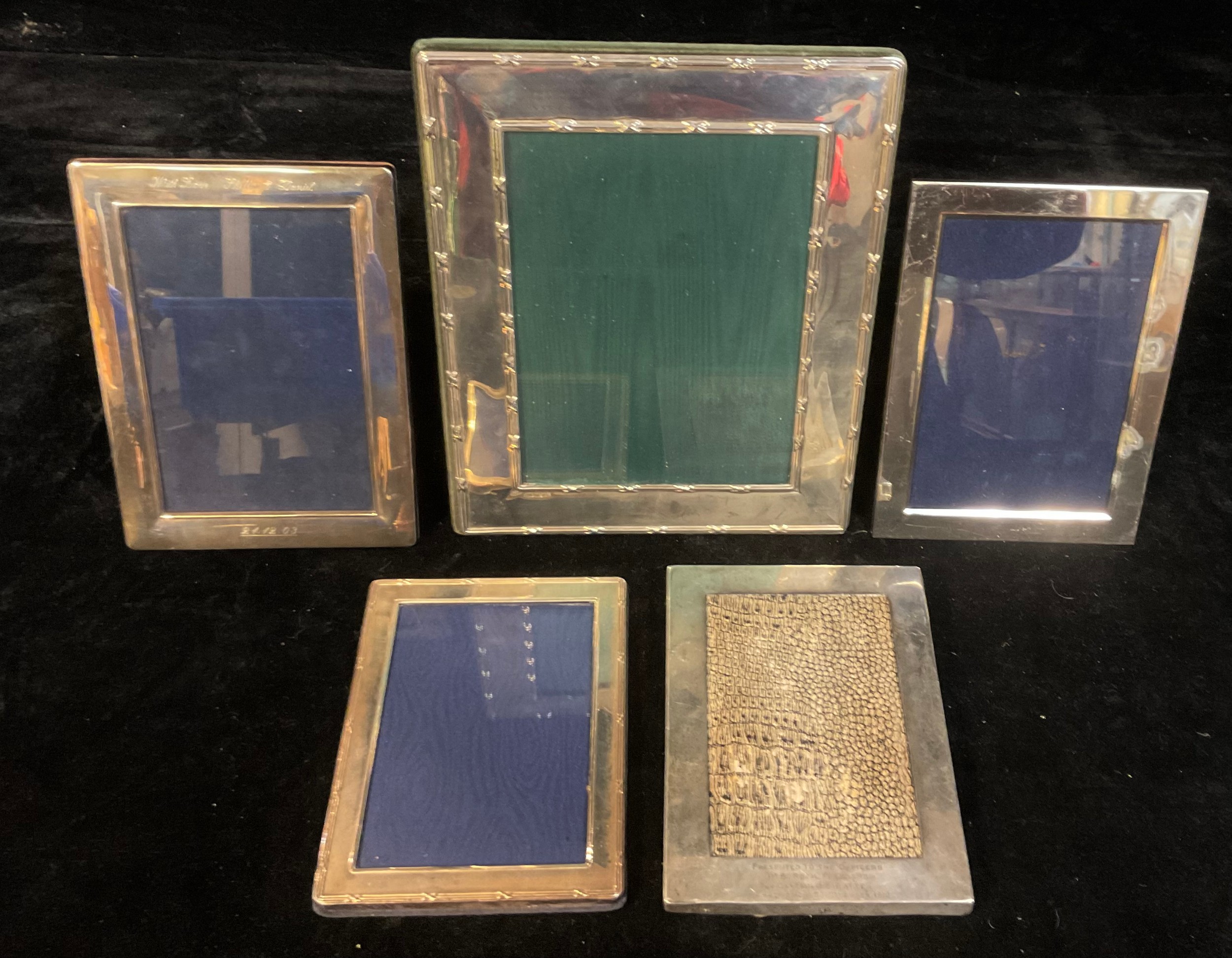 A silver rectangular photograph frame, with inscription, 24cm x 19.5cm, London 1999; other silver photograph frames, various sizes (5)