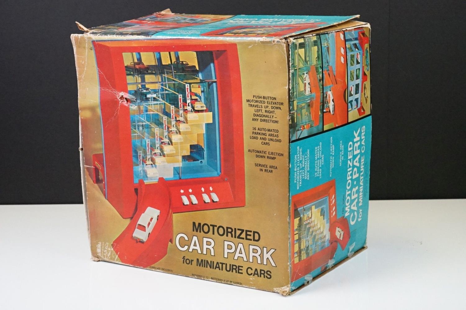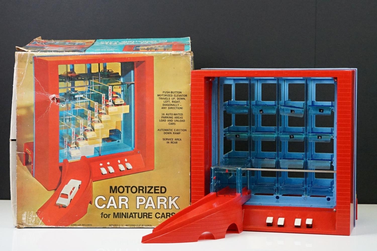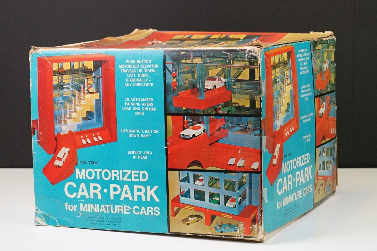 Boxed Japanese No 7000 Motorized Car Park for miniature cars, untested but condition gd overall, tatty box