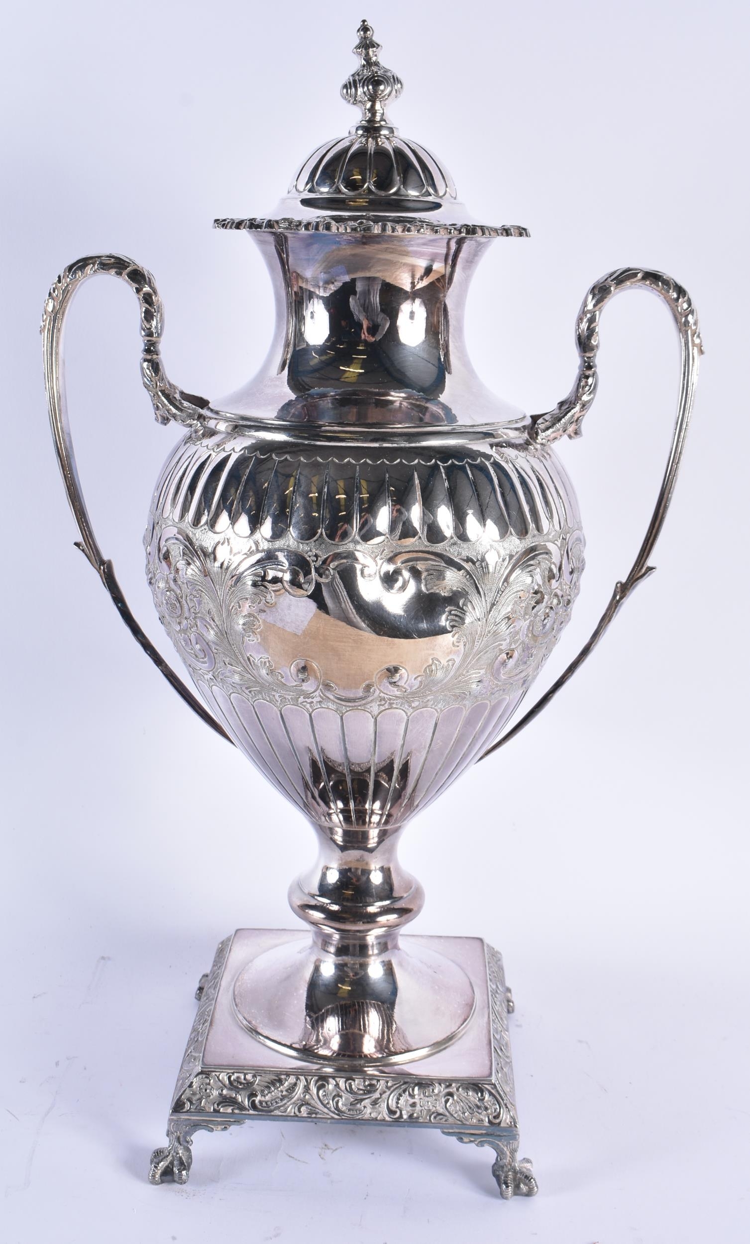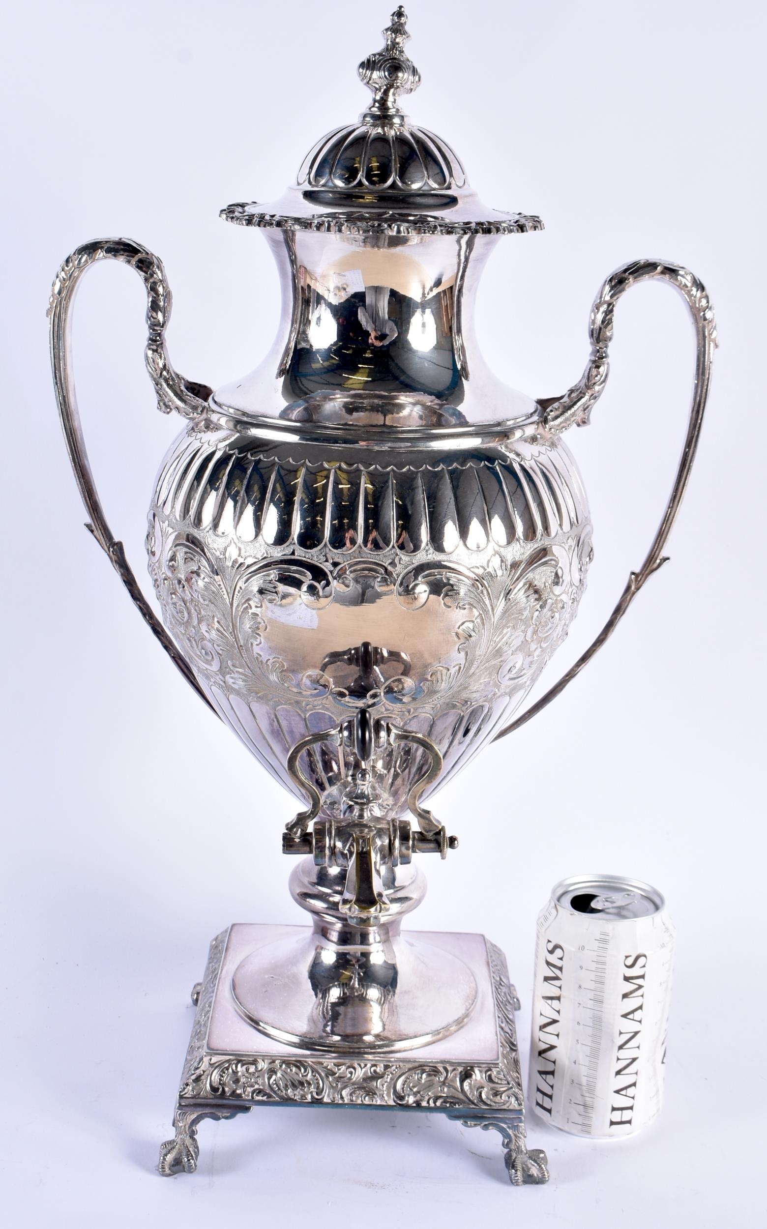 A LARGE VICTORIAN SILVER PLATED SAMOVAR. 3915 grams. 50 cm x 27 cm.