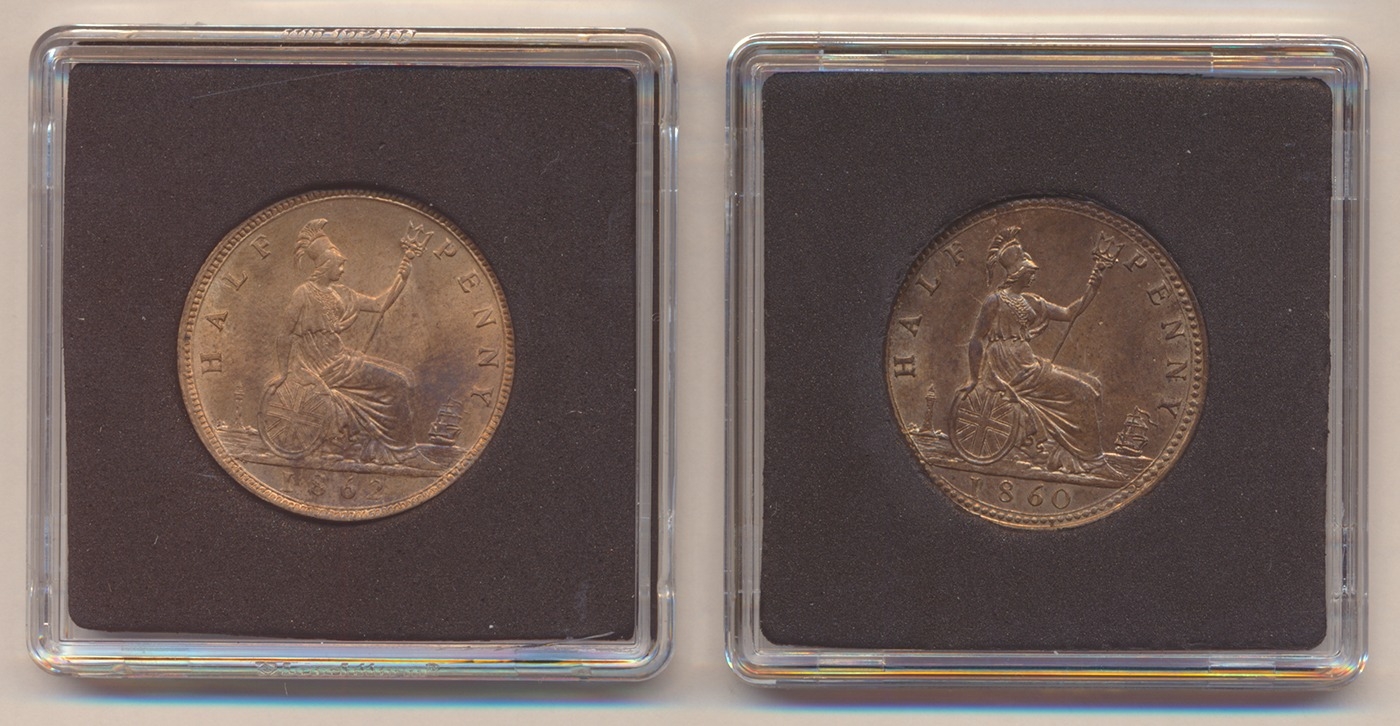Victoria range of half pennies with 1860 beaded border, 1862, 1895, 1896, 1897, 1898 1899, 1900 and 1901 uncirculated with lustre. Qty 9 (R)