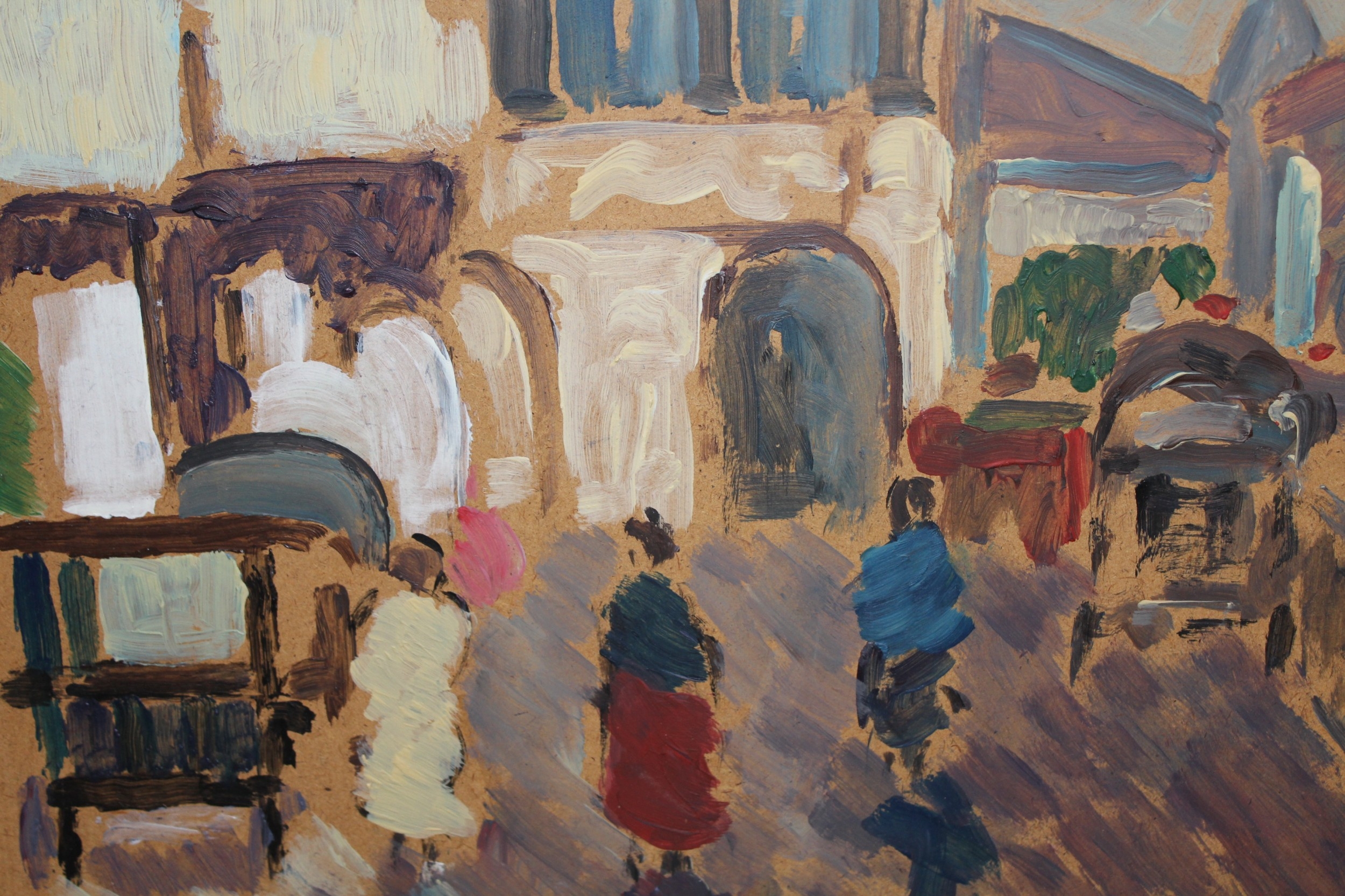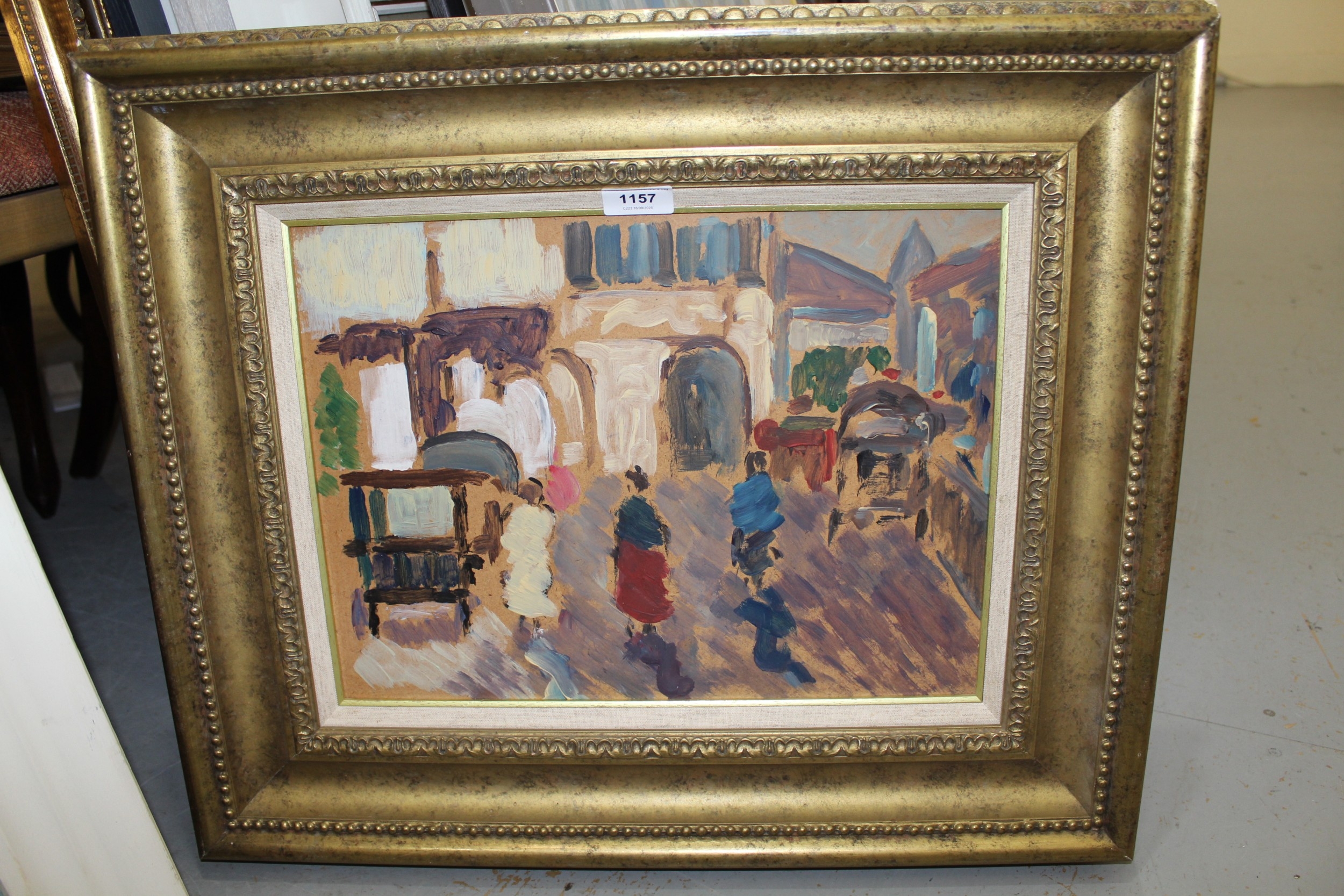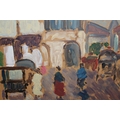 Scottish School, oil on board, street scene with figures and carriages, 30 x 40cm