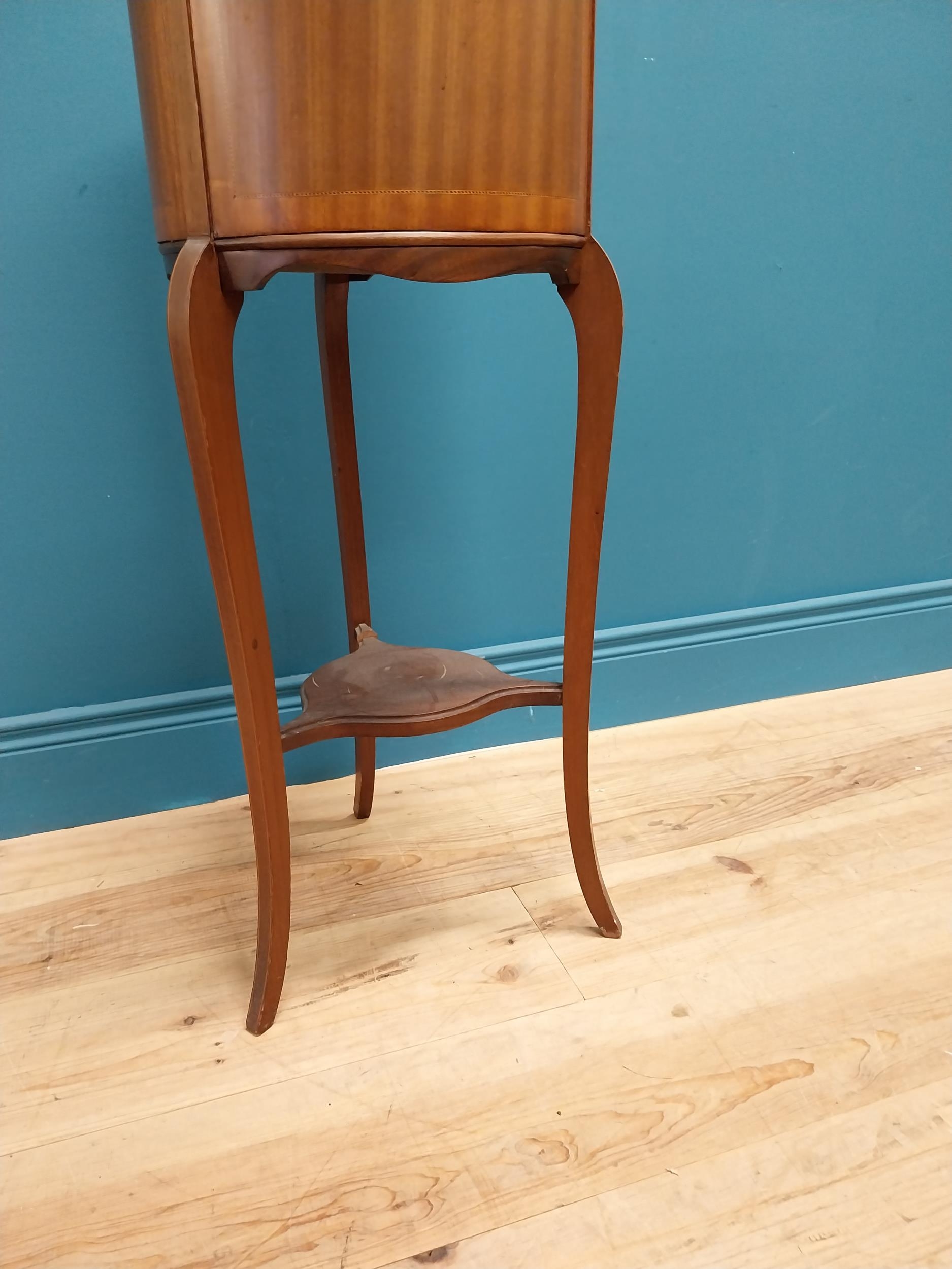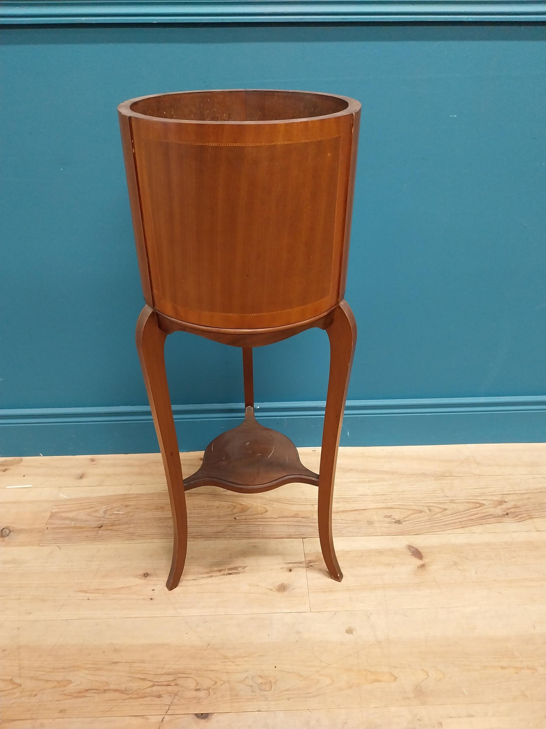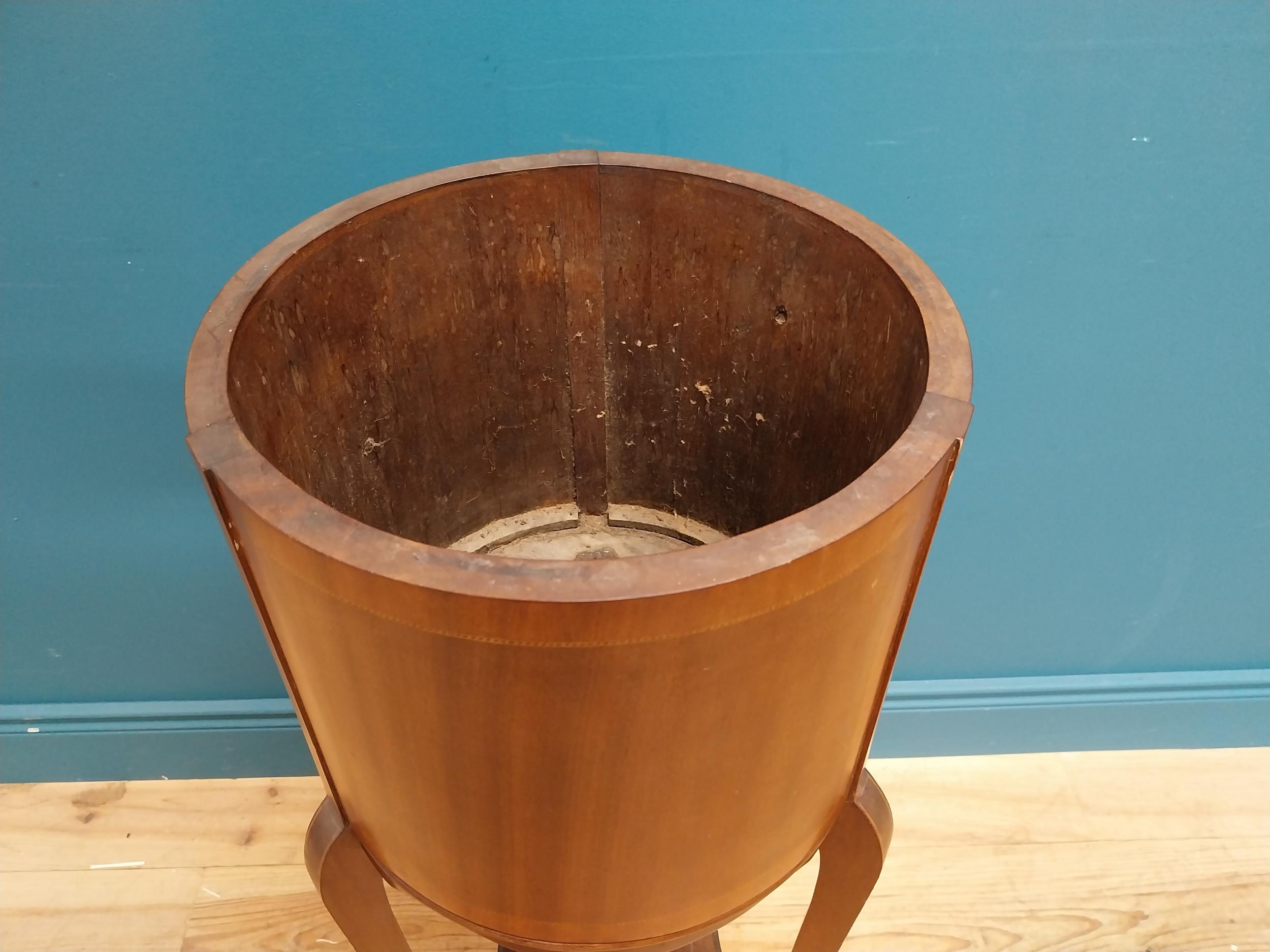 Edwardian mahogany and satinwood jardiniere on cabriole legs. {88 cm H x 36 cm Dia.}.