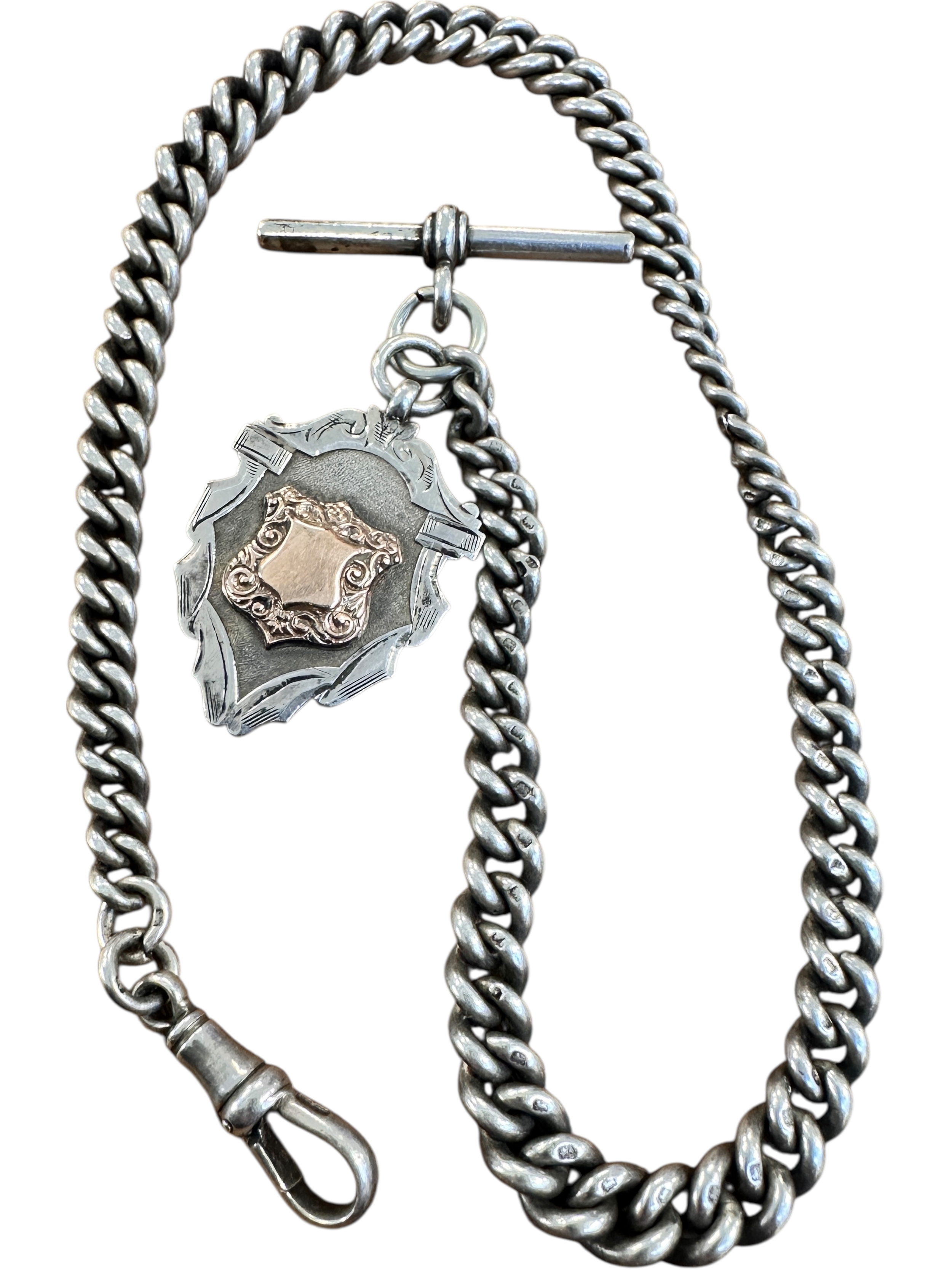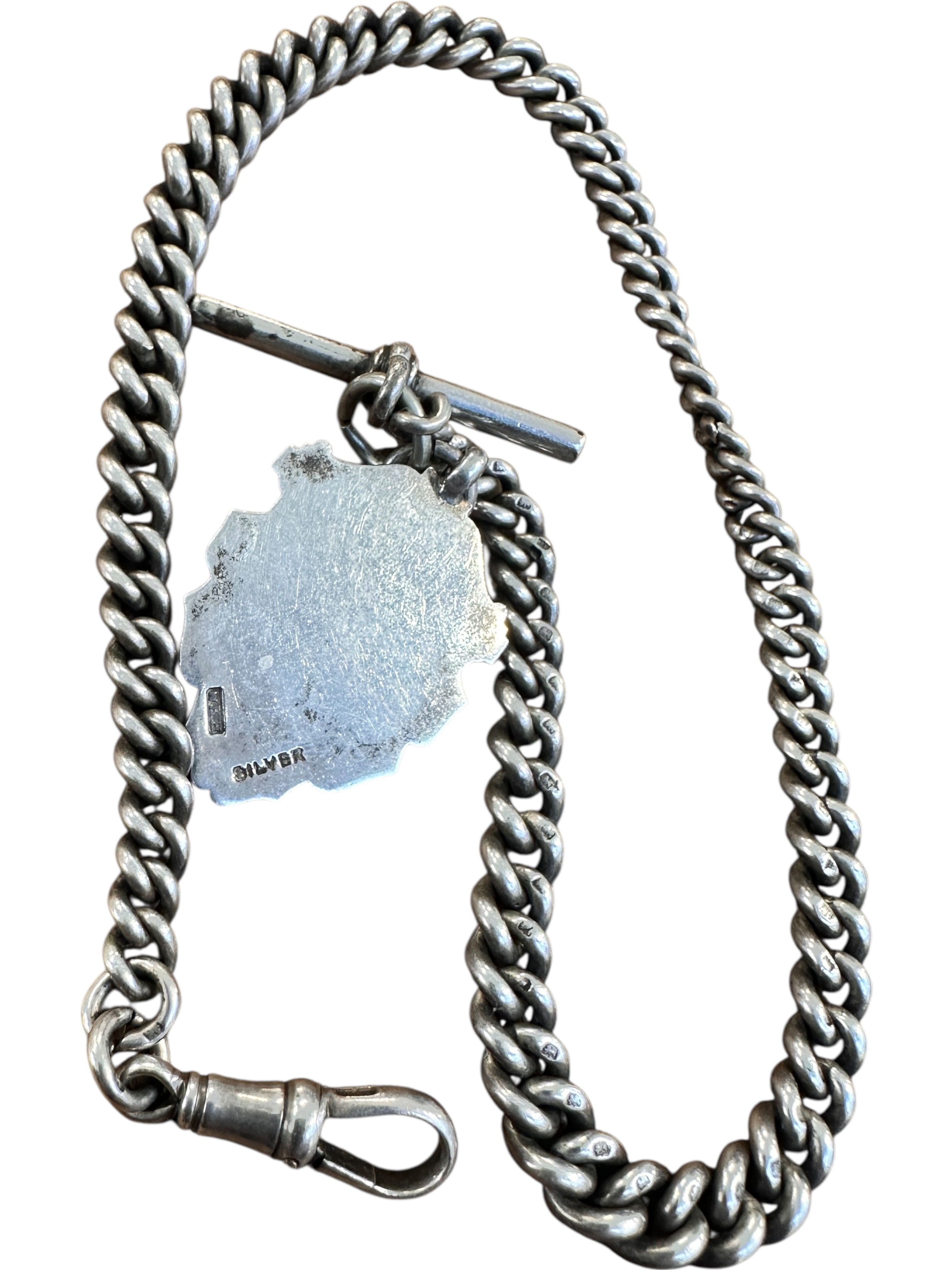 Antique Silver Albert Chain with Fob. 48.8g