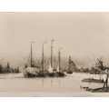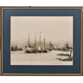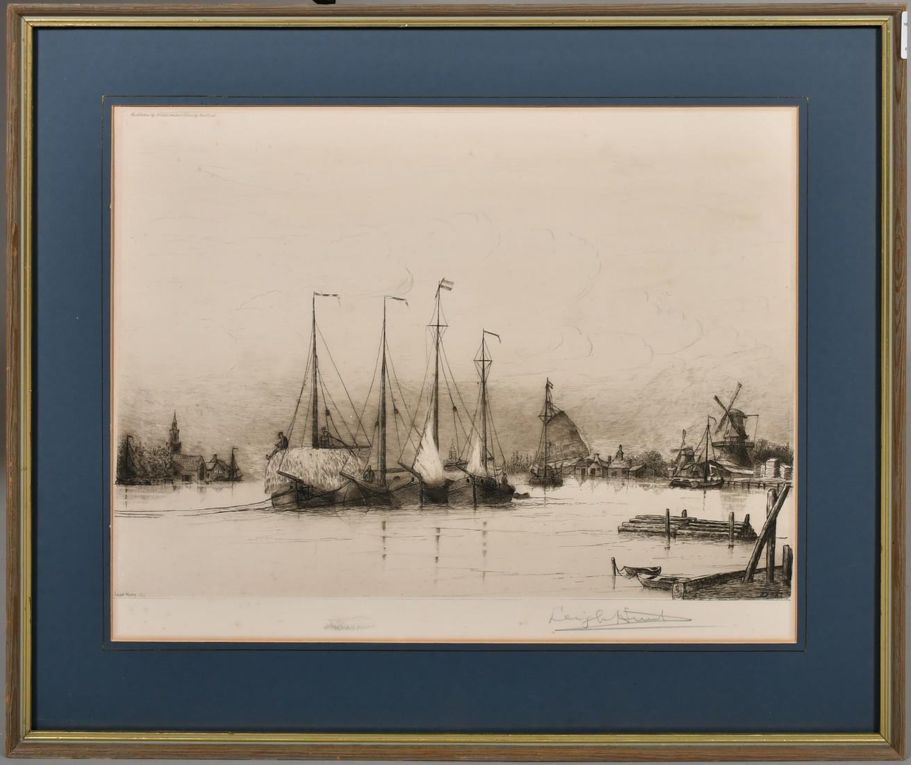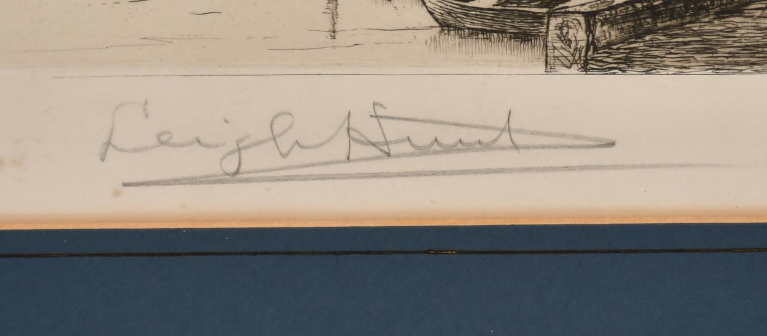 Leigh Harrison Hunt (1858-1937), boats in a harbour, etching, signed in pencil, plate size 14" x 17.75" (36 x 45cm).