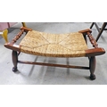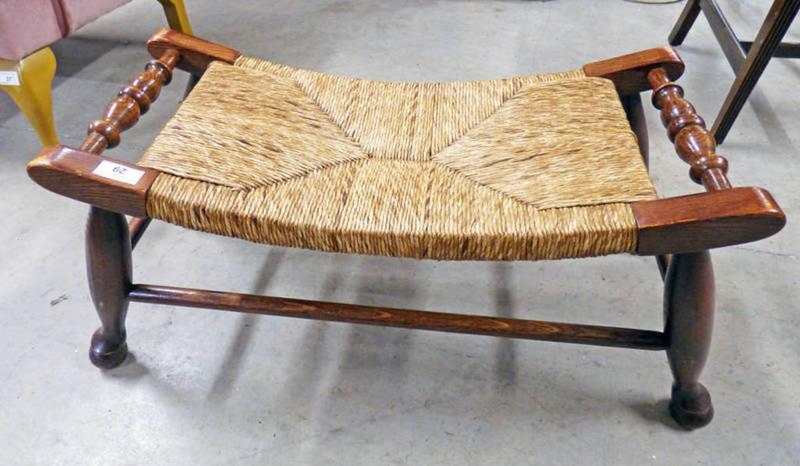 OAK STOOL WITH RUSHWORK SEAT ON TURNED SUPPORTS