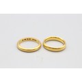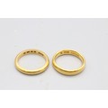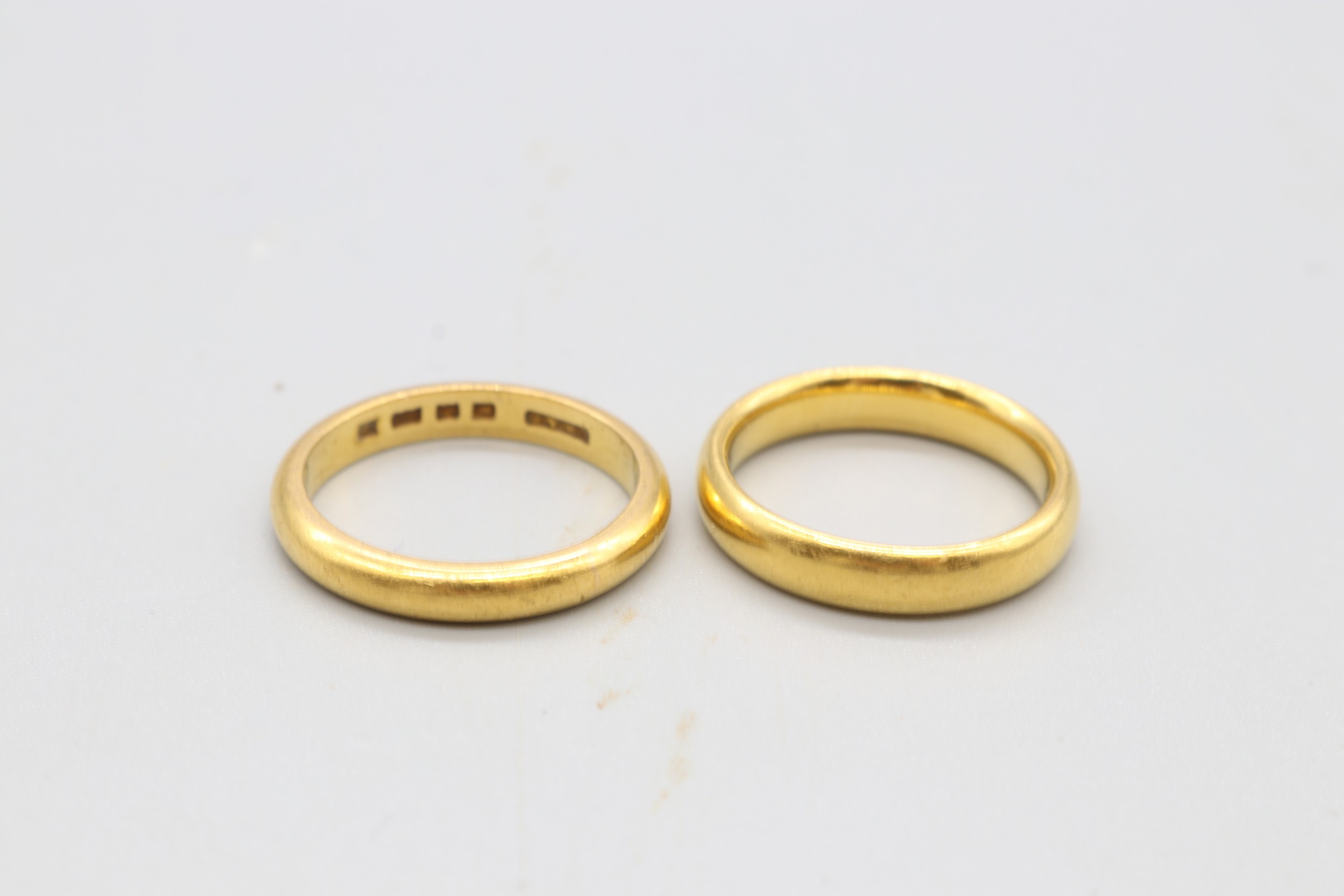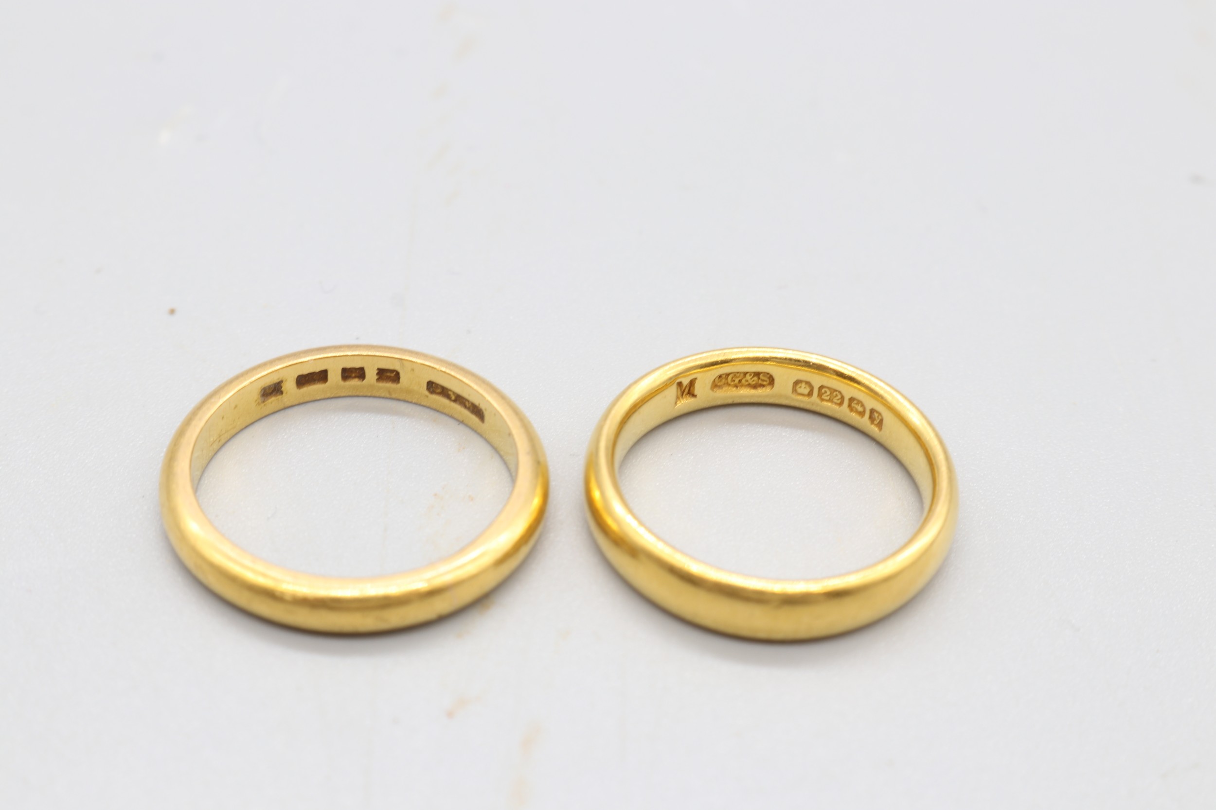Hallmarked 22ct yellow gold court wedding bands, comprising one 4mm court fit ring, size M, weight 6.06g; and one 3mm wedding band, size N.5, weight 5.25g
