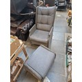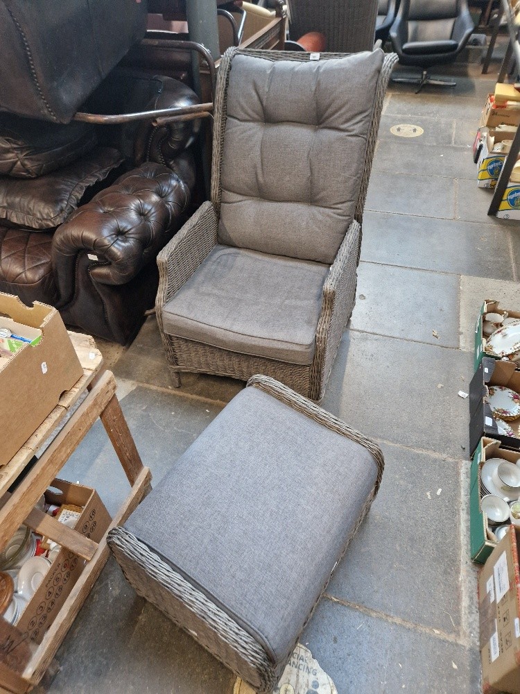 A pair of Kettler rattan style garden recliner chairs with matching footstools.