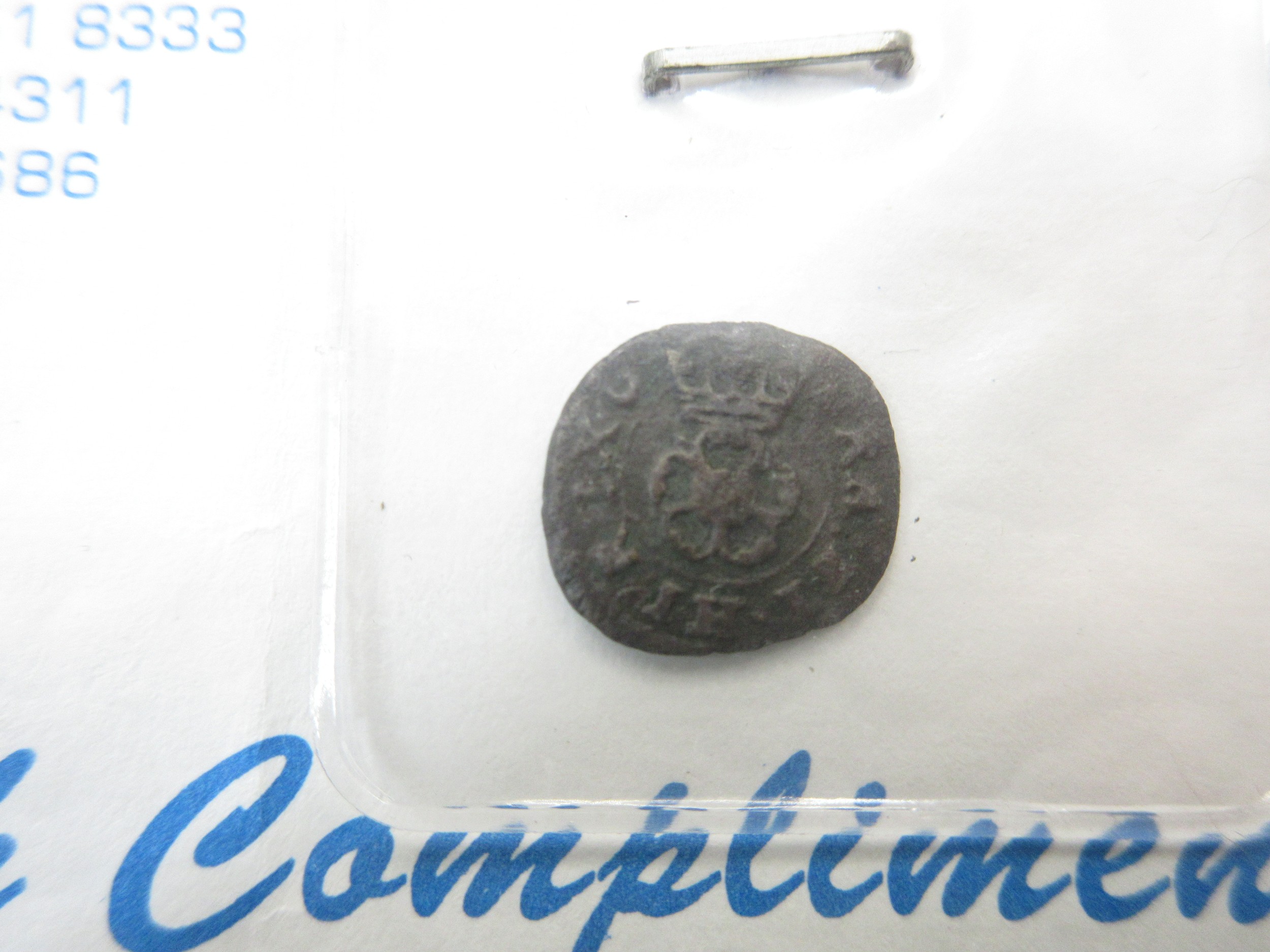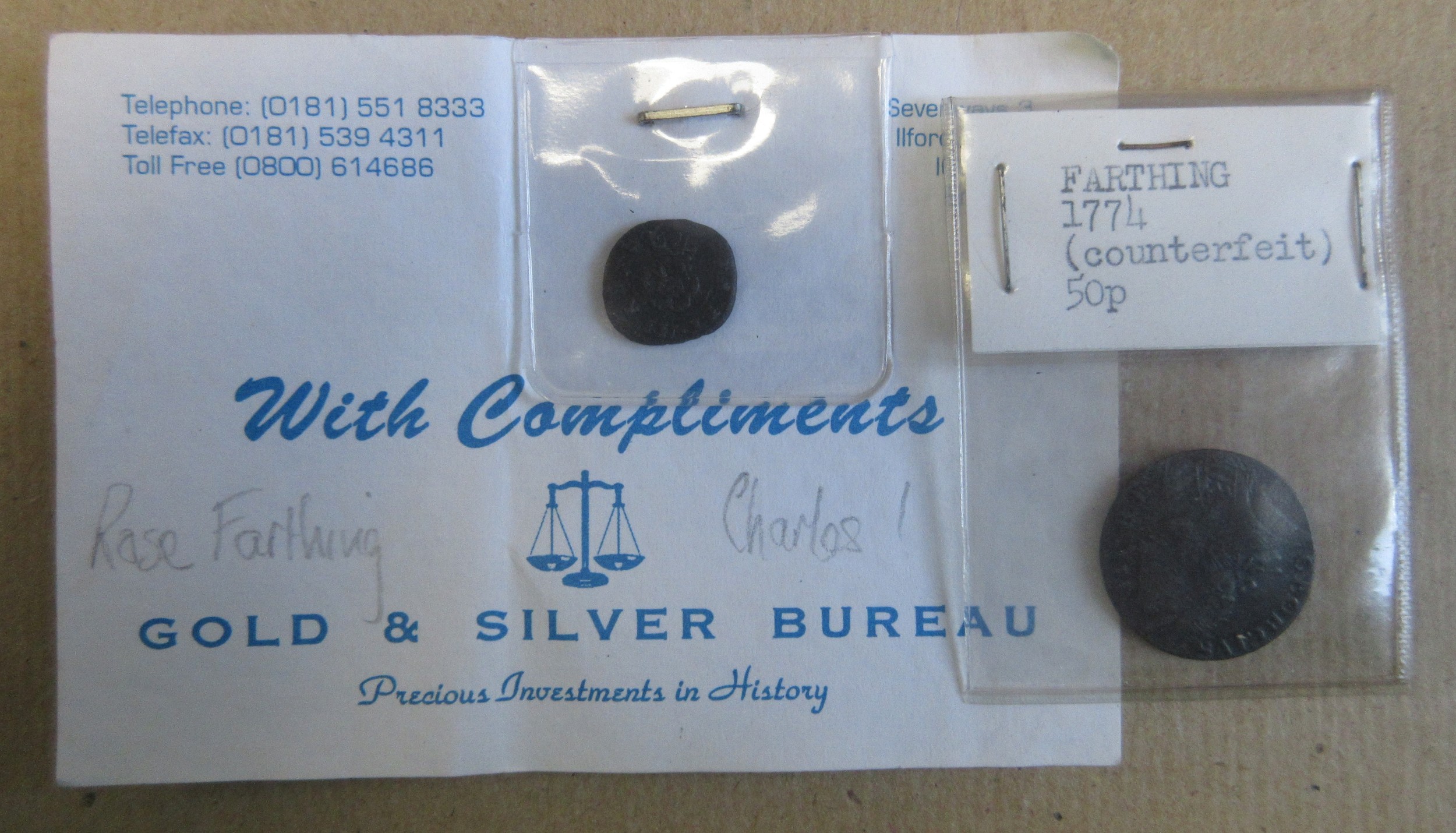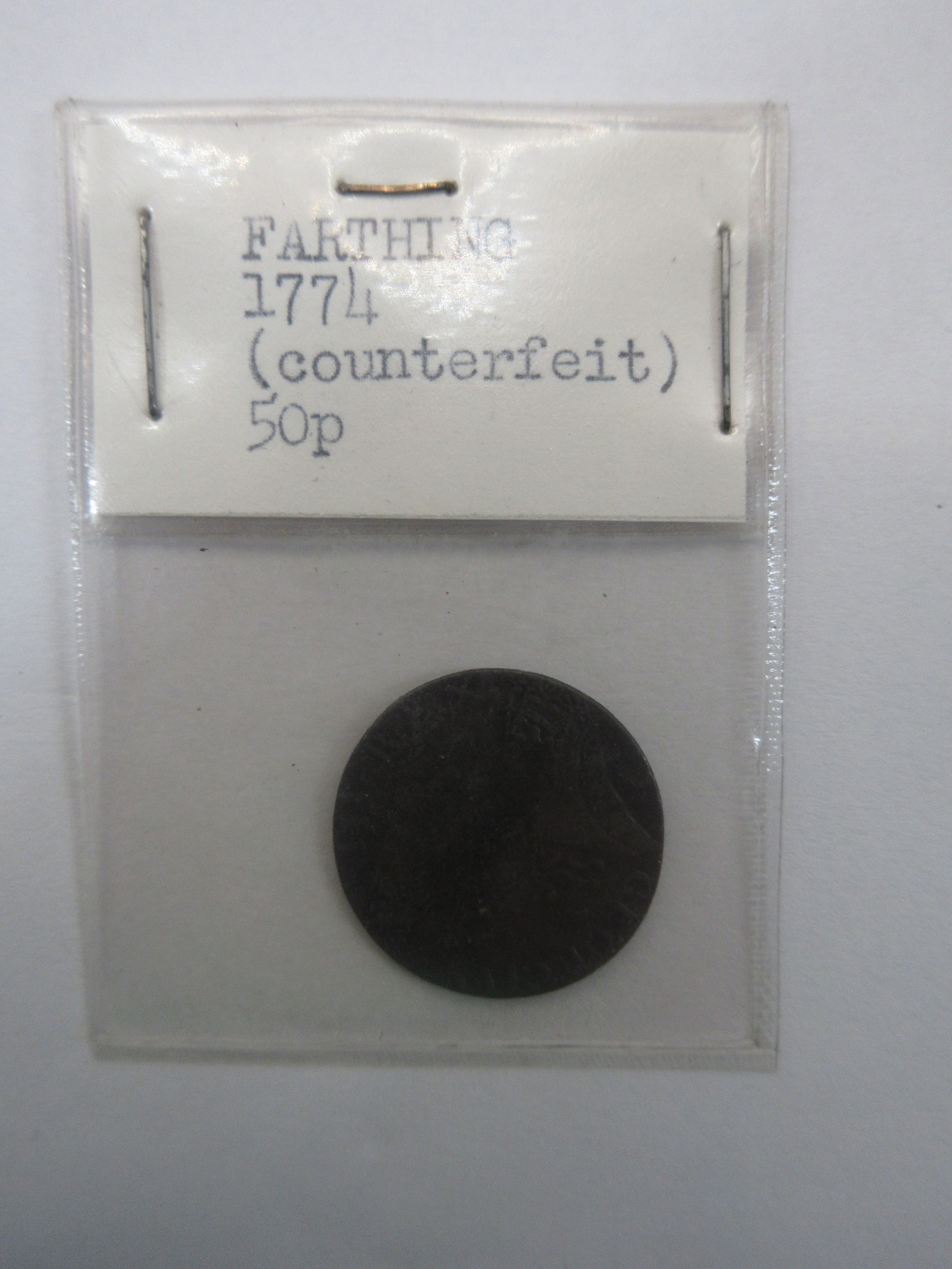 A Charles I rose farthing and a counterfeit 1774 farthing