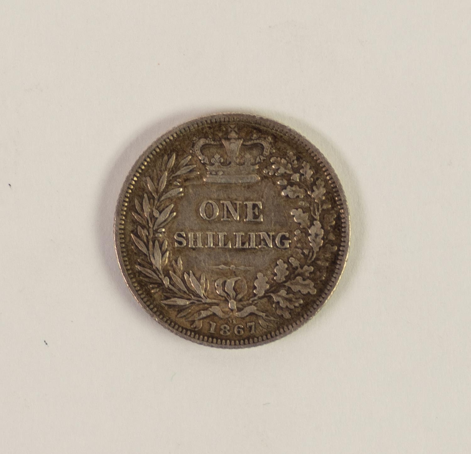QUEEN VICTORIA 1867 SILVER ONE SHILLING THIRD HEAD with die number above the date '31', the obverse inverted (VF)