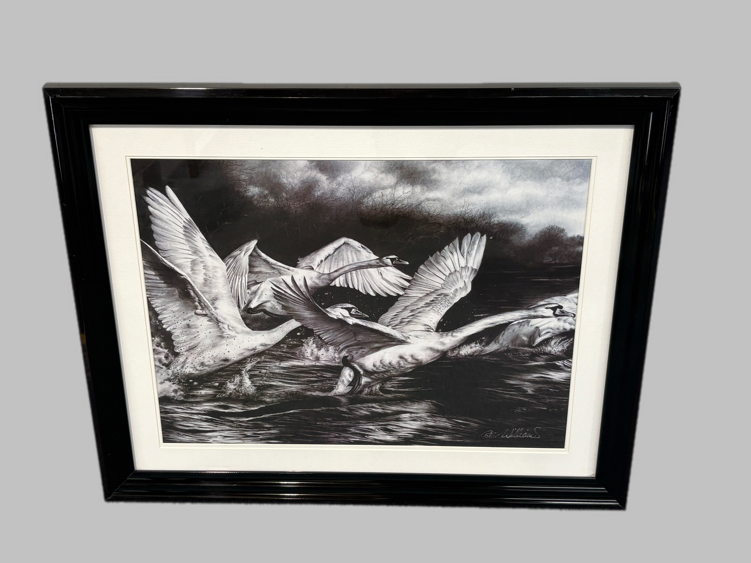 Framed picture of swans by Peter Williams