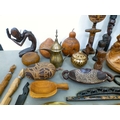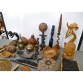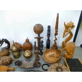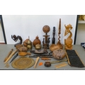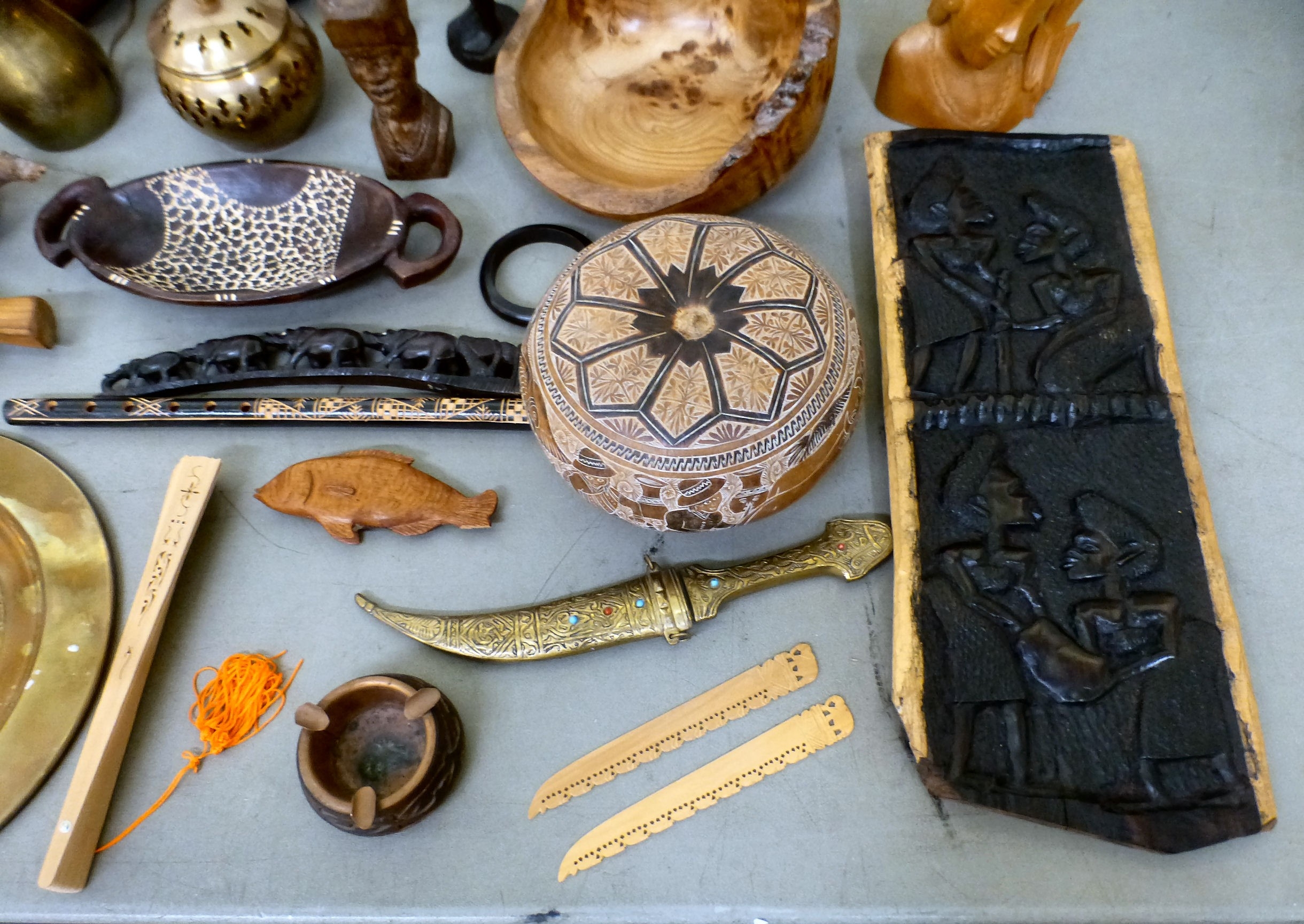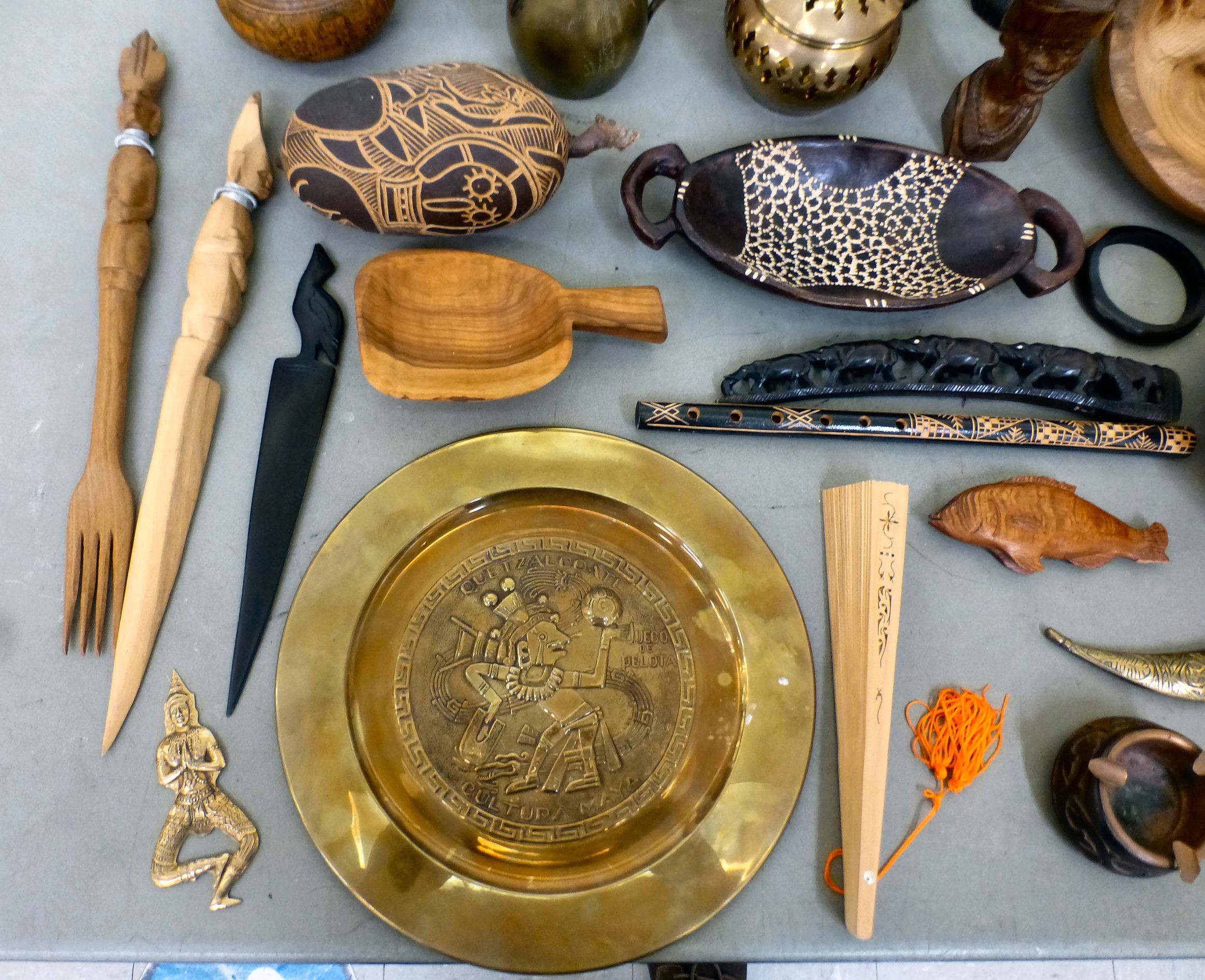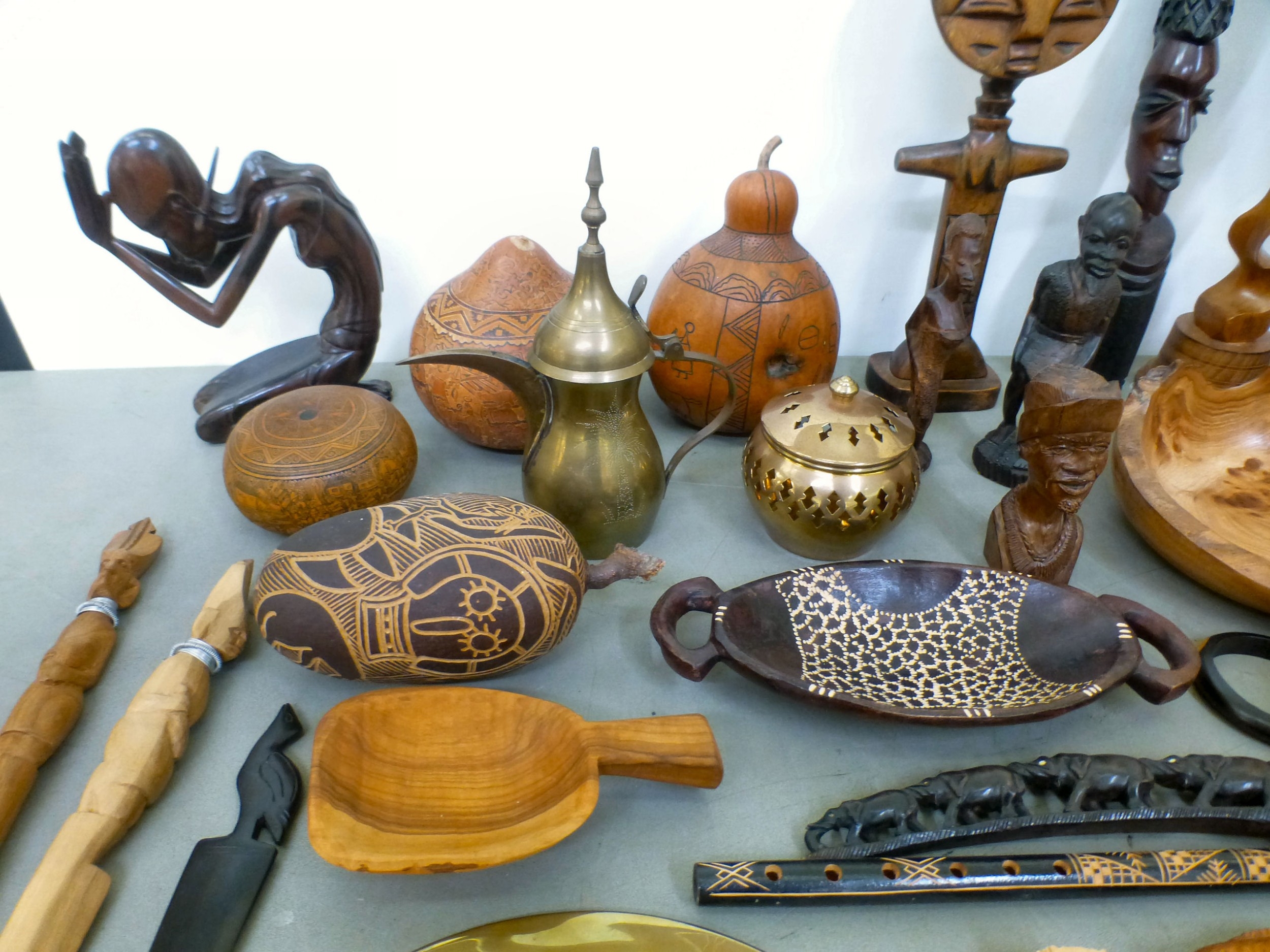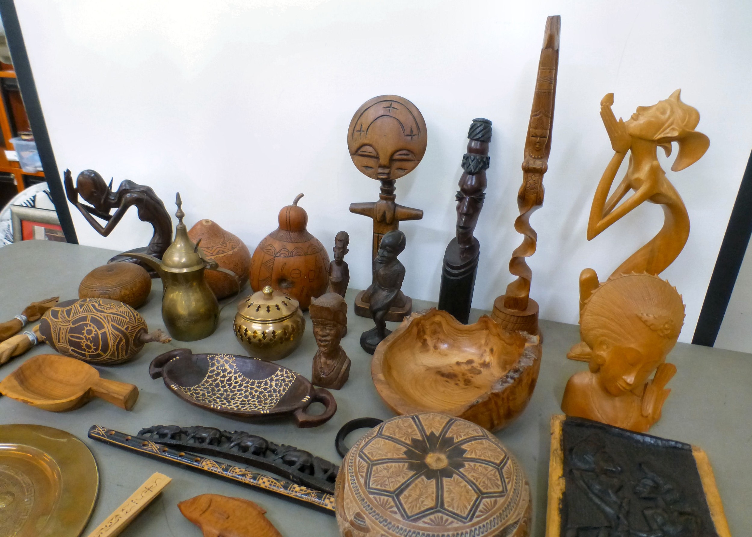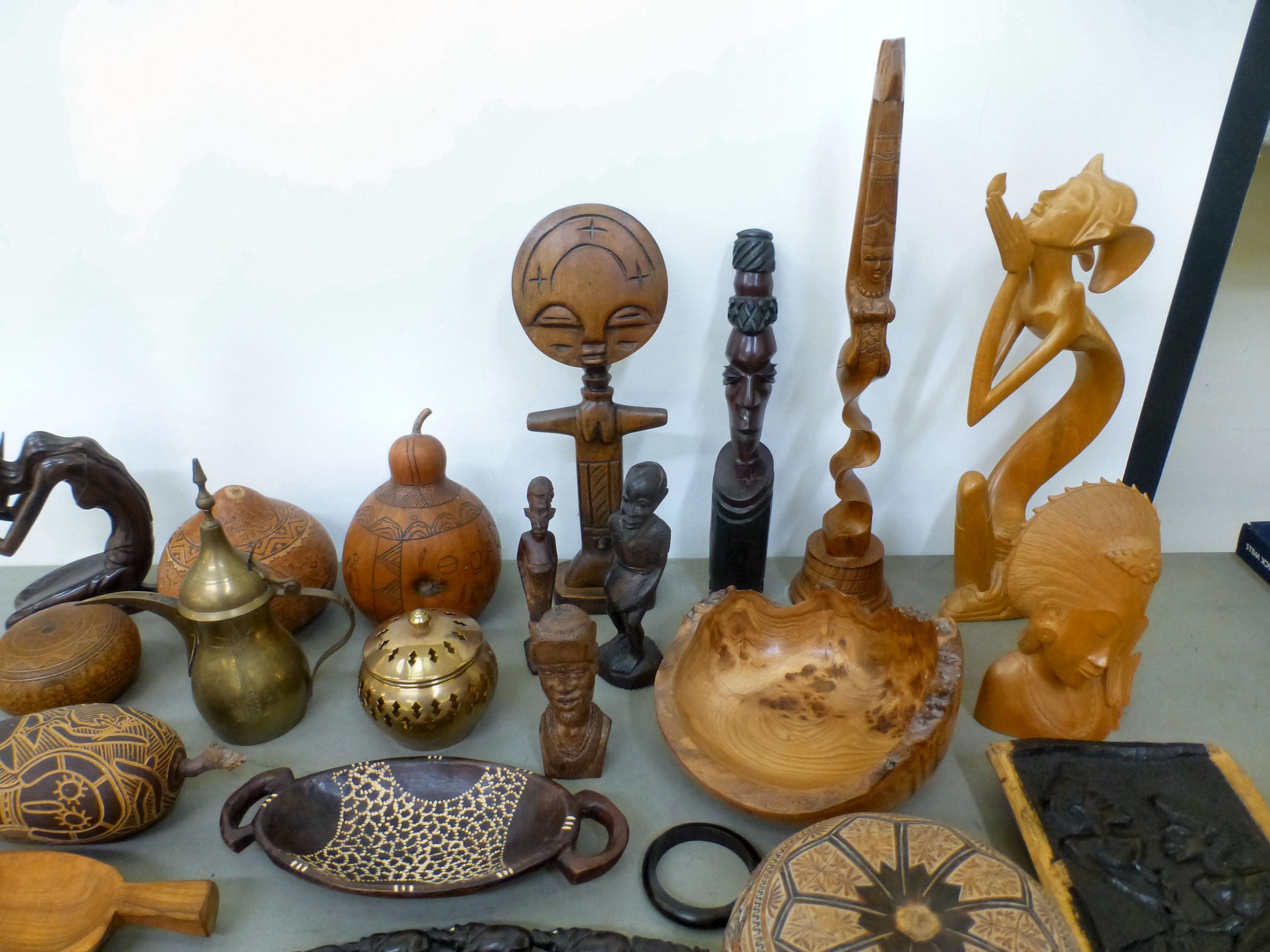 Interior decorators items: to include a burr elm bowl  8"dia; and an African carved wooden wall plaque, depicting figures at work  17" x 7"