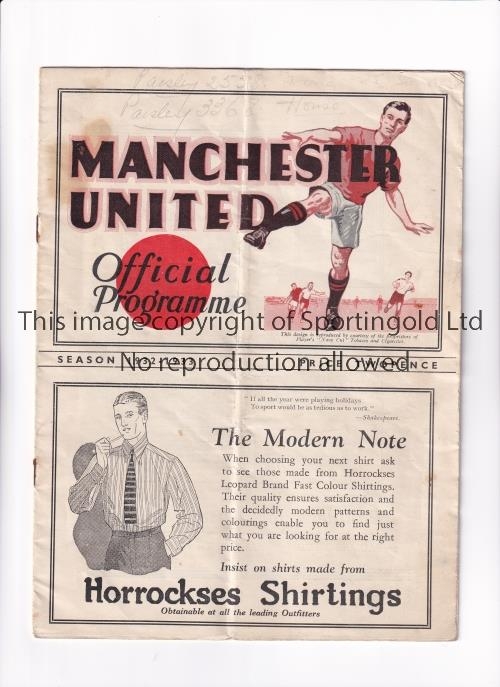 MANCHESTER UNITED Programme for the home League match v Stoke City 27/8/1932, slightly marked and folded. Generally good