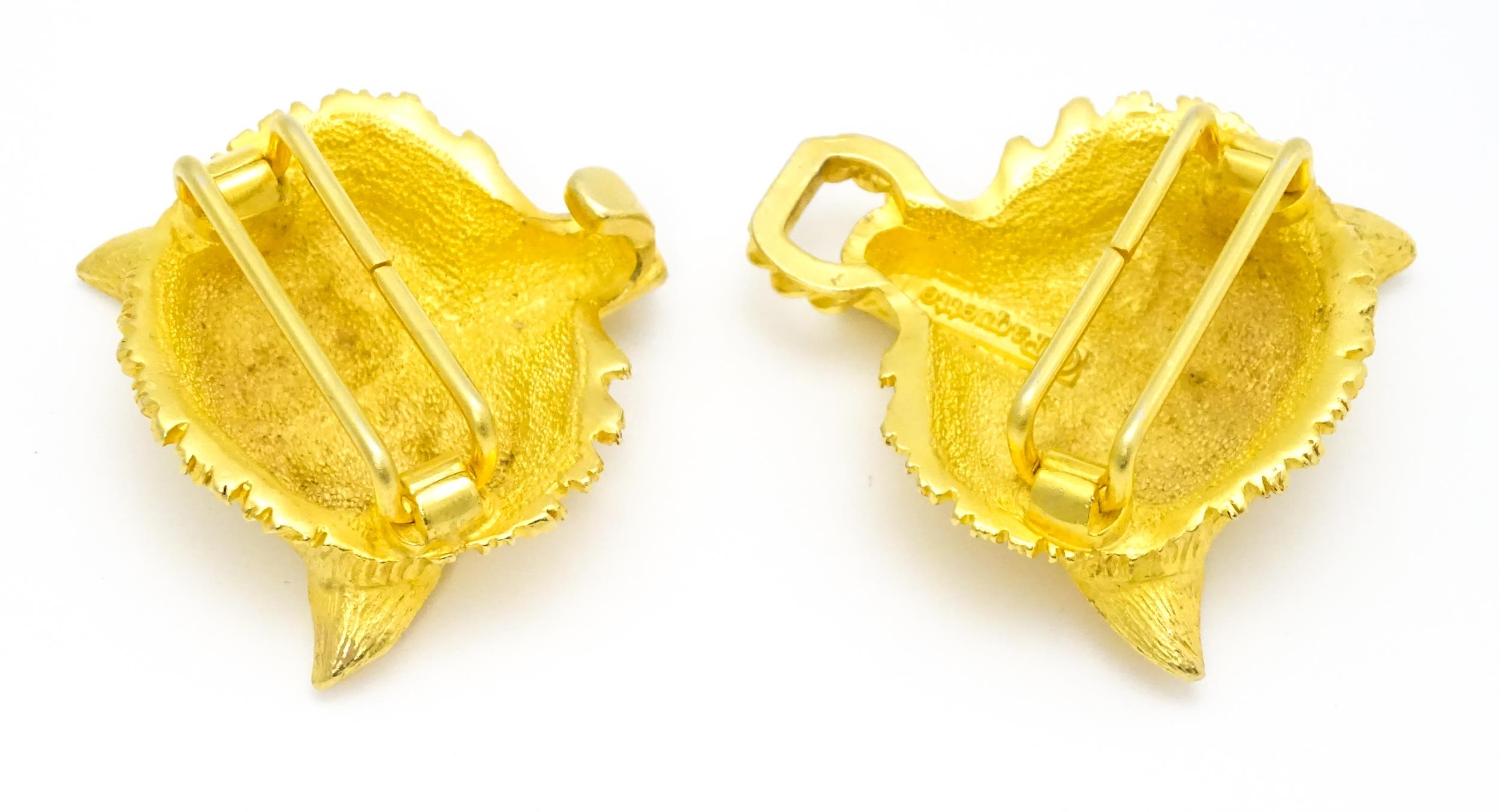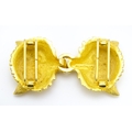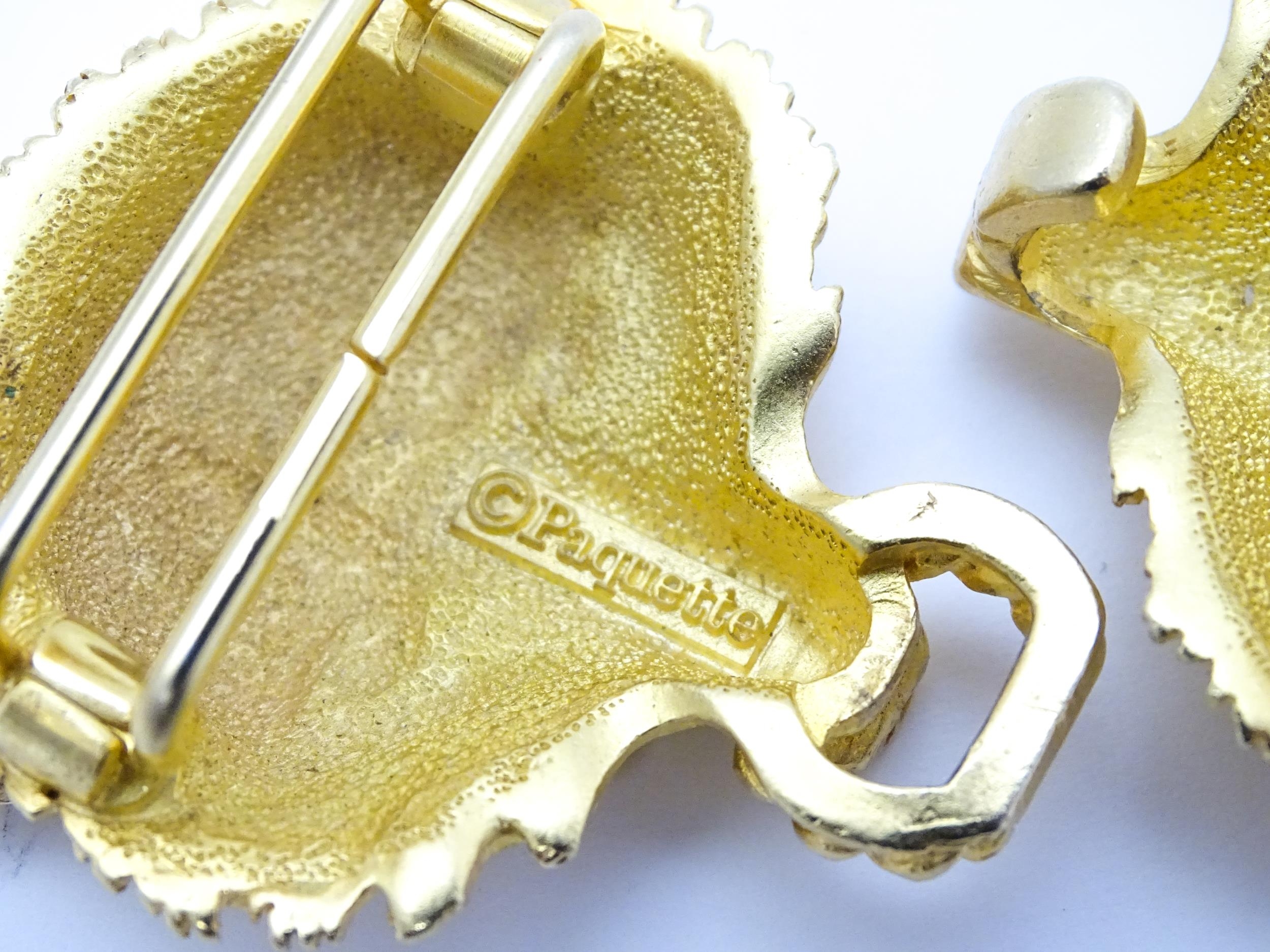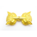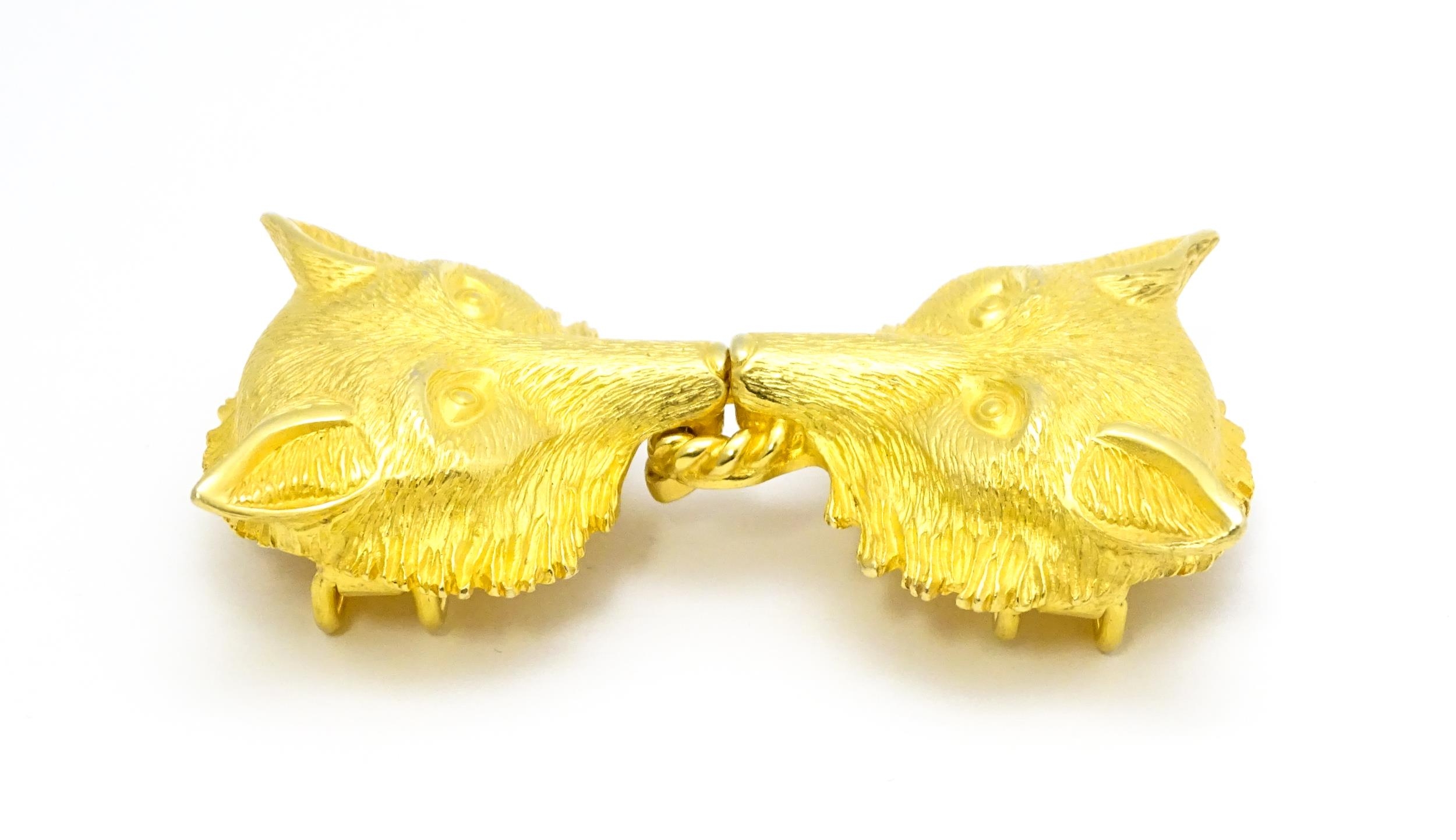 A gilt metal two part belt buckle with fox head detail by Paquette. Approx. 3 1/2" wide overall