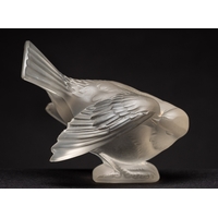 An Almeric Walter pâte-de-verre paperweight, in the form of a blue budgerigar perched upon yellow blooms and green foliage, impressed Walter Nancy, circa 1920, 14cm high, [flake chip under base].