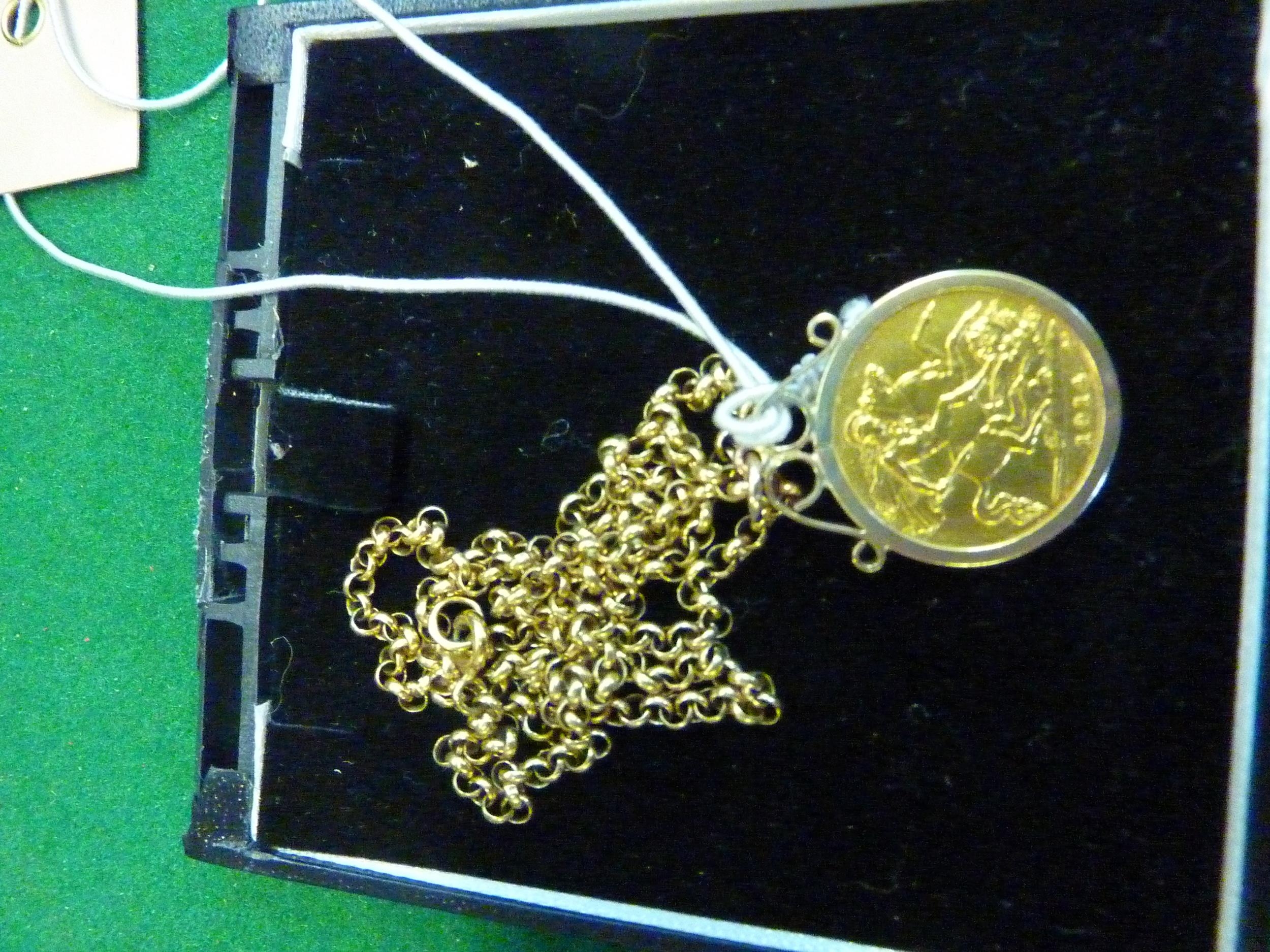 A half sovereign within a 9ct gold mount and chain