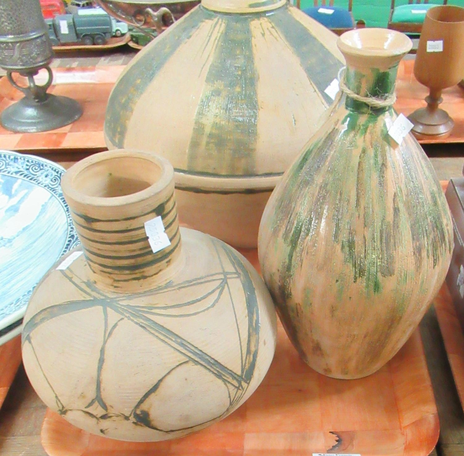 Three Art Pottery vases, two marked G. T. Gower Samuel, (South Wales artist and sculptor), probably dating from 1960s, abstract decoration on a buff clay ground. (3)